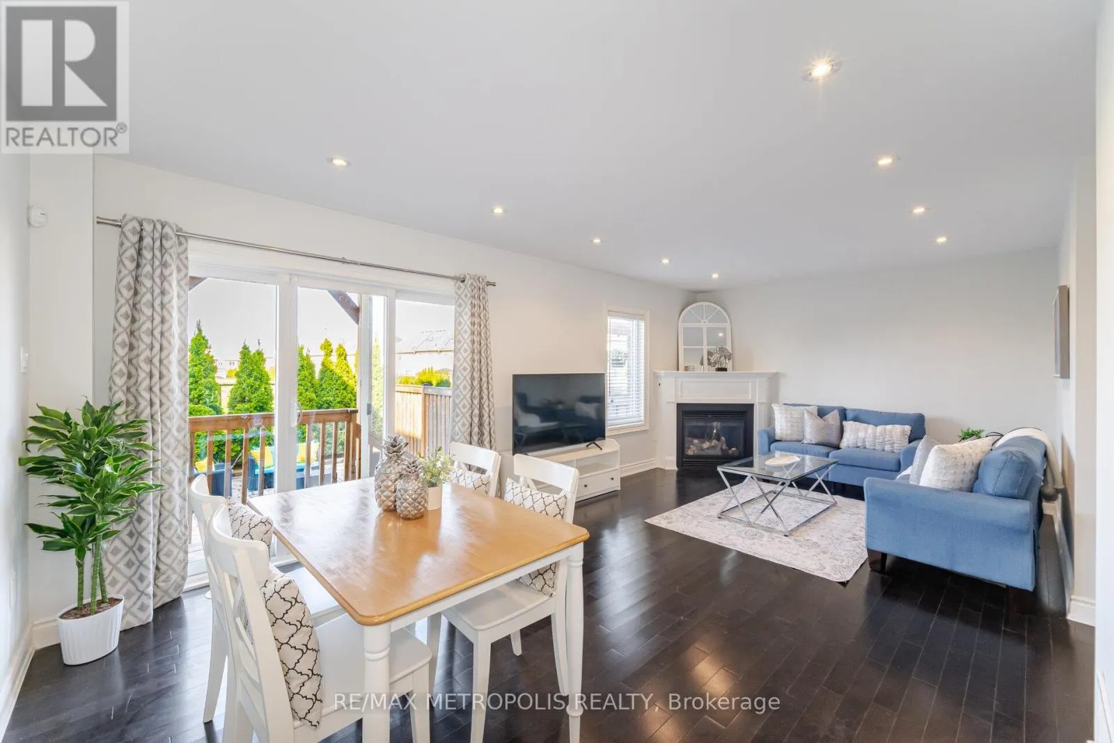 Bronte & Westoak Trails Welcome To This Charming 3-Storey Freehold End-unit Townhome In Oakville, This Beautiful freshly painted Home Features A Cozy Living Rm And Dining Area With Large Windows, 9 foot ceiling, With more than 2000 sq ft of sun-soaked, spacious living space, Modern white Kitchen With quartz countertops & SS Appliances with a walkout to a deck overlooking a vast green space. Brand new ZEBRA blinds in 2nd floor, The Primary Bedroom Boasts a Custom Walk-In Closet, Providing Plenty of Storage Space, Two Cozy Bedrooms With Ample Closet Space, And Two Full Bathrooms Plus A Powder Room. The Home Features Pot lights & dark hardwood Throughout, Adding A Touch Of Elegance And Style. walkout to a patio Ground floor with a spacious family rm and a Gas fireplace, fully fenced backyard, providing the perfect space for relaxing and entertaining outdoors. This Home Is Located In A Desirable Area Of Oakville, Close To Local Amenities, Parks, And Schools. (id:27476)