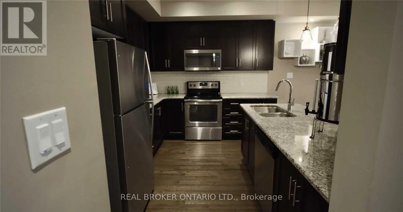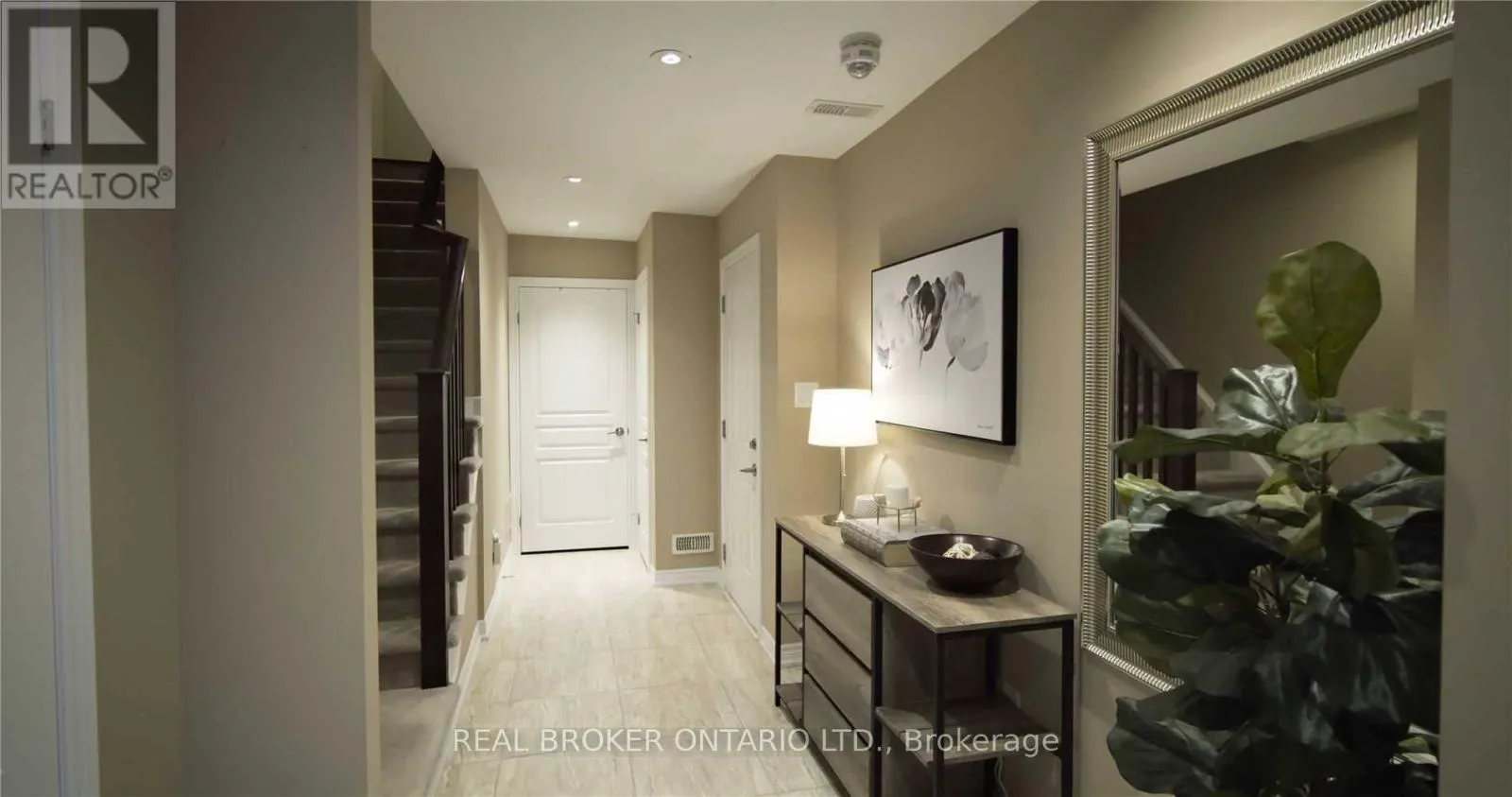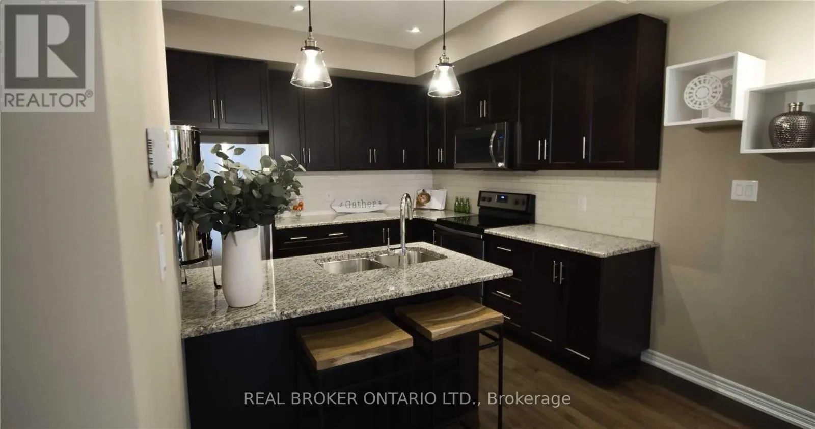 Cross Streets: Dundas & Postridge. ** Directions: Postridge to Belcourt to Biltmore. Absolutely stunning townhome in the highly sought-after Trafalgar & Dundas area. The main level features elegant hardwood flooring and a bright open-concept layout. Enjoy a modern kitchen complete with granite countertops, stainless steel appliances, and a convenient breakfast bar. The space seamlessly extends into the dining and living area, showcasing a contemporary fireplace, stylish built-in wall shelving, and patio doors that open to a private balcony-perfect for relaxing or entertaining.The upper level offers two spacious bedrooms, two full bathrooms, and laundry, providing comfort and privacy. Ideally located just minutes from grocery stores, restaurants, GO Transit, Highways 407, 403, and the QEW, as well as numerous walking and biking trails. (id:27476)