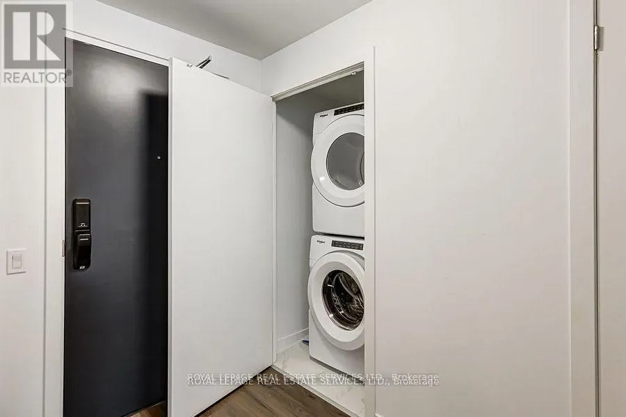 Dundas St W/Neyagawa Blvd This brand-new, open-concept unit features 1 bedroom plus a den, 2 full bathrooms, and ensuite laundry. Designed for modern living, it boasts high-end finishes, a spacious living area, and an advanced built-in electronic tablet system that connects to the door lock, security system, and cameras allowing you to see visitors before granting access. Enjoy upgraded bio metric fingerprint access, dimmable track lighting, and a raised TV conduit for seamless entertainment. A large open balcony offers great views, while the unit includes one parking space and a locker for extra storage. Conveniently located near highways 407 and 403, GOTransit, and regional bus stops, this condo also offers premium amenities such as a 24-hour concierge, fitness and yoga facilities, a lounge, bike parking, and visitor parking. (id:27476)