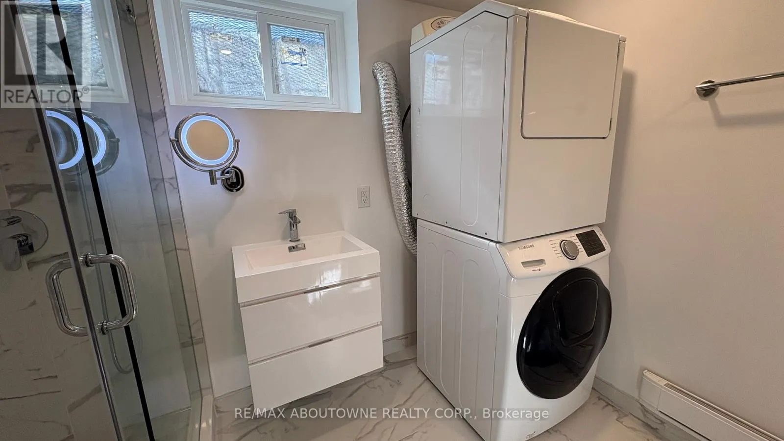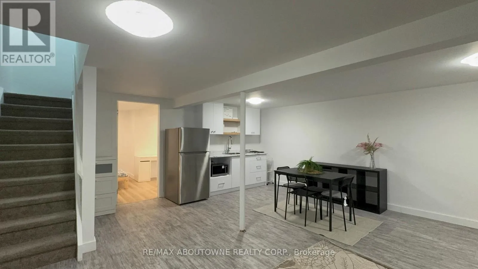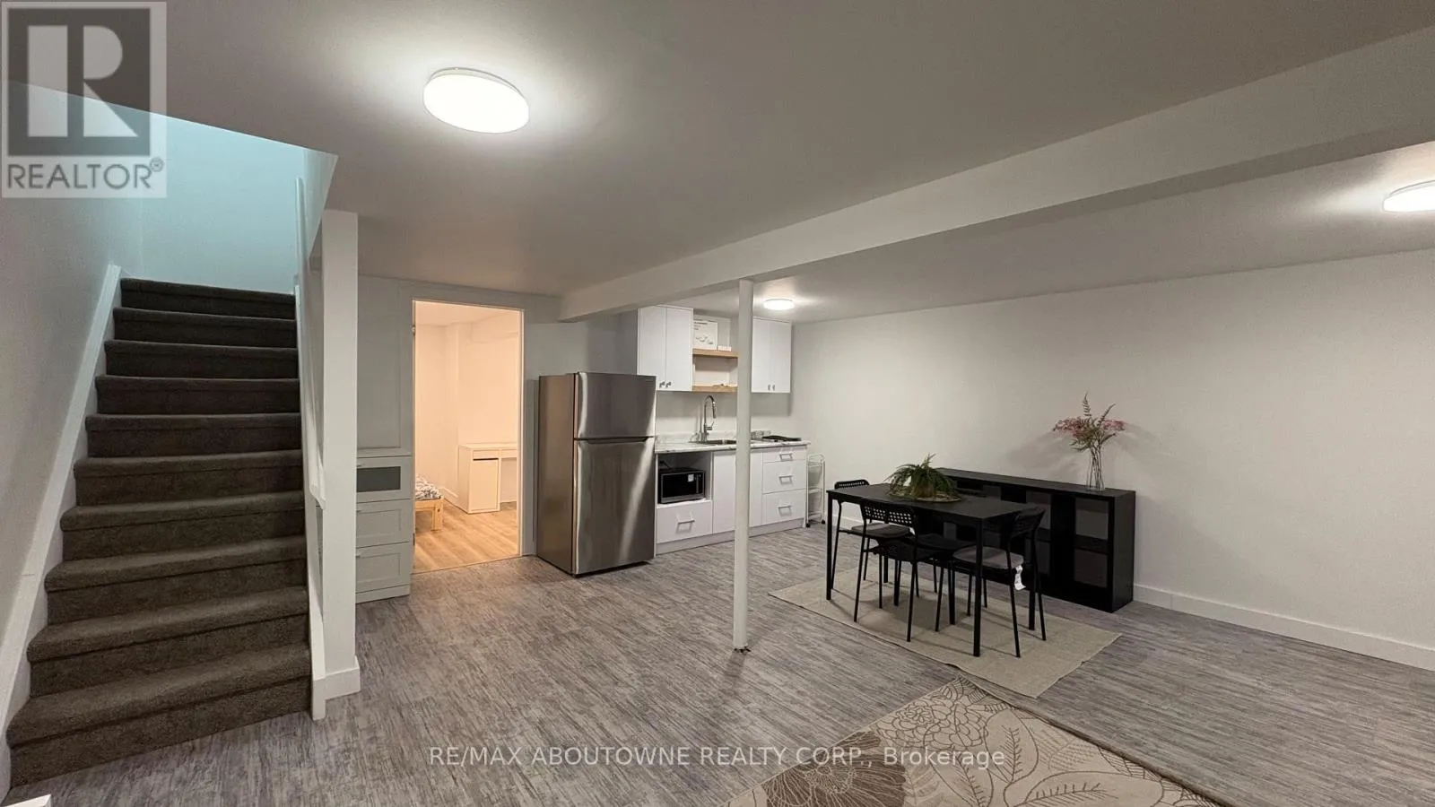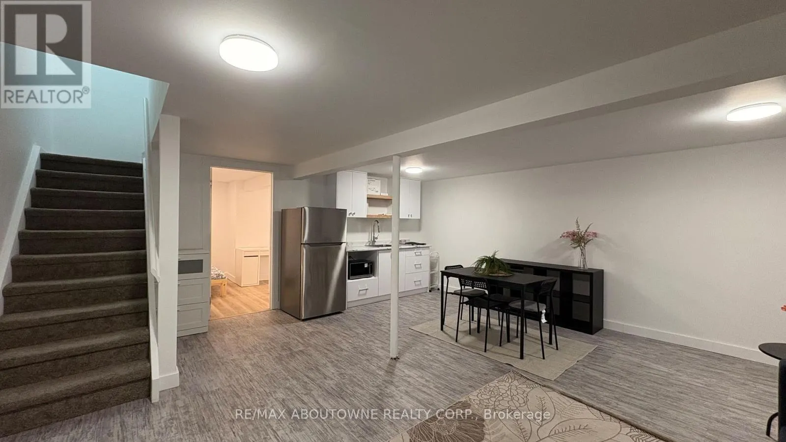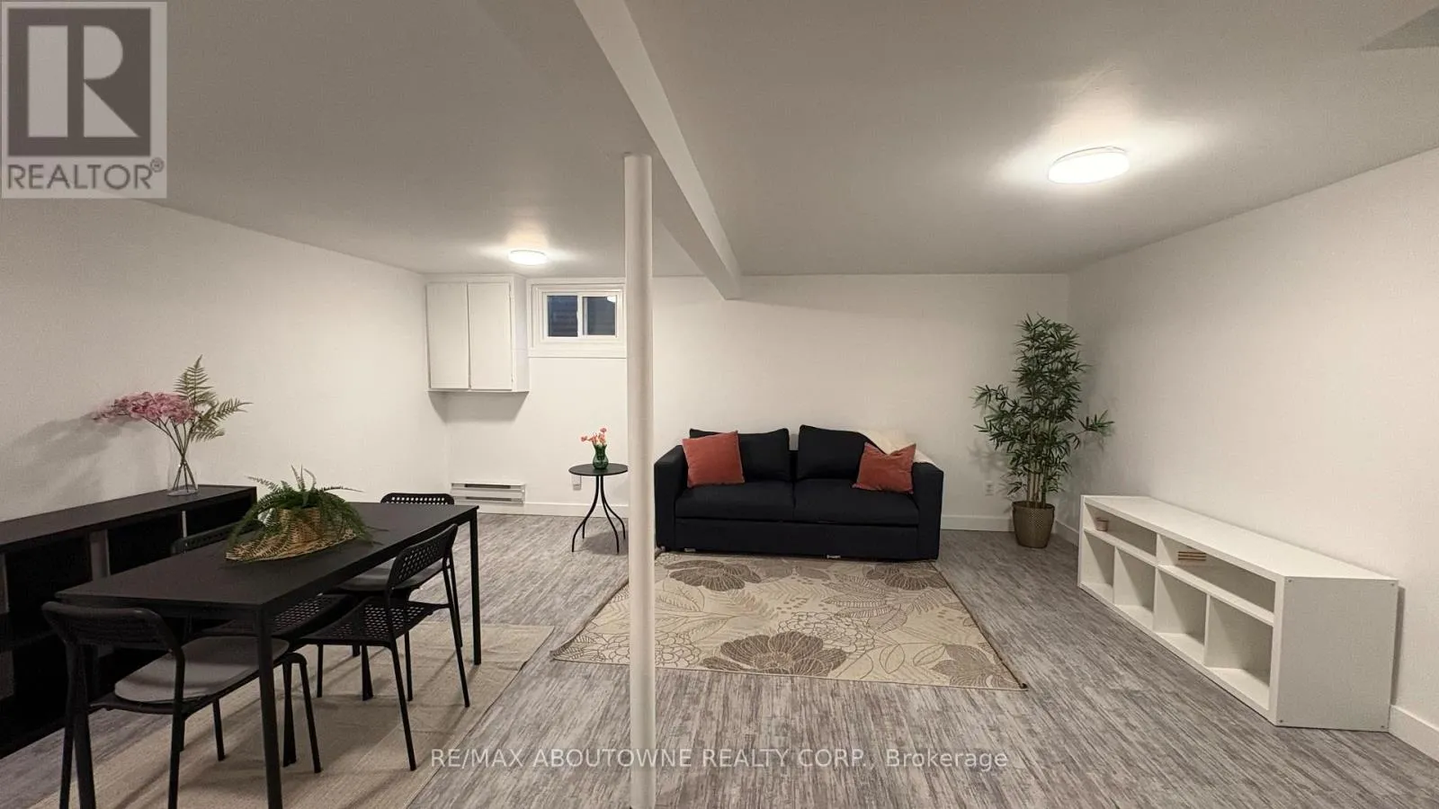 Sixth Line/Upper Middle Rd Lower level living space available for lease with access through a shared front foyer and a private entrance to the basement. Bright and well-designed layout featuring an open concept living and dining area, kitchenette, separate bedroom space, full bathroom and in-suite laundry. Walk-out basement with window providing natural light. Fully furnished and rent includes heat, hydro, water and shared internet (tenant may arrange their own internet if preferred). Furnishings include a sofa with a pull-out queen bed, dining table, workspace and a double bed in the bedroom. Conveniently located close to Sheridan College, public transit, shopping and major routes. Suitable for a single occupant or couple. Students and working professionals welcome. No parking available. (id:27476)