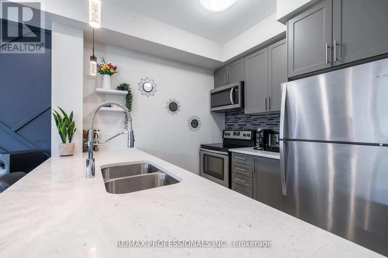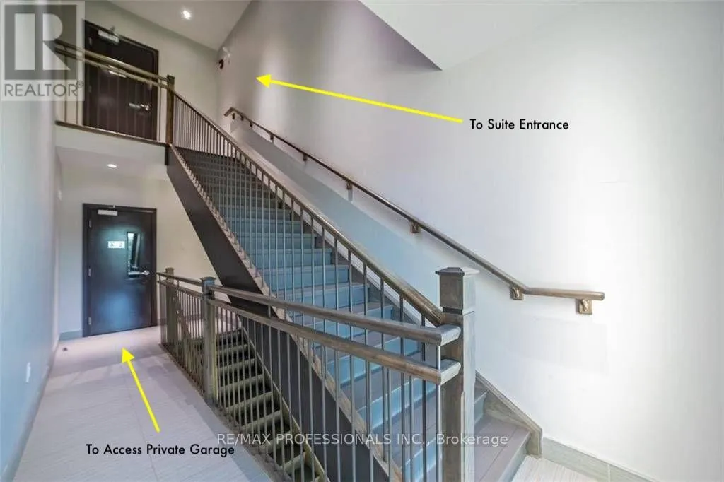 Dundas & Bronte You don't see this style of condo every day. This unique offering features a stylish one-storey suite with your own private garage and driveway in sought-after Upper Glen Abbey West. TWO PARKING SPOTS! This impeccably maintained second-floor home offers 959 sq ft of bright, open-concept living, plus a 219 sq ft private balcony terrace-perfect for outdoor dining, entertaining, or simply relaxing, complete with a gas line for your BBQ. Access to the unit is through a common hallway, followed by one flight of stairs to the second-floor. Set within a boutique-style complex with fewer residents, this home offers added privacy in a quiet, well-managed environment with low condo fees. Move-in ready and thoughtfully updated, the interior features a striking navy blue accent wall, added pot lights, upgraded kitchen pendant lighting, floating shelves, and a new kitchen faucet. Both bedrooms include upgraded closet storage systems.Additional highlights include high-efficiency mechanicals, semi-annual HVAC maintenance, an upgraded drainage system, a smart Wi-Fi garage door opener, and an approximately 140 sq ft storage locker.Conveniently located near QEW/403/407, Bronte GO, Oakville Trafalgar Memorial Hospital, Glen Abbey Golf Club, shopping, restaurants, parks such as Bronte Creek, trails, playgrounds, and top-rated schools. (id:27476)