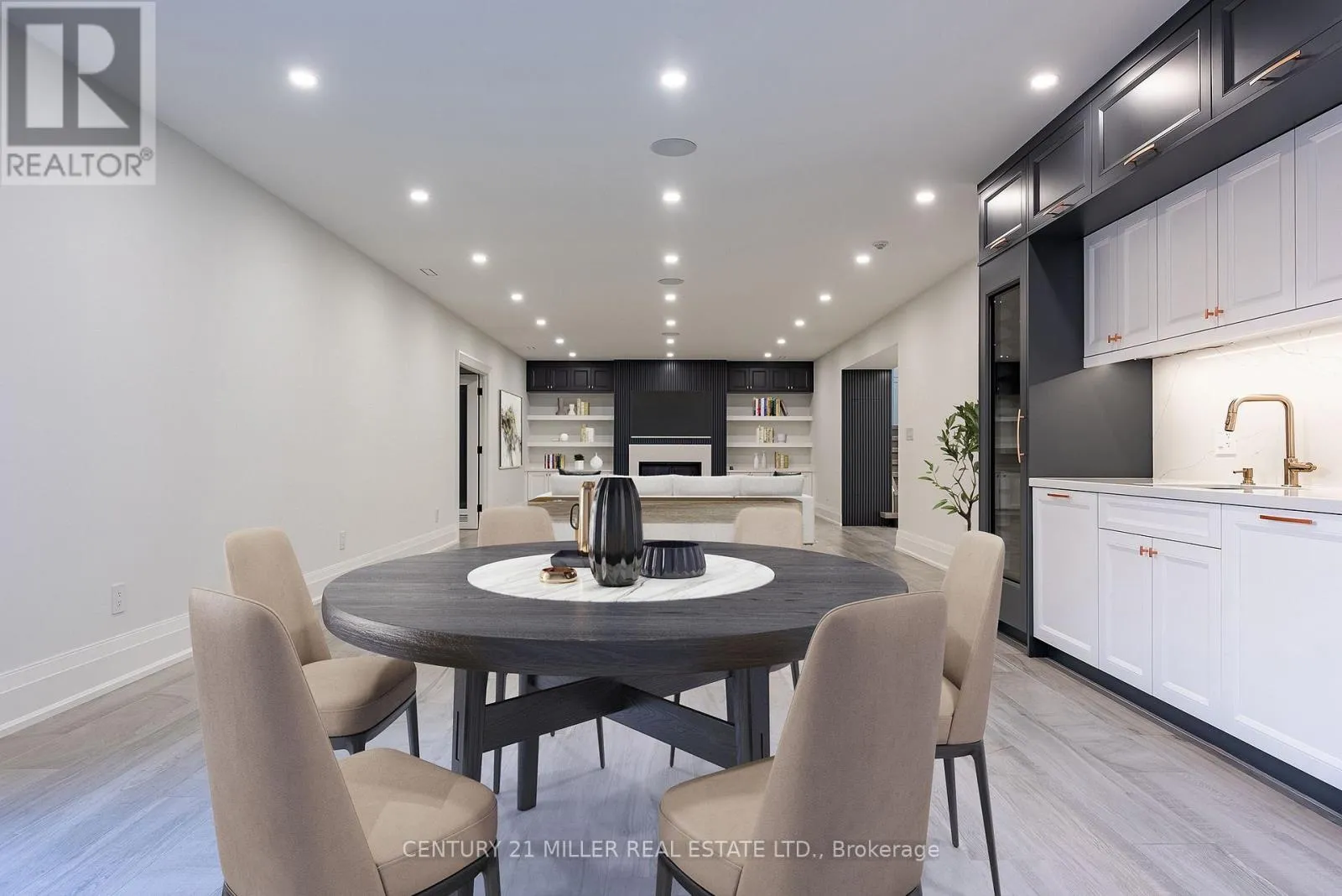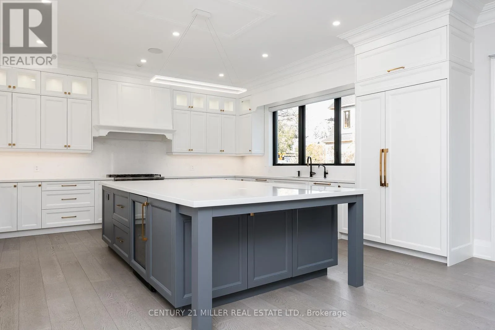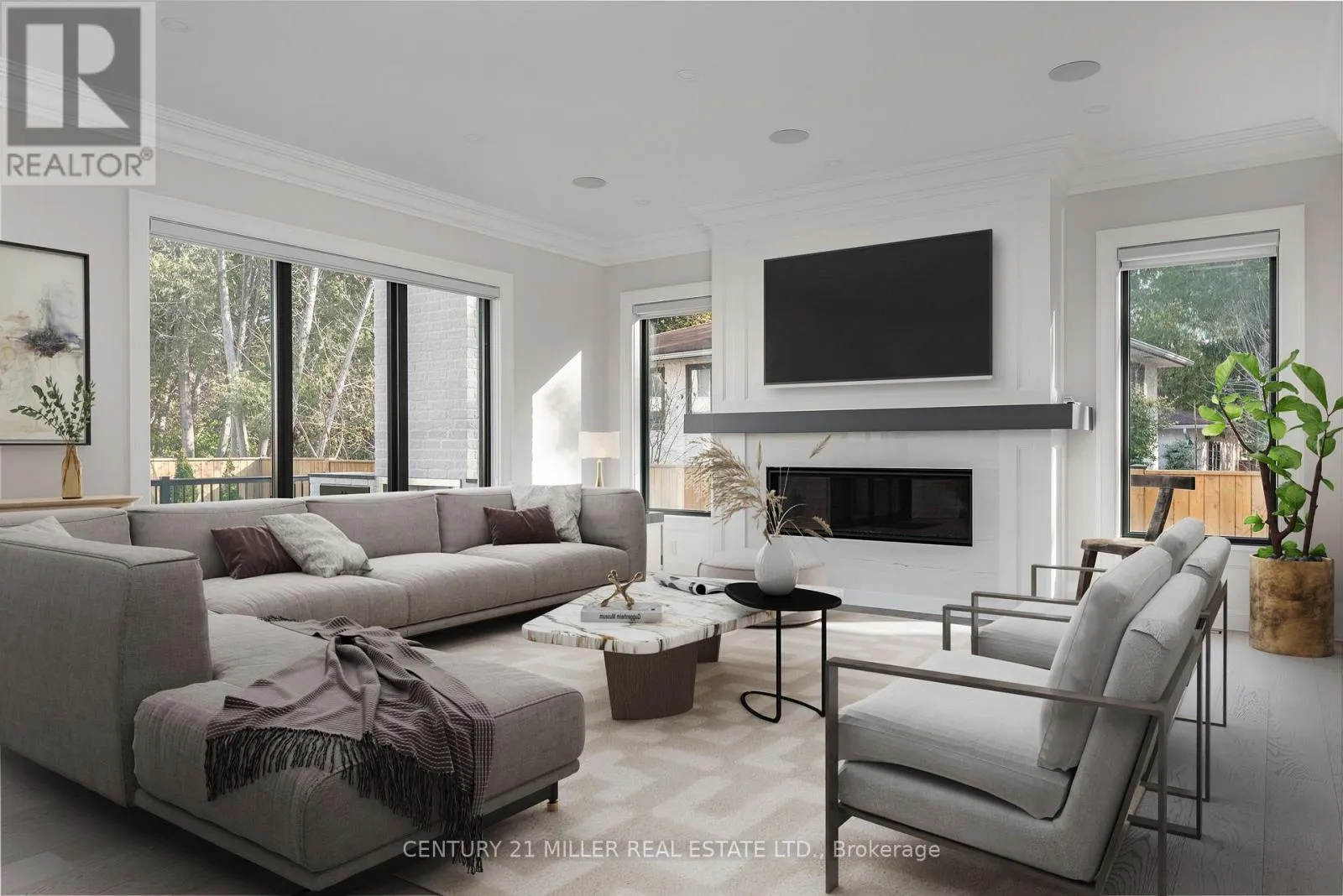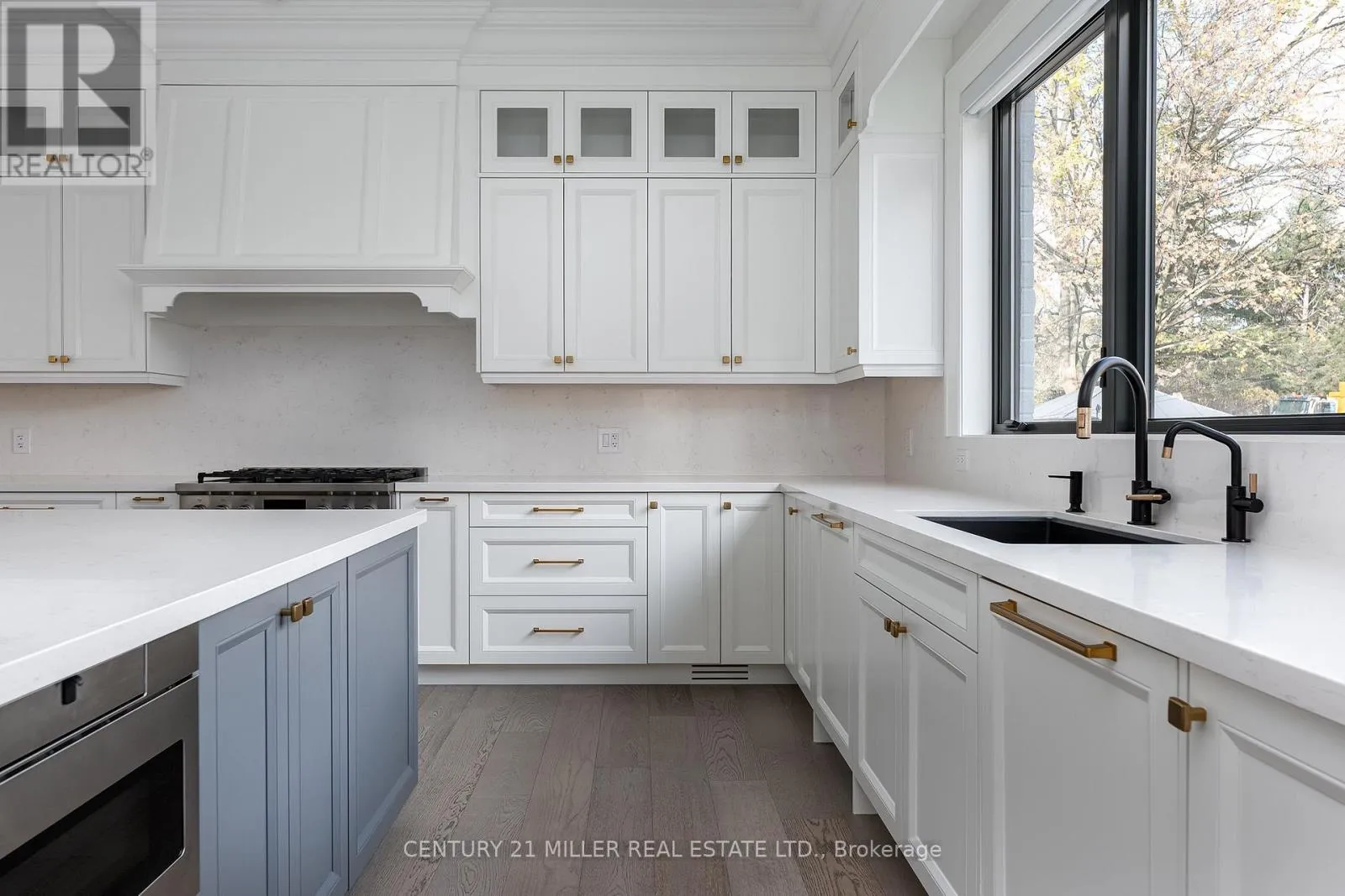 Cornwall Road / Chartwell Road Beautifully built and impeccably finished, this custom residence offers more than 6,700 square feet of living space in one of Oakville's most sought-after neighbourhoods. Stone construction, a solid wood entry door, heated garage floors, and timeless architectural detailing set the tone for the quality found throughout the home. Inside, the foyer features heated marble tile, plaster crown mouldings, poplar baseboards, and sightlines that lead into bright, open spaces. A dramatic dining room anchors the main level with a soaring skylight, custom wall panelling, integrated speakers, and carefully curated lighting. The chef's kitchen is designed with extensive custom cabinetry, quartz countertops, a large island, and easy flow to the family room. The servery and mudroom connect seamlessly; each finished with thoughtful storage and heated floors. Upstairs, all four bedrooms are generously scaled and feature private ensuite baths. The primary suite includes a fireplace, custom walk-in closet, and a beautifully coordinated ensuite with heated floors, a freestanding tub, glass shower, and frosted-glass water closet. A full-size laundry room with cabinetry and folding space completes this level. The lower level offers exceptional versatility with radiant in-floor heating, two additional bedrooms, a three-piece bath with sauna, a recreation room with fireplace, a wet bar/kitchen setup, and a dedicated theatre room beneath the back porch. Wide walk-up access brings in natural light and creates an ideal in-law or extended-family space. Outdoors, the large stone terrace features a gas fireplace and outdoor kitchen with built-in BBQ, extending the home's entertaining potential. Motorized blinds, CAT-6 wiring, solid core doors, and an oak staircase with glass panels highlight the home's elevated craftsmanship. With top-ranked schools, shopping, GO access, and major highways nearby, this is a quality home in a prime location. (id:27476)
