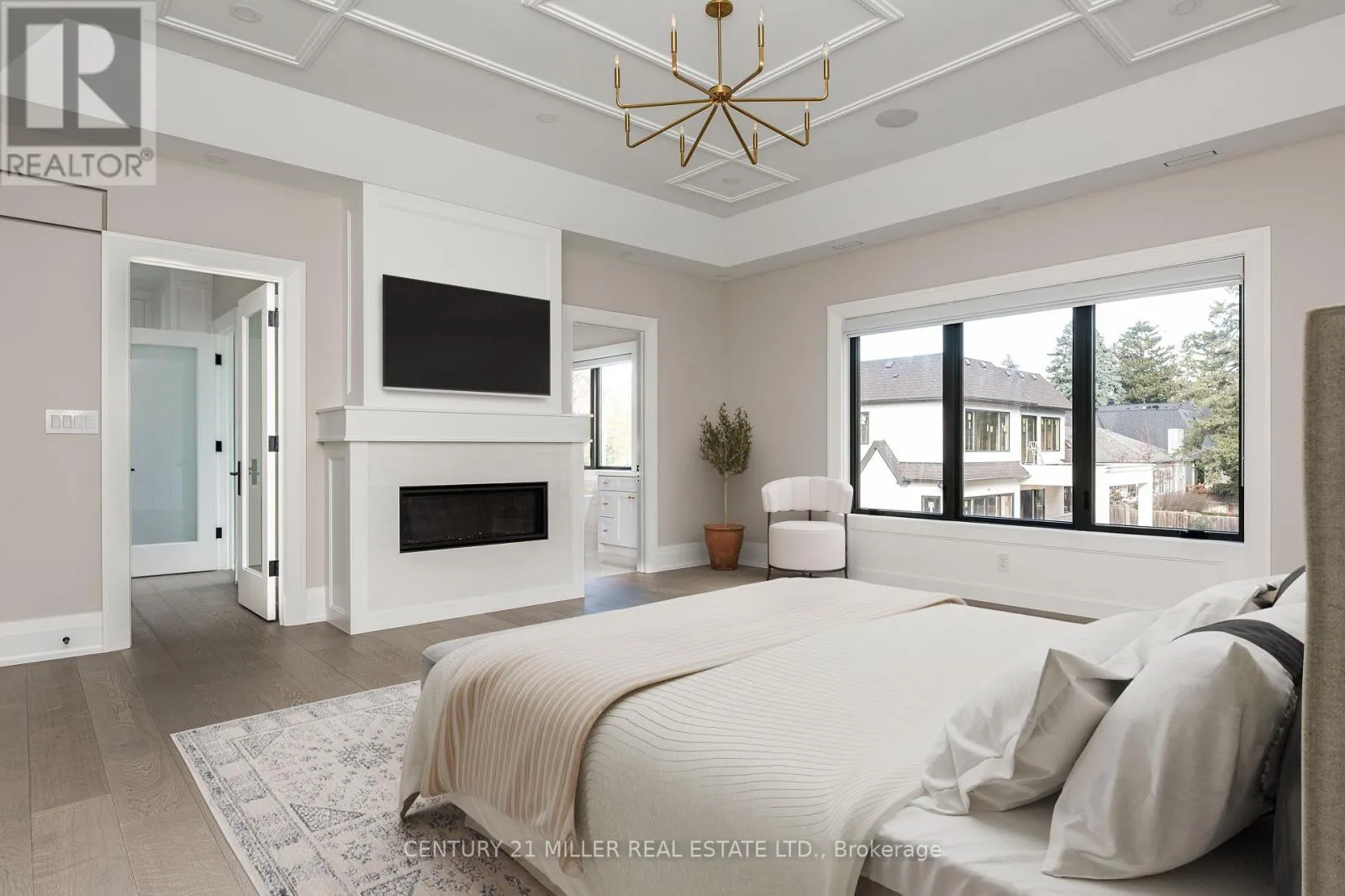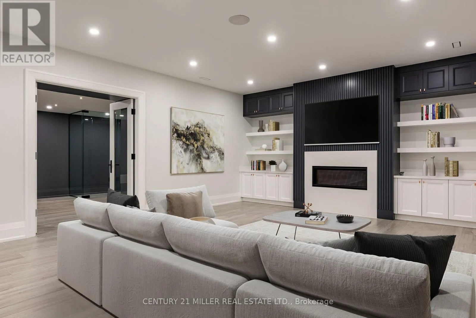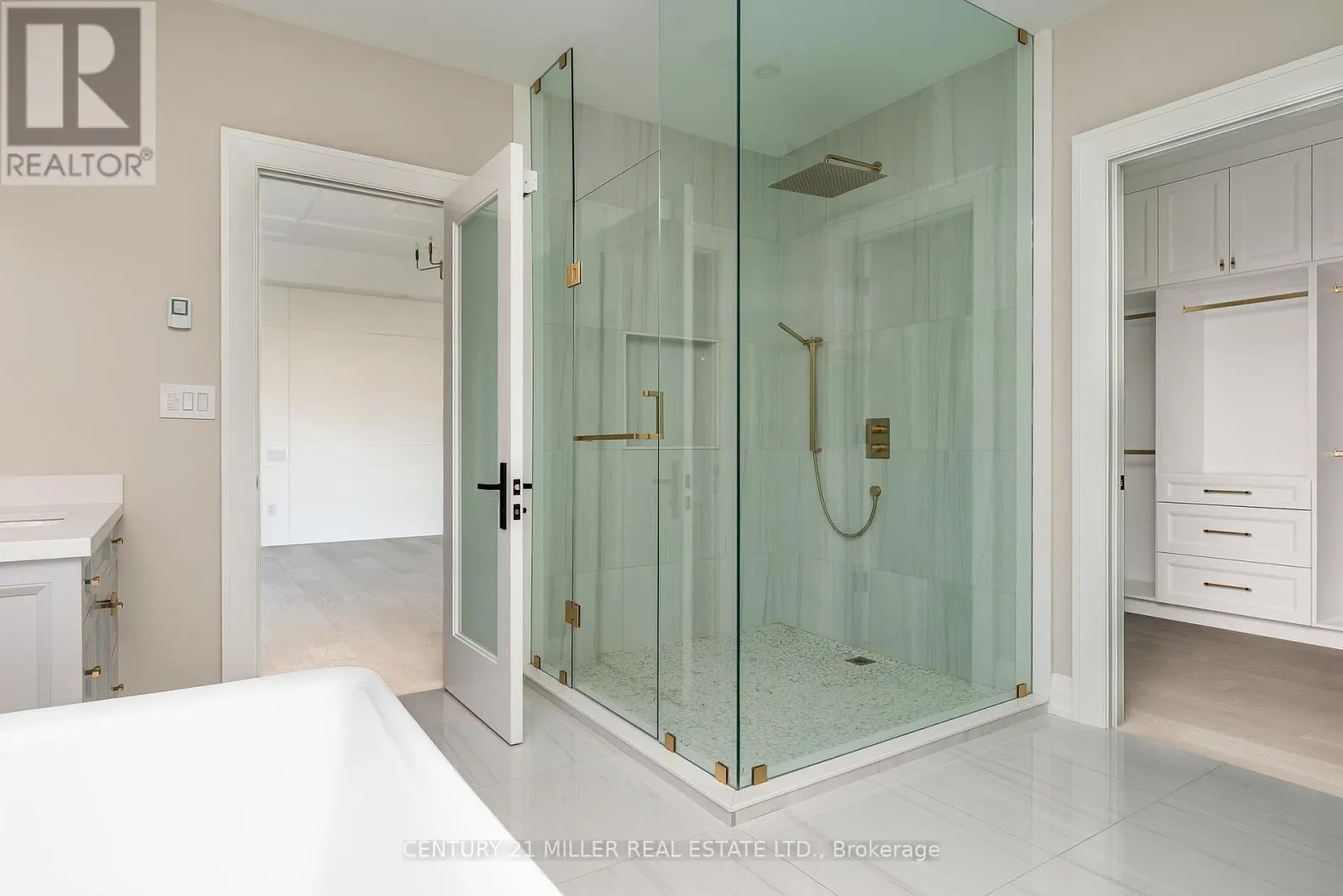 Cornwall Road / Chartwell Road Beautifully built and impeccably finished, this custom residence offers more than 6,700 square feet of living space in one of Oakville's most sought-after neighbourhoods. Stone construction, a solid wood entry door, heated garage floors, and timeless architectural detailing set the tone for the quality found throughout the home. Inside, the foyer features heated marble tile, plaster crown mouldings, poplar baseboards, and sightlines that lead into bright, open spaces. A dramatic dining room anchors the main level with a soaring skylight, custom wall panelling, integrated speakers, and carefully curated lighting. The chef's kitchen is designed with extensive custom cabinetry, quartz countertops, a large island, and easy flow to the family room. The servery and mudroom connect seamlessly; each finished with thoughtful storage and heated floors. Upstairs, all four bedrooms are generously scaled and feature private ensuite baths. The primary suite includes a fireplace, custom walk-in closet, and a beautifully coordinated ensuite with heated floors, a freestanding tub, glass shower, and frosted-glass water closet. A full-size laundry room with cabinetry and folding space completes this level. The lower level offers exceptional versatility with radiant in-floor heating, two additional bedrooms, a three-piece bath with sauna, a recreation room with fireplace, a wet bar/kitchen setup, and a dedicated theatre room beneath the back porch. Wide walk-up access brings in natural light and creates an ideal in-law or extended-family space. Outdoors, the large stone terrace features a gas fireplace and outdoor kitchen with built-in BBQ, extending the home's entertaining potential. Motorized blinds, CAT-6 wiring, solid core doors, and an oak staircase with glass panels highlight the home's elevated craftsmanship. With top-ranked schools, shopping, GO access, and major highways nearby, this is a quality home in a prime location. (id:27476)