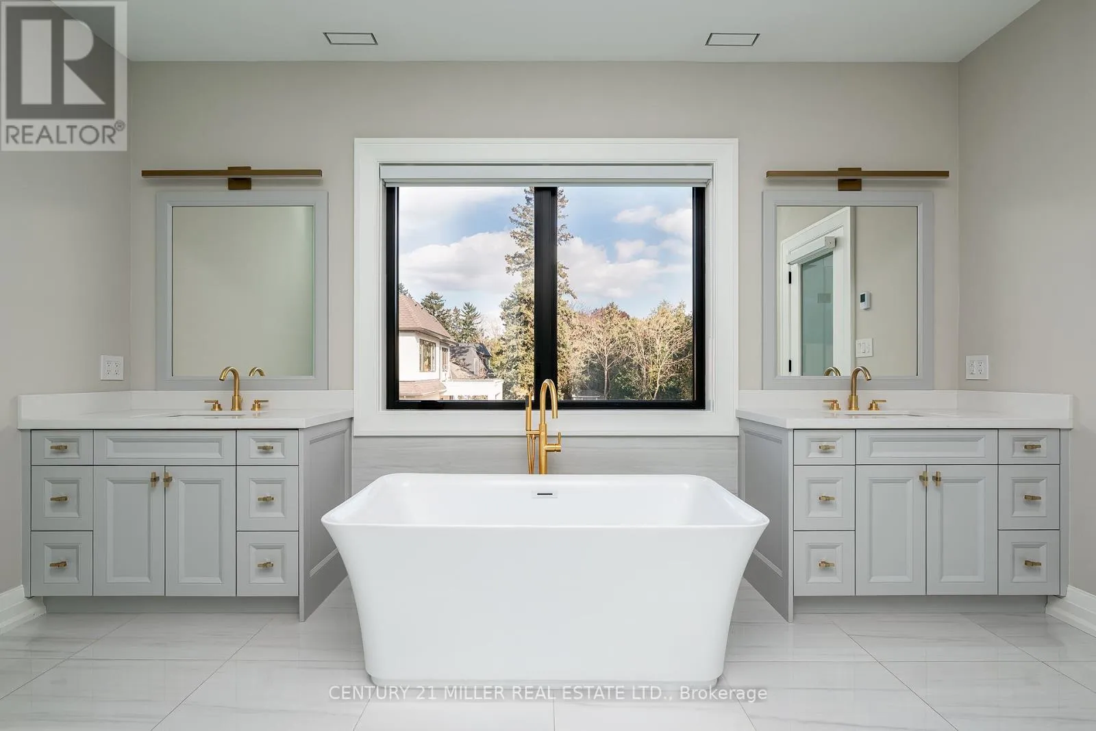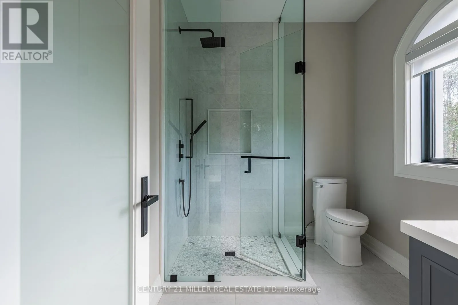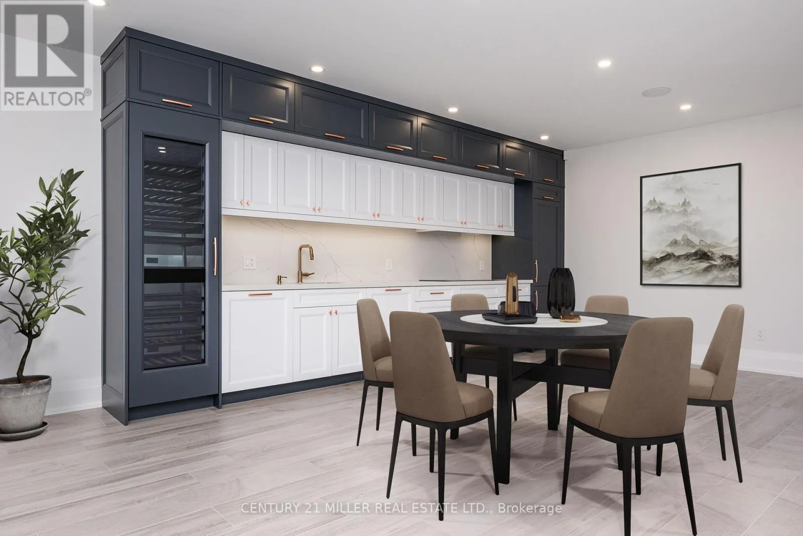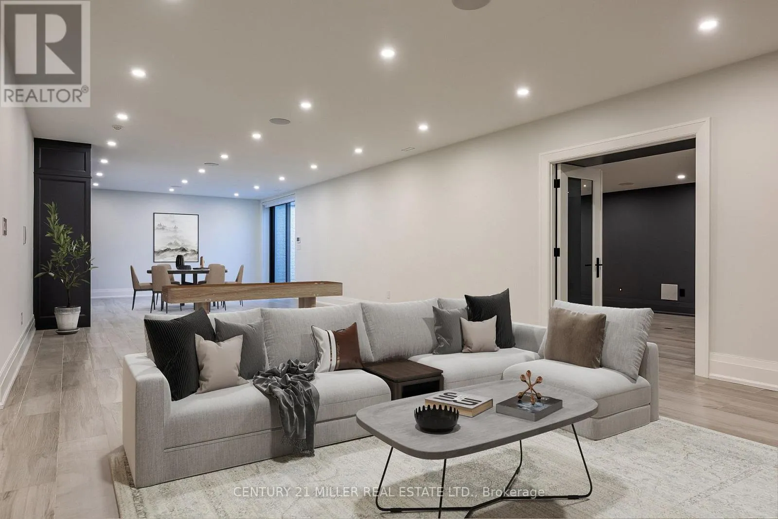 Cornwall Road / Chartwell Road Beautifully built and impeccably finished, this custom residence offers more than 6,700 square feet of living space in one of Oakville's most sought-after neighbourhoods. Stone construction, a solid wood entry door, heated garage floors, and timeless architectural detailing set the tone for the quality found throughout the home. Inside, the foyer features heated marble tile, plaster crown mouldings, poplar baseboards, and sightlines that lead into bright, open spaces. A dramatic dining room anchors the main level with a soaring skylight, custom wall panelling, integrated speakers, and carefully curated lighting. The chef's kitchen is designed with extensive custom cabinetry, quartz countertops, a large island, and easy flow to the family room. The servery and mudroom connect seamlessly; each finished with thoughtful storage and heated floors. Upstairs, all four bedrooms are generously scaled and feature private ensuite baths. The primary suite includes a fireplace, custom walk-in closet, and a beautifully coordinated ensuite with heated floors, a freestanding tub, glass shower, and frosted-glass water closet. A full-size laundry room with cabinetry and folding space completes this level. The lower level offers exceptional versatility with radiant in-floor heating, two additional bedrooms, a three-piece bath with sauna, a recreation room with fireplace, a wet bar/kitchen setup, and a dedicated theatre room beneath the back porch. Wide walk-up access brings in natural light and creates an ideal in-law or extended-family space. Outdoors, the large stone terrace features a gas fireplace and outdoor kitchen with built-in BBQ, extending the home's entertaining potential. Motorized blinds, CAT-6 wiring, solid core doors, and an oak staircase with glass panels highlight the home's elevated craftsmanship. With top-ranked schools, shopping, GO access, and major highways nearby, this is a quality home in a prime location. (id:27476)