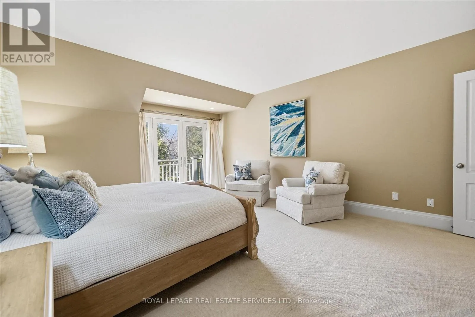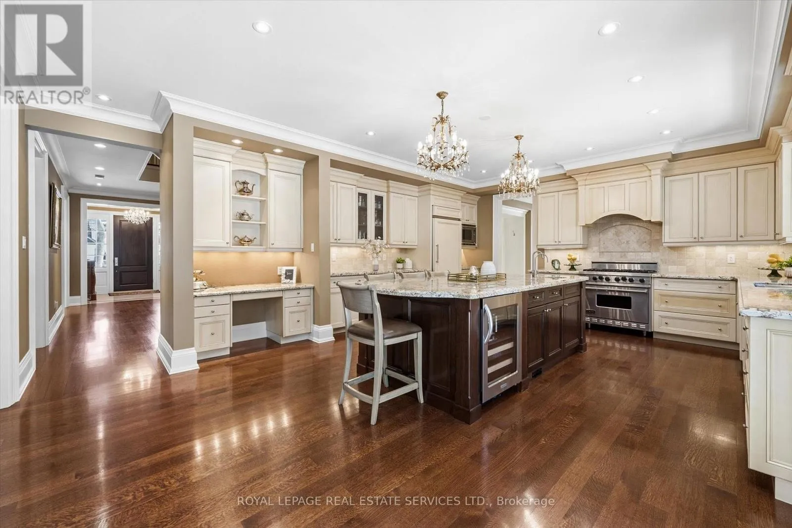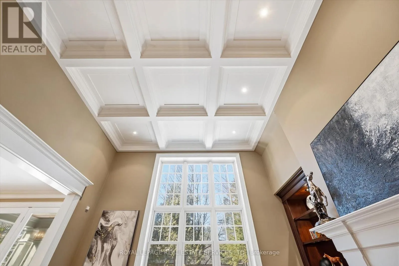 Cross Streets: Chartwell Road AND Cedar Grove Boulevard. ** Directions: Chartwell Road to Cedar Grove Boulevard. Designed by noted architect Gren Weis and built by Hallmark Homes, this distinguished Morrison residence reflects a level of architectural integrity and craftsmanship rarely replicated in today's custom market. Set on a beautiful 0.216 acre lot, the home offers appx. 5,500 SF of quality finished living space across three thoughtfully designed levels. The main floor showcases quarter-sawn cross-cut oak flooring, solid core doors, deep trim work and 9" baseboards, complemented by 9' ceilings and refined architectural detailing. A dramatic 13.5' coffered family room anchored by a traditional woodburning fireplace and cherry built-ins creates a warm focal point, framed by high-end architectural Kolbe windows that fill the space with natural light. The kitchen is designed for both everyday living and entertaining, featuring custom Andrew Moseley cabinetry, multi-tone granite surfaces, tumbled marble backsplash, premium appliances including a Viking six-burner gas range, and a generous 9' island with prep sink. Adjacent pantry and mudroom spaces provide everyday functionality with built-ins and direct garage access. Upstairs, the primary suite offers a private retreat with walk-out sun deck, walk-in closet, and a limestone ensuite with heated floor, Bain Ultra air tub and oversized rain shower. Two additional bedrooms each enjoy ensuite access. The fully finished lower level, with 9' ceilings and hydronic radiant heated floors, extends the living space with a large recreation area, custom bar, gym with resilient marmoleum flooring, and guest bedroom. Exterior highlights include premium cedar shake siding, copper architectural accents, Kolbe windows with UV protection, irrigation system and heated tandem garage. Located in one of Oakville's most established Morrison neighbourhoods, surrounded by mature streetscapes and prestigious custom homes. A rare combination of architectural pedigree, enduring craftsmanship and refined living space. (certain images digitally enhanced (id:27476)