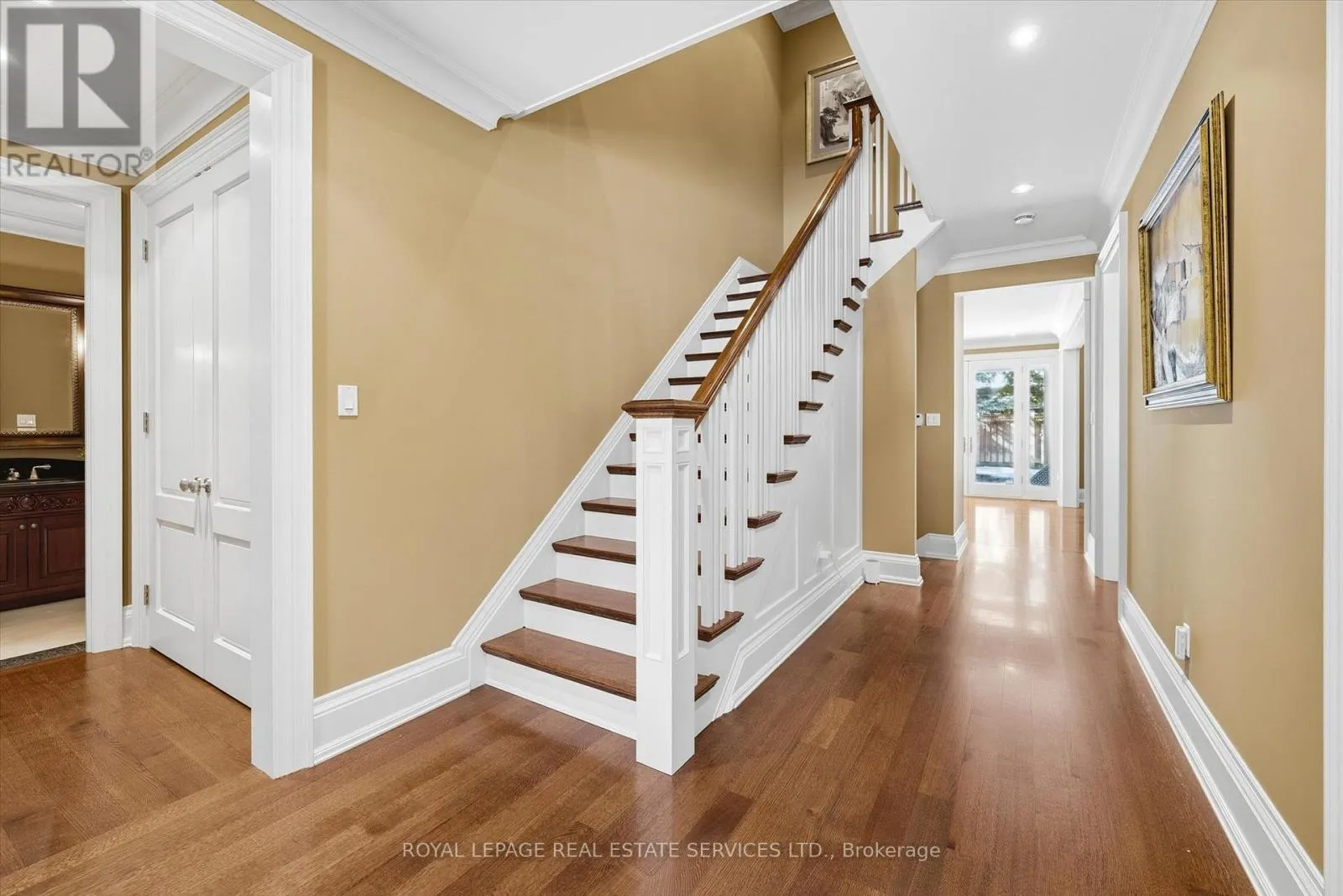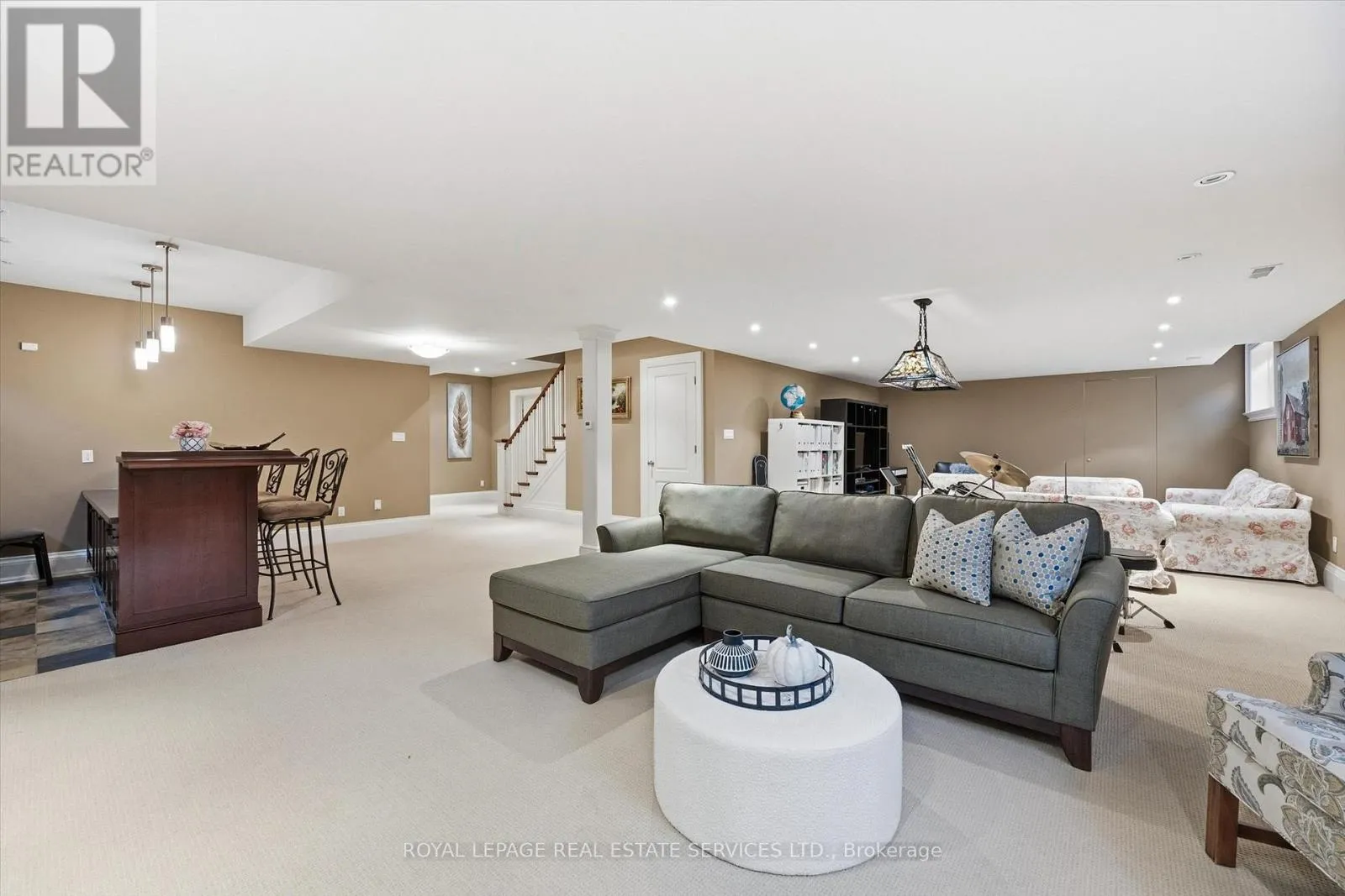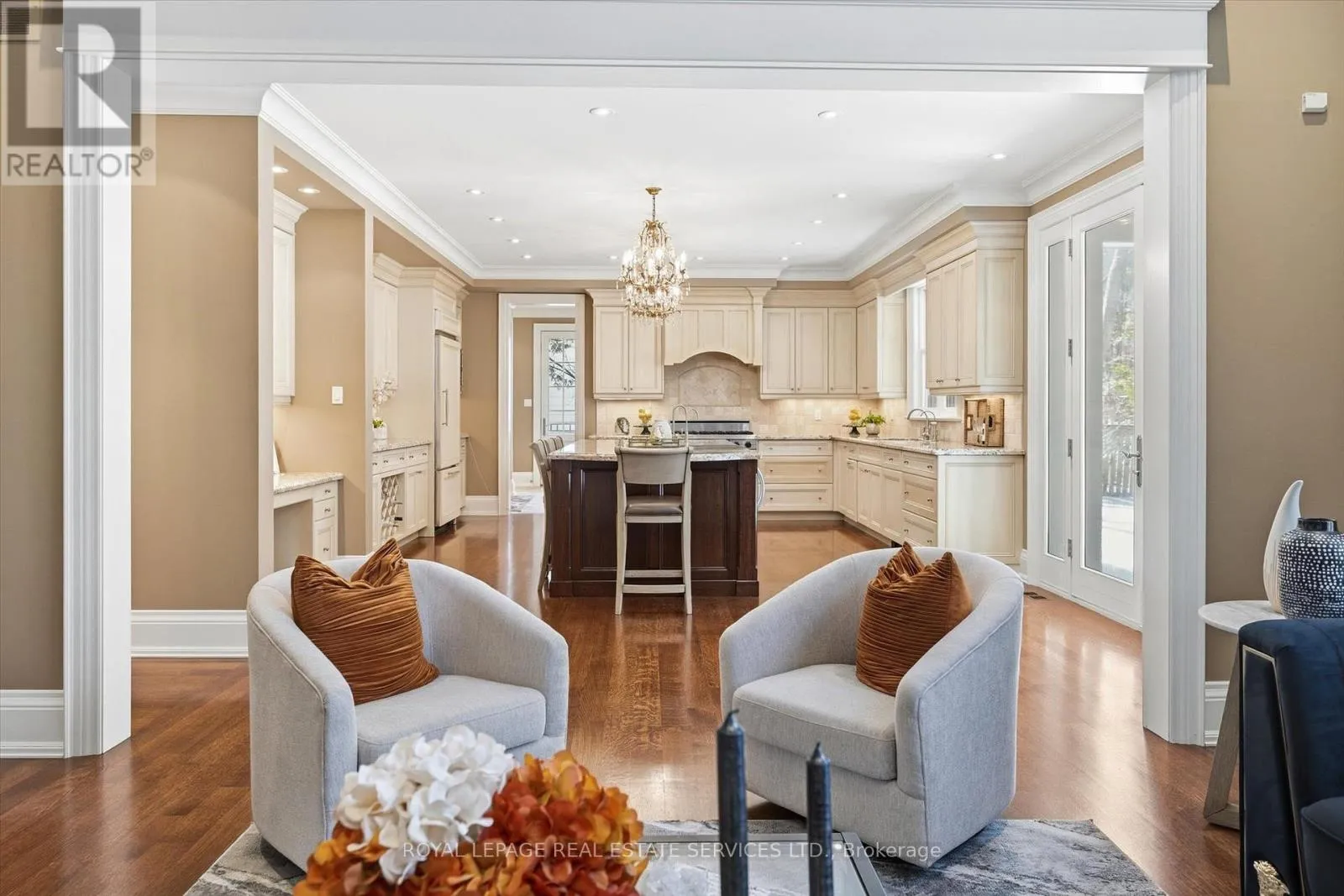 Cross Streets: Chartwell Road AND Cedar Grove Boulevard. ** Directions: Chartwell Road to Cedar Grove Boulevard. Designed by noted architect Gren Weis and built by Hallmark Homes, this distinguished Morrison residence reflects a level of architectural integrity and craftsmanship rarely replicated in today's custom market. Set on a beautiful 0.216 acre lot, the home offers appx. 5,500 SF of quality finished living space across three thoughtfully designed levels. The main floor showcases quarter-sawn cross-cut oak flooring, solid core doors, deep trim work and 9" baseboards, complemented by 9' ceilings and refined architectural detailing. A dramatic 13.5' coffered family room anchored by a traditional woodburning fireplace and cherry built-ins creates a warm focal point, framed by high-end architectural Kolbe windows that fill the space with natural light. The kitchen is designed for both everyday living and entertaining, featuring custom Andrew Moseley cabinetry, multi-tone granite surfaces, tumbled marble backsplash, premium appliances including a Viking six-burner gas range, and a generous 9' island with prep sink. Adjacent pantry and mudroom spaces provide everyday functionality with built-ins and direct garage access. Upstairs, the primary suite offers a private retreat with walk-out sun deck, walk-in closet, and a limestone ensuite with heated floor, Bain Ultra air tub and oversized rain shower. Two additional bedrooms each enjoy ensuite access. The fully finished lower level, with 9' ceilings and hydronic radiant heated floors, extends the living space with a large recreation area, custom bar, gym with resilient marmoleum flooring, and guest bedroom. Exterior highlights include premium cedar shake siding, copper architectural accents, Kolbe windows with UV protection, irrigation system and heated tandem garage. Located in one of Oakville's most established Morrison neighbourhoods, surrounded by mature streetscapes and prestigious custom homes. A rare combination of architectural pedigree, enduring craftsmanship and refined living space. (certain images digitally enhanced (id:27476)