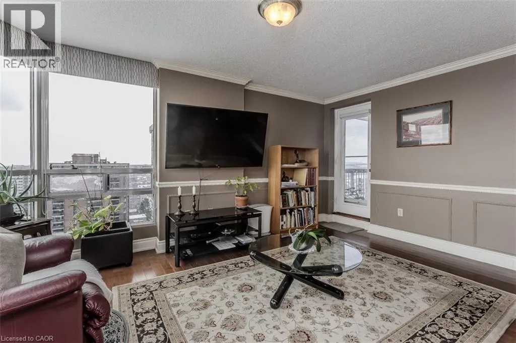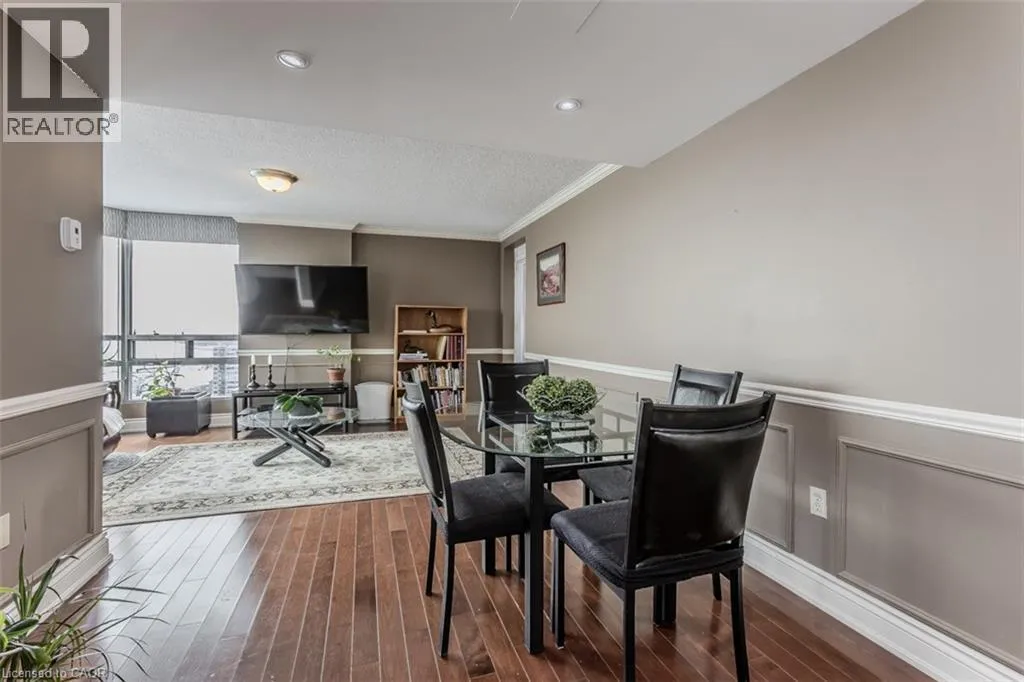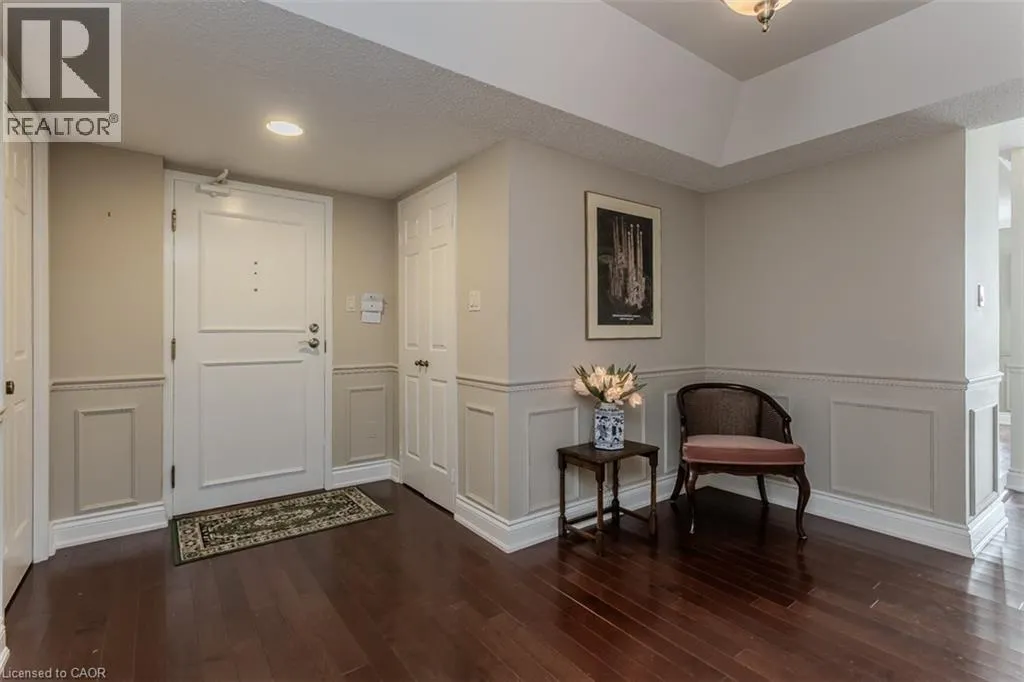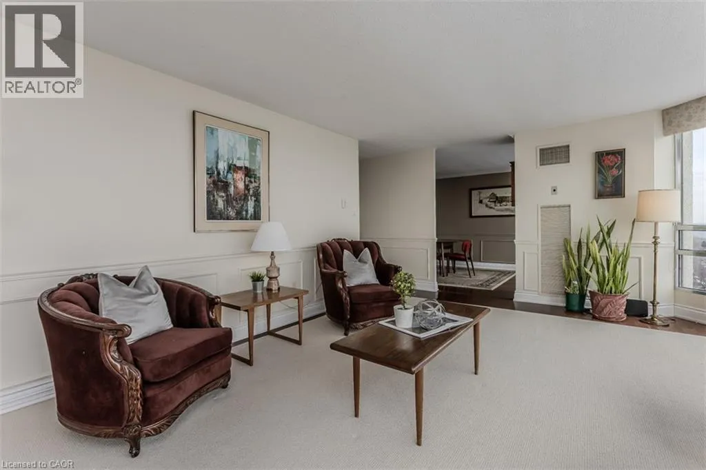 Lakeshore Road W to Third Line to Marine Drive Wake up to breathtaking, unobstructed views of Lake Ontario from this sun-drenched corner residence, ideally positioned in one of Bronte's most sought-after waterfront communities. Perfectly tailored for discerning downsizers, this home offers the rare opportunity to simplify without sacrificing space, comfort, or lifestyle-delivering a true resort-inspired experience steps from the harbour, marina, charming shops, restaurants and picturesque walking trails. A gracious entryway with tray ceiling sets the tone, leading into an elegant interior finished with wainscoting, high ceilings and hardwood flooring throughout. The spacious kitchen is both functional and refined, featuring granite countertops, tile backsplash, valence lighting and stainless steel appliances, flowing seamlessly into the open-concept eating area and main living space. Walls of floor-to-ceiling windows frame breathtaking, unobstructed views of Lake Ontario, filling the home with natural light throughout the day. Step onto the private balcony-large enough for lounging and dining-and take in panoramic lake and marina vistas that feel like a permanent getaway. A second living area, also wrapped in floor-to-ceiling windows, and a formal dining room provide flexibility for entertaining or quiet relaxation. The primary suite is a serene retreat with stunning lake views and a spa-inspired five-piece ensuite featuring dual vanities, a glass walk-in shower and a deep soaker tub. A generous second bedroom, a stylish three-piece bath with walk-in shower, and a dedicated in-suite laundry room complete the layout. Residents enjoy an exceptional array of resort-like amenities including an indoor pool, hot tub, sauna, fitness centre, tennis and squash courts, golf practice area, games and media rooms, library, art and woodworking studios, organized social activities, a lakefront clubhouse, car wash and 24-hour security. An unparalleled opportunity to embrace refined, low-maintenance waterfront living. (id:27476)