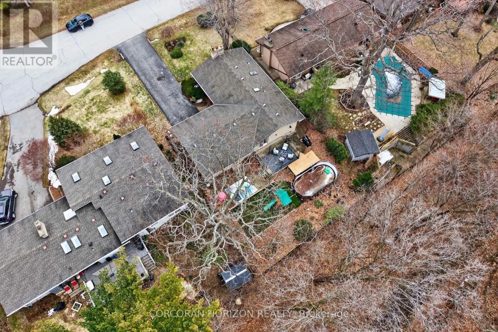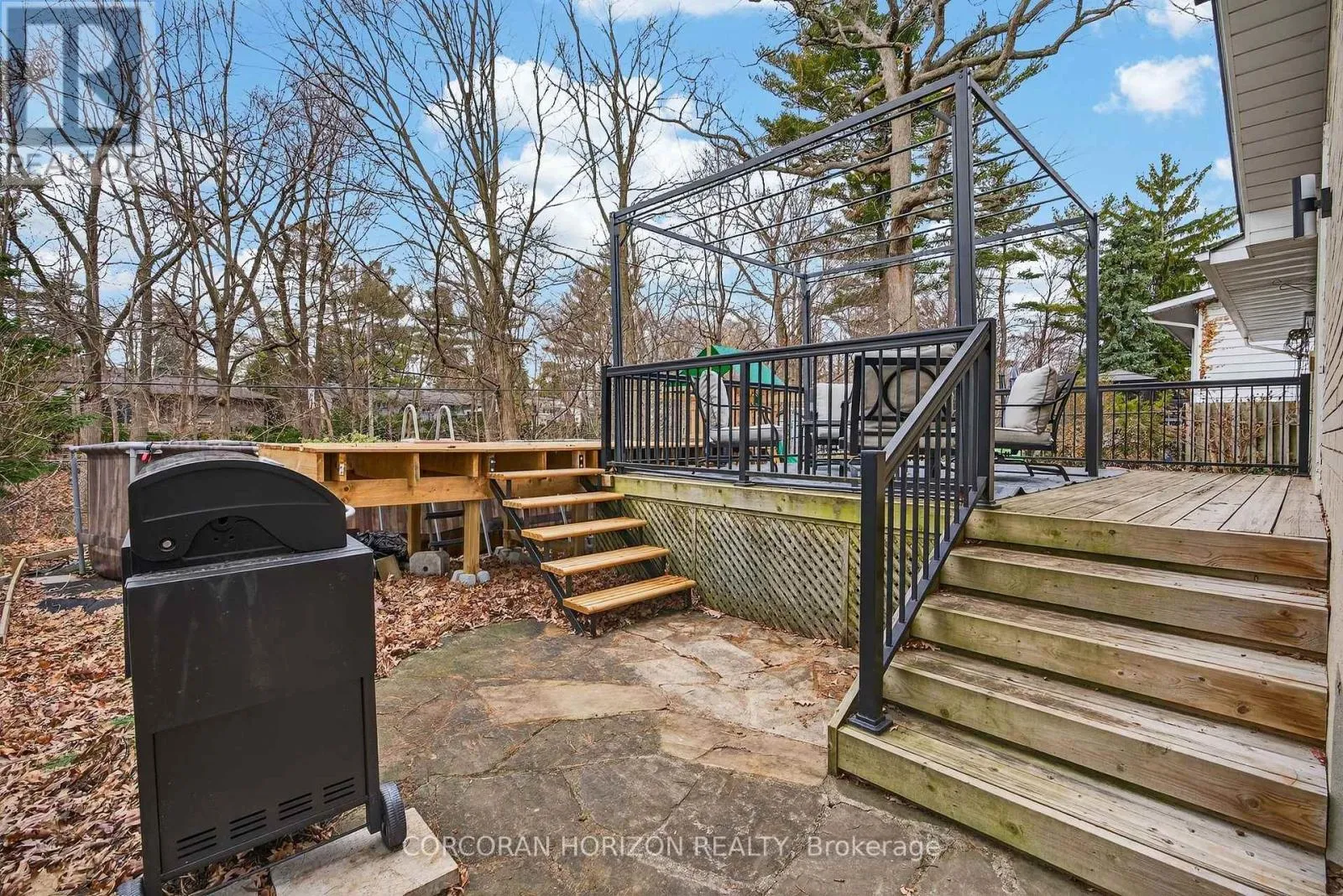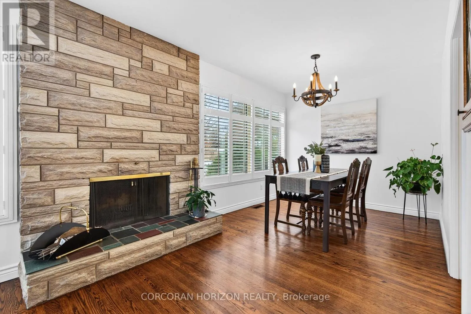 Falgarwood Dr & Eighth Line Nestled in the highly sought-after Falgarwood community, this exceptional bungalow offers rare main-floor living on a generous 63 x 121 ft lot backing onto a serene ravine with extended private views. Surrounded by mature trees & natural beauty, this property delivers a coveted sense of tranquility. Sun-filled living & dining spaces showcase expansive picture windows, California shutters, hardwood flooring & a striking wood-burning fireplace. The bright kitchen features a skylight, extensive cabinetry, s/s appliances & a built-in coffee bar. Spacious bedrooms include a serene primary retreat with custom built-ins & a beautifully renovated, enlarged ensuite. A versatile den with walk-out to the backyard overlooks the ravine-ideal as a home office or peaceful lounge. The finished lower level offers additional living space, a bedroom & abundant storage. Outside the oversized deck & lush landscaping create a private outdoor sanctuary just minutes to top schools, parks, GO Transit & more! (id:27476)