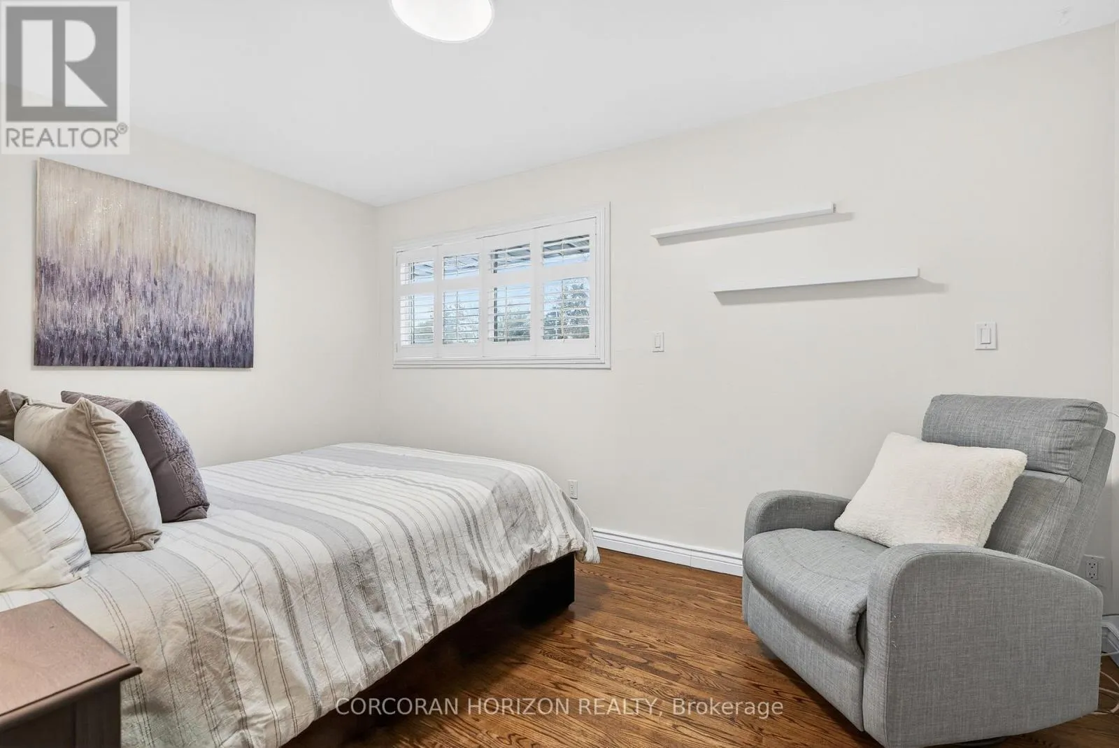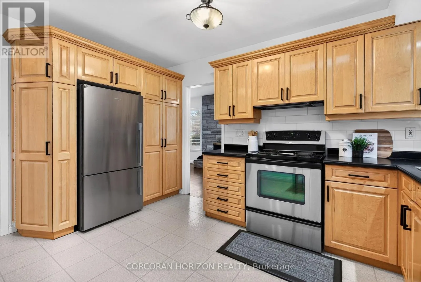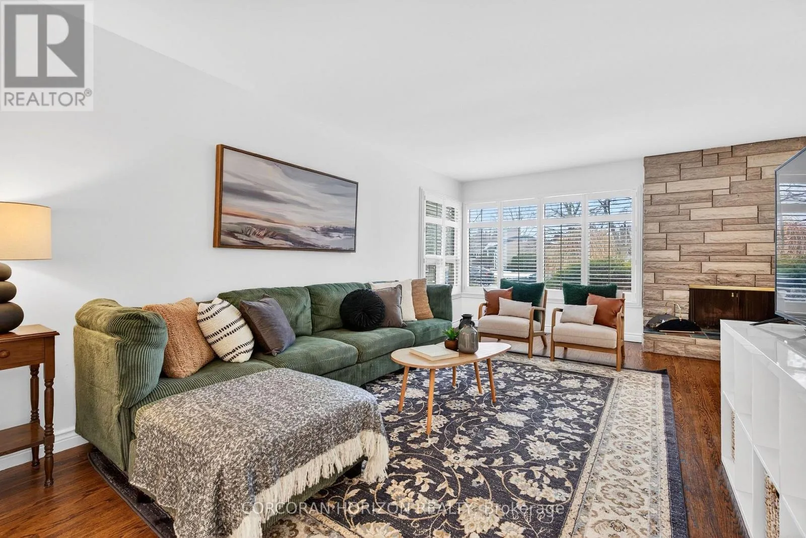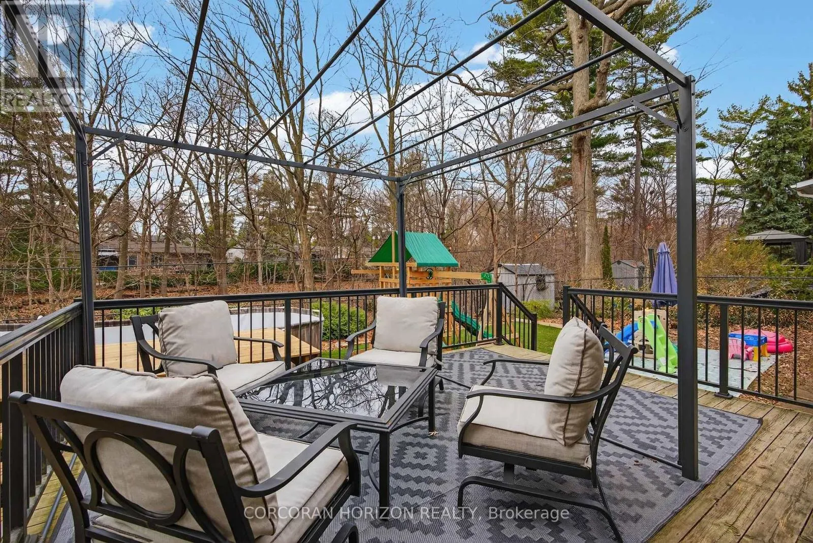 Falgarwood Dr & Eighth Line Nestled in the highly sought-after Falgarwood community, this exceptional bungalow offers rare main-floor living on a generous 63 x 121 ft lot backing onto a serene ravine with extended private views. Surrounded by mature trees & natural beauty, this property delivers a coveted sense of tranquility. Sun-filled living & dining spaces showcase expansive picture windows, California shutters, hardwood flooring & a striking wood-burning fireplace. The bright kitchen features a skylight, extensive cabinetry, s/s appliances & a built-in coffee bar. Spacious bedrooms include a serene primary retreat with custom built-ins & a beautifully renovated, enlarged ensuite. A versatile den with walk-out to the backyard overlooks the ravine-ideal as a home office or peaceful lounge. The finished lower level offers additional living space, a bedroom & abundant storage. Outside the oversized deck & lush landscaping create a private outdoor sanctuary just minutes to top schools, parks, GO Transit & more! (id:27476)