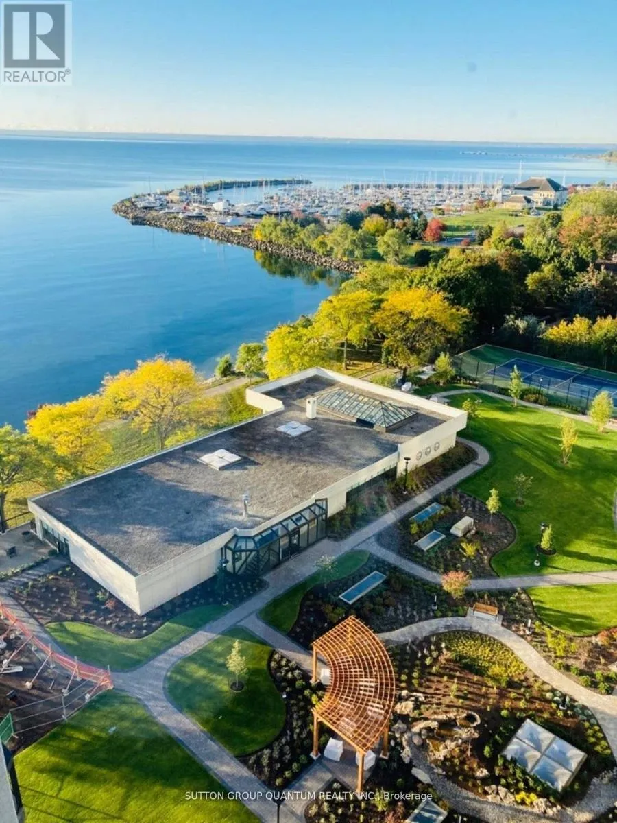 Marine Dr/ East of Bronte Completely renovated luxury condo in the prestigious Ennisclare II on the Lake, showcasing exceptional craftsmanship and high-end finishes throughout. This exquisite 2-bedroom, 2-bath residence offers elegant living space designed for comfort, convenience, and entertaining. The airy layout features hardwood floors throughout, smooth ceilings, crown moulding, custom millwork, 8 inch baseboards, glass railings, pot lights, floor-to-ceiling windows, motorized blinds integrated with home automation. The gourmet kitchen includes quartz countertops, designer backsplash, premium stainless steel appliances, hidden built-in microwave, extensive cabinetry, pot drawers, built-in organizers, glass display cabinets with accent lighting, and an eat-in breakfast area overlooking the family room. Spacious family room with floor-to-ceiling sliding doors walks out to a balcony offering breathtaking, lake views. Formal living and dining area features large picture windows and elegant architectural detailing. The primary bedroom retreat offers a custom feature wall, and an expansive walk-in closet. Spa-inspired ensuite includes a double vanity with quartz counters and a stand-alone shower. Generous second bedroom, additional 3-piece bath, and convenient ensuite laundry with sink and storage complete the suite. Includes one underground parking space equipped with a Level 2 EV charger and access to a private locker. Residents enjoy resort-style amenities including 24-hour gated security, indoor pool, hot tub, sauna, fitness and yoga studios, tennis and squash courts, party and games rooms, library, golf driving range, woodworking and art studios, car wash, and terraced gardens and private access to the public walkway and paths along the lake and a clubhouse overlooking Lake Ontario. Ideally located steps to Bronte Harbour, Lake Ontario, waterfront trails, parks, boutique shopping, dining, QEW, and transit. Must be seen! (id:27476)