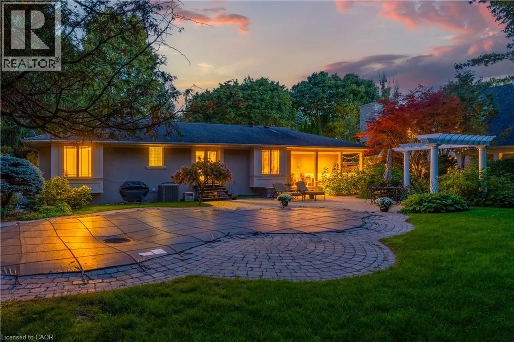 East on Ardleigh Rd from Maple Grove Dr Residing on a mature, landscaped lot in Oakville with tree-lined streets creates a gorgeous setting for this lovely 3+1 bedroom bungalow where there are green views from every window. This home provides both a private, tranquil setting and great entertaining spaces. There is a covered porch off the back of the house where views of trees and greenery can be enjoyed. A large, stone patio area hosts an L-shaped pergola framing a sitting or dining area and surrounds the in-ground pool. Centrally located within highly desirable, prestigious Eastlake community of southeast Oakville, this location makes it ideal for accessing both the lake and the area's top amenities and schools. The large, gourmet kitchen has an island breakfast bar and a large window with a view of a Japanese Maple tree. Three bay windows offer a warm, inviting ambience; two in bedrooms and one in the dining room. The basement has in-law suite potential as there is a storage area under the kitchen that sides onto the bathroom, and there is separate entrance potential. Situated close to the town's most valuable amenities, there is top-tier education, lakeside leisure with green spaces and close proximity to the waterfront including Gairloch Gardens and scenic Lake Ontario trails. For convenience and community, enjoy a short drive to vibrant shops, gourmet restaurants, and cultural attractions of historic downtown Oakville. Maple Grove Village offers excellent shopping and services. Come and see all that this area and home have to offer! (id:27476)