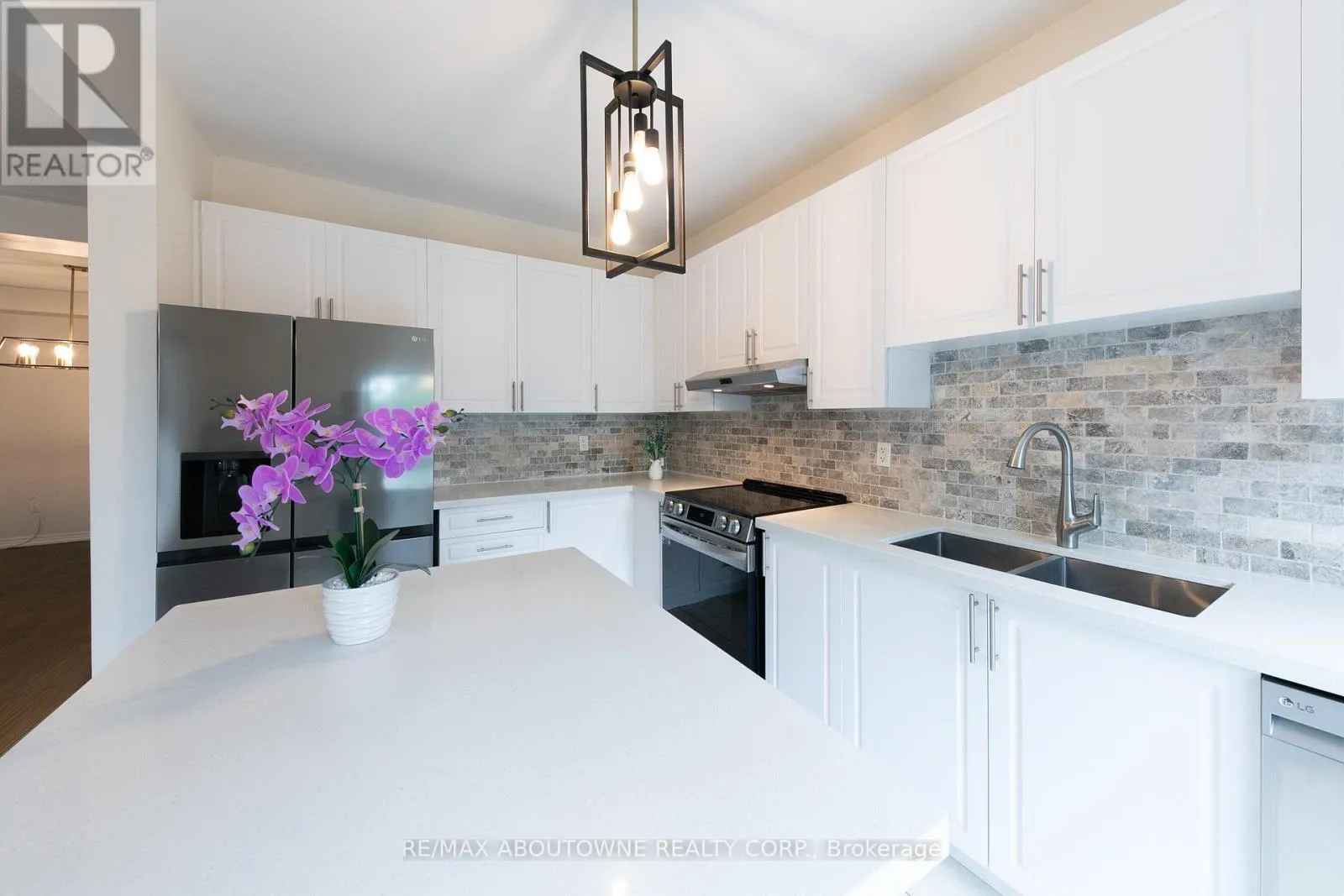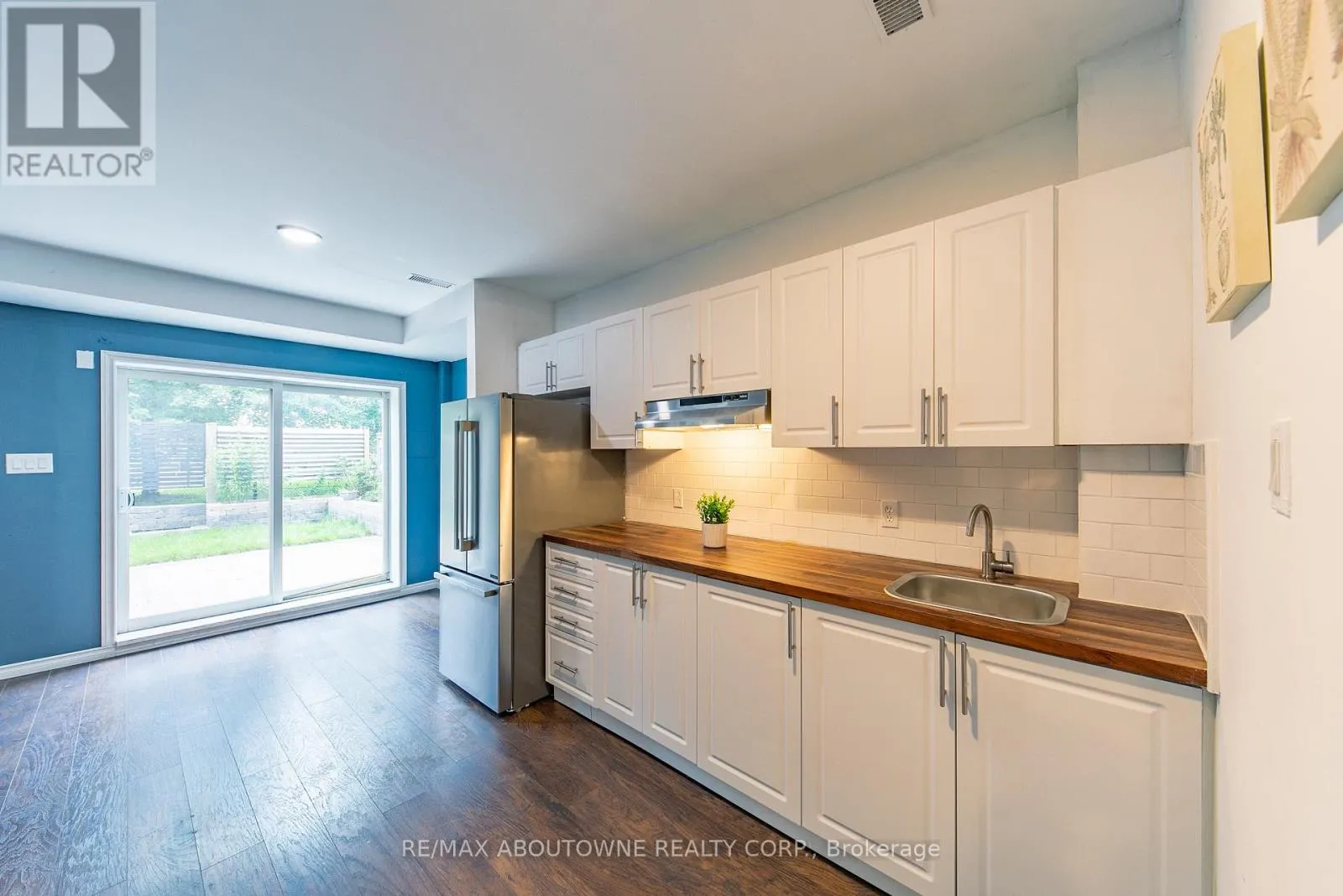 Cross Streets: North Ridge / Spring Blossom. ** Directions: North Ridge Trail & Spring Blossom Crescent. Welcome to this executive townhouse at 374 Spring Blossom Cres, offering a comfortable and modern living environment in a highly convenient location. This approximately 1,900 sq.ft. plus finished walk-out basement home provides access to top-rated schools and excellent amenities, making it an ideal residence for quality living. This property is not directly attached to neighbouring units on either side (except at the garage), offering enhanced privacy and a more detached-home feel.Upon entering, you are welcomed by 9-foot ceilings and premium hardwood flooring throughout the main floor. The gourmet kitchen features high-quality appliances and finishes and opens seamlessly to the family room. A balcony overlooking the backyard and park provides a perfect place to relax and enjoy the view. The main floor also includes a dining area with a large window open to the family room, as well as a convenient powder room for guests.Upstairs, the primary bedroom serves as a private retreat, featuring a 5-piece ensuite bathroom and a walk-in closet. Two additional spacious bedrooms share a well-designed bathroom. The laundry room with a sink is also conveniently located on the upper level.The walk-out basement studio suite has its own separate entrance, providing excellent privacy. It includes a kitchenette, a washroom, and a flexible space that can be used as a fitness area, home office, or potentially a den or additional bedroom.The low-maintenance "Urban Zen" backyard backs onto a trail leading to a splash pad and parks, offering a peaceful outdoor setting with no rear neighbours.Conveniently located near public transit, QEW/403, and Highway 407, this home offers easy commuting. The property is within the boundaries of excellent schools, including Iroquois Ridge HS, Munn's PS, and White Oaks / St. Thomas Aquinas (IB programs). This well-appointed executive townhouse offers a wonderful balance of comfort, space, privacy, and location - an excellent place to call home. (id:27476)