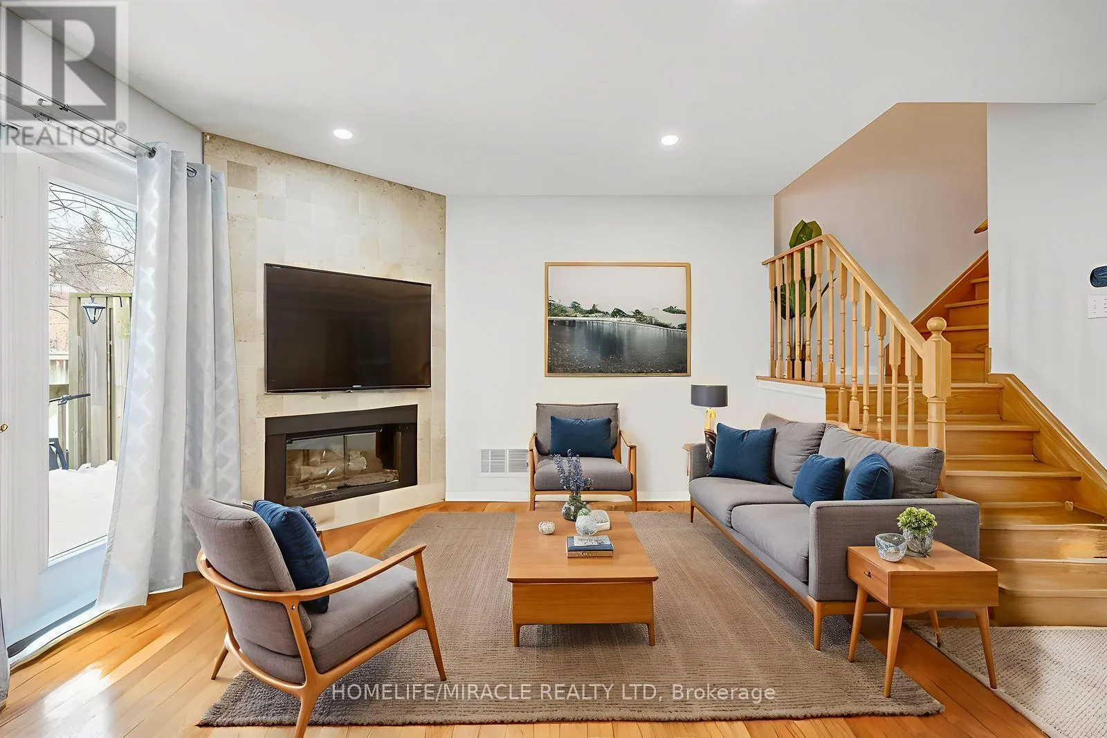 Cross Streets: Upper Middle to North on Sixth Line. ** Directions: Upper Middle and Sixth Line. Welcome to this upscale townhome in the highly desirable Ravines of Twin Oaks, nestled in a quiet, sought-after enclave offering peace, privacy, and direct access to nature. This bright, well-kept 3-bedroom, 3 full and 1 half bathroom home features a fully finished basement and backs onto the serene, tree-lined Nipigon Trail and creek-a rare and tranquil setting. Inside, enjoy gleaming hardwood flooring throughout the main living areas and a thoughtfully designed main-floor layout. The open-concept kitchen offers ample cabinetry and counter space, along with a convenient pantry located in the hallway. The spacious living room, complete with a cozy gas fireplace, is ideal for both everyday living and entertaining. Upstairs, you'll find a generous primary bedroom featuring a full wall of closets and an updated ensuite. The functional layout provides comfortable and versatile living space across all levels, making it perfect for families, professionals, or those who love to entertain. The finished basement adds valuable additional living space-ideal for a recreation room or home office-and includes a full bathroom, laundry room, and separate storage room. Located in a well-managed and quiet community with no through traffic, this home also offers ample visitor parking-a rare bonus. Maintenance fees include snow clearing, ensuring carefree winter living. Whether enjoying morning coffee on your private deck overlooking the forest or taking a peaceful stroll along the Nipigon Trail, this home delivers a perfect blend of urban convenience and natural beauty. Don't miss this move-in-ready gem combining comfort, style, and an exceptional location.(Some images are virtually staged.) (id:27476)