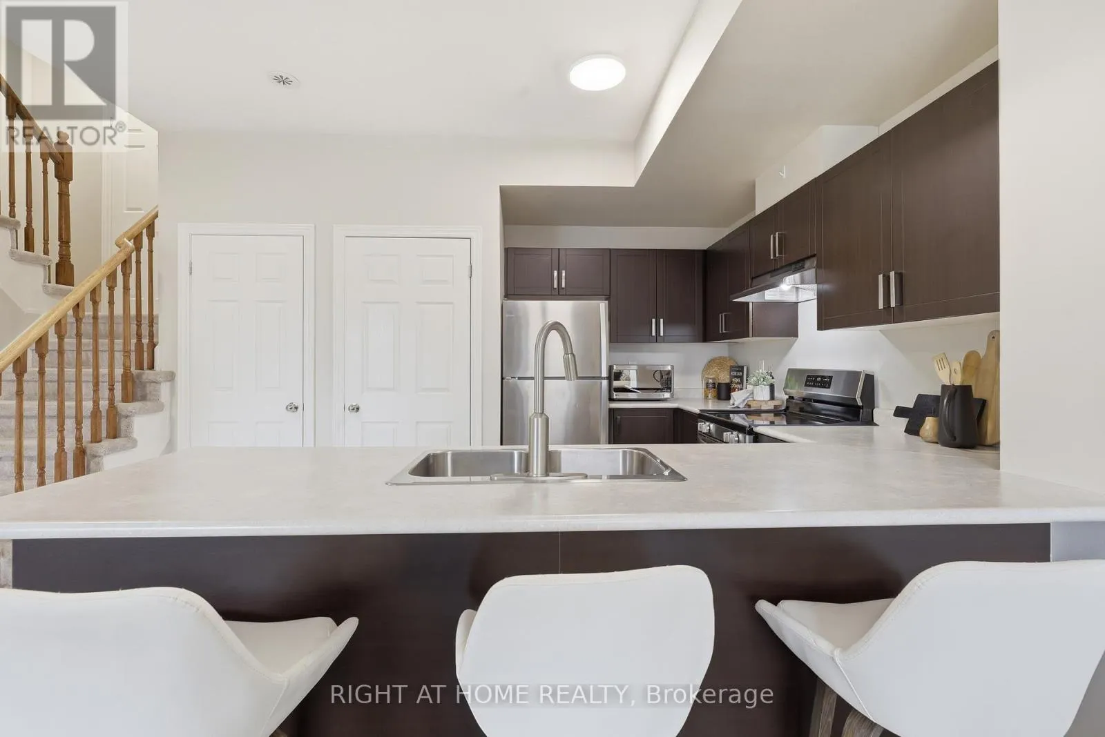 Cross Streets: Bronte/Westoak Trails. ** Directions: Bronte to Westoak Trails to Baronwood. Welcome to 2420 Baronwood Dr (Unit #20-04), a MOVE-IN ready stacked TH offering ~1,170 sq ft with a highly functional layout in Oakville's sought-after Westmount community, known for its FAMILY-FRIENDLY streets, parks & top-ranked schools. The property also includes 1 underground PARKING space & an owned LOCKER. The main lvl features laminate flooring & a bright open-concept kitchen, living & dining area, ideal for everyday living & entertaining. A powder RM set away from the main living space adds convenience & privacy. Upstairs, the spacious primary bdrm includes his & hers closets, one with a fitted wardrobe storage unit, plus a 3-pc ensuite w/ sensor light in the shower. A 2nd bdrm sits across from a 4-pc bath, offering a practical layout for kids, guests or a home office. Enjoy your large W-facing ROOFTOP TERRACE, a peaceful retreat complete w/ gas line for BBQ, perfect for summer entertaining or relaxing outdoors. Additional highlights include neutral paint t/o, S/S appliances, updated light fixtures incl LED fixtures w/ 3 colour/shade options, and Hunter Douglas blinds in both bdrms w/ 30/70 split design allowing natural light while maintaining privacy. Modern upgrades include a Wi-Fi enabled Google Nest Thermostat, smart-ready hard wired Ethernet connections in LR/primary for hi-speed, and Weiser keyless front door entry. WALKING DISTANCE to highly regarded schools***Captain R. Wilson, St. Joan of Arc, and Garth Webb/Holy Trinity Secondary Schools, with Heritage Glen (FI) just a short drive away. Residents enjoy NEARBY parks, splash pads & ravine trails, plus everyday conveniences***local plaza & medical building. Easy access to Oakville Hospital, grocery stores, 407, QEW, Bronte GO, the community centre/library & Bronte Creek Provincial Park. Excellent opportunity for first-time buyers & young families to enter this highly desirable community & enjoy turn-key, low-maintenance living in one of North Oakville's most established neighbourhoods. (id:27476)