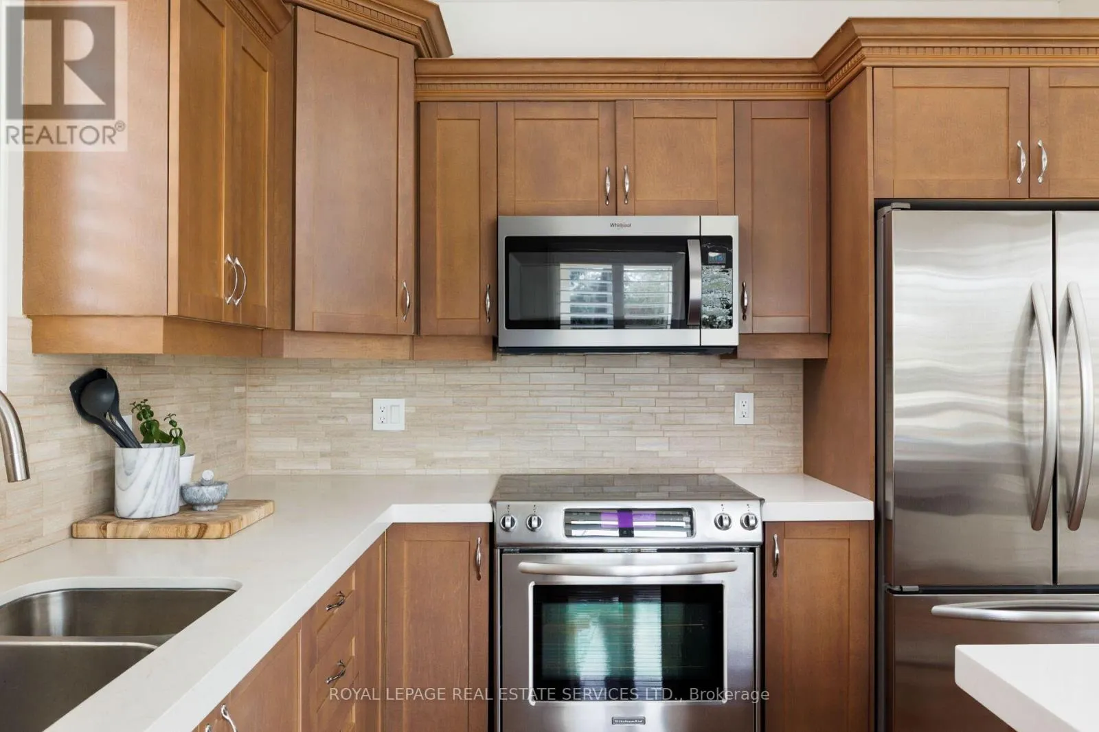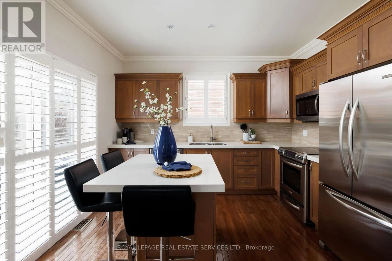 Cross Streets: Pinecliff & Gulledge. ** Directions: WestOak Trails- Oakhaven-Pinecliff -Gulledge. Stunning, turnkey home in sought-after West Oak Trails, backing directly onto Bloomfield Park with no rear neighbours-an exceptional setting offering privacy, tranquil views, and direct gate access to green space and trails. Located in a top-rated school district and minutes to Oakville Trafalgar Memorial Hospital, Glen Abbey Community Centre, The Abbey Plaza, Bronte GO Station and highways (QEW/407), this home blends nature with urban convenience. Exceptional curb appeal features beautiful, manicured gardens, an exposed aggregate double driveway leading to the double garage with inside entry, while soffit lighting enhances the upgraded brick exterior. The private backyard retreat boasts a spacious exposed-aggregate patio-ideal for entertaining or relaxing in a serene, park-like setting. Offering well-designed above-grade living space plus a finished basement, this home showcases hardwood floors, crown mouldings, California shutters, 9' ceilings, pot lights, and an upgraded staircase with metal pickets.. The bright family room, with elegant crown mouldings, a gas fireplace, and a wall of windows, overlooks the park. A formal dining room is perfect for hosting, and the kitchen features maple cabinetry with valance lighting, quartz counters, stainless steel appliances, a centre island with a breakfast bar, and a walkout to the yard. Upstairs offers 3 bedrooms, plus a versatile den (optional 4th bedroom), and 2 renovated baths, including a luxurious primary retreat with a spa-inspired 5-piece ensuite, heated floor tiles, soaker tub, and glass shower with body jets. The finished basement adds a large rec room, 4th bedroom (no closet) with fireplace, and 3-piece bath-ideal for families or multi-generational living. Updates: roof (2015), furnace & HWT (2016), A/C (2021). (id:27476)