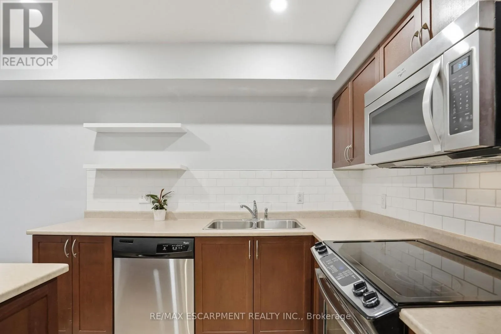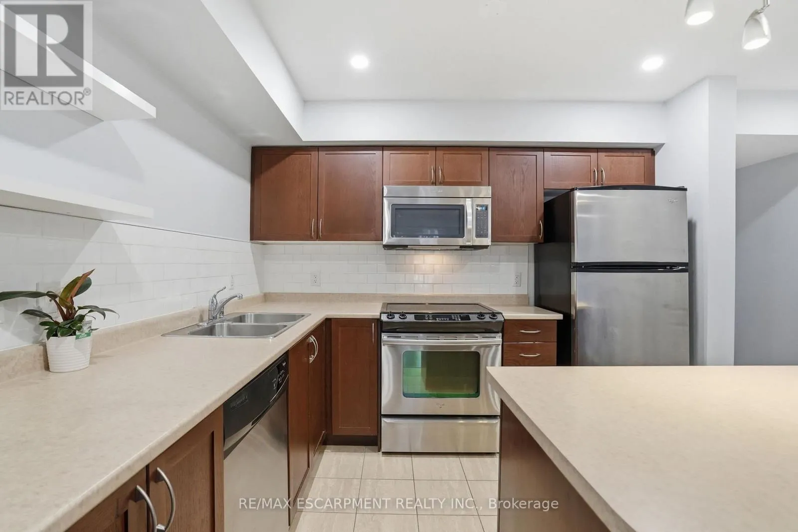 Cross Streets: DUNDAS STREET E. ** Directions: DUNDAS ST E TO POST RD. Welcome to the sought after "Waterlillies" community in North Oakville, where modern living meets exceptional convenience in the heart of River Oaks. This beautifully maintained main floor stacked condo townhouse offers a perfect blend of style, functionality and low maintenance living. Featuring 2 spacious bedrooms, and 1.5 bathrooms & approximately 855 square feet, this bright end unit home is ideal for those seeking a vibrant, walkable lifestyle. The open concept layout features laminate flooring, pot lights, stainless appliances, and a movable functional island. Both bedrooms feature carpeting, and the principal bedroom offers a 2-piece washroom as well as a walk-in closet. Additional highlights include one underground parking space and a storage locker. Location of this home is perfect, steps from Oak Park Blvd, you will enjoy easy access to grocery, shopping, cafes, restaurants, fitness, and your everyday essentials. Surrounded by parks, schools and trails, and highways, and transit this property is urban convenience in a family friendly community. RSA. (id:27476)