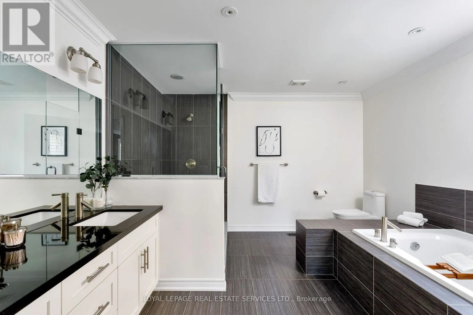 Cross Streets: Liptay & Colonel William Pkwy. ** Directions: Colonel William Pkwy- Liptay Ave. Discover luxury living in this Branthaven executive home in Oakvilles prestigious Bronte Creek neighbourhood, just steps from trails, Colonel William Woods Park, & Bronte Creek Provincial Park ideal for hiking, biking, & family adventures. This exceptional Bronte Creek real estate gem sits on a re-landscaped lot with a stone & stucco facade, stone tile walkways, manicured gardens, soffit lighting, & a private backyard oasis featuring a saltwater pool, sheer descent waterfall, & extensive stone patio for outdoor entertaining. Inside, exceptional upgraded living space includes 4+1 bedrooms, 4.5 bathrooms, & a professionally finished basement (2020) with a recreation room, wet bar, glass-enclosed gym, a fifth bedroom, & a modern 3-piece bath. Elegant finishes, wide-plank hardwood floors, crown mouldings, designer tiles, custom cabinetry, custom blinds, California shutters, & stone countertops are complemented by 9-foot ceilings & expansive windows. The main level offers formal living & dining rooms, a custom kitchen with premium appliances, a dramatic two-storey family room with fireplace, a private office, a dream laundry room & chic powder room. Upstairs features 4 spacious bedrooms & 3 spa-like bathrooms, including a primary retreat with a 5-piece ensuite boasting a lavish soaker tub & separate glass shower. Recent upgrades include 2 updated upstairs bathrooms, new second level laminate floors & baseboards, 100 new pot lights, updated fire stones in the electric fireplace, integrated wall vents, designer feature wall in the dining room, fresh paint, new door hardware, & a Tesla charger added to the garage. Located minutes from top-rated schools, shopping, restaurants, Oakville Trafalgar Hospital, & major highways, this showpiece family home in Bronte Creek offers luxurious living in a prime Oakville location. (id:27476)