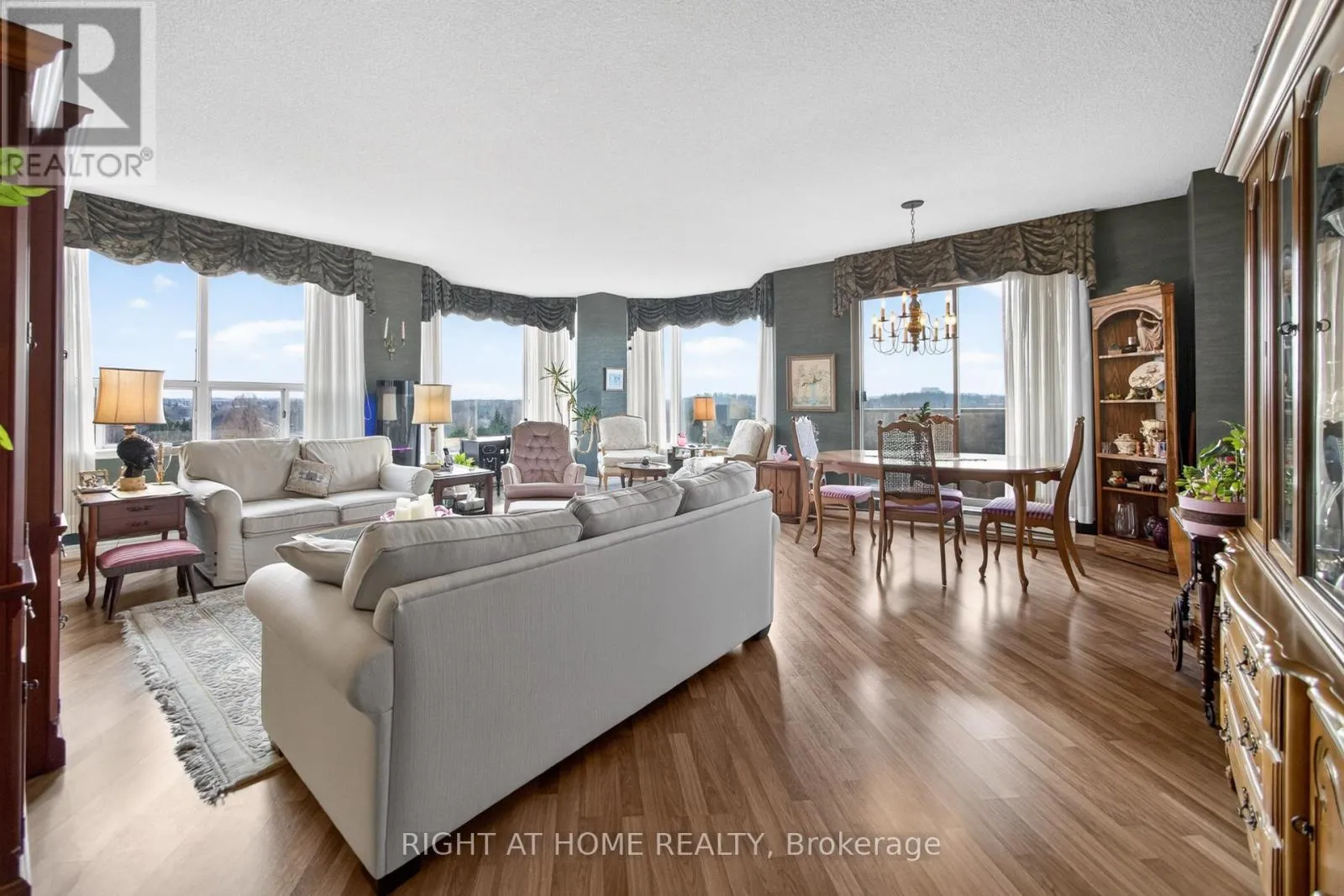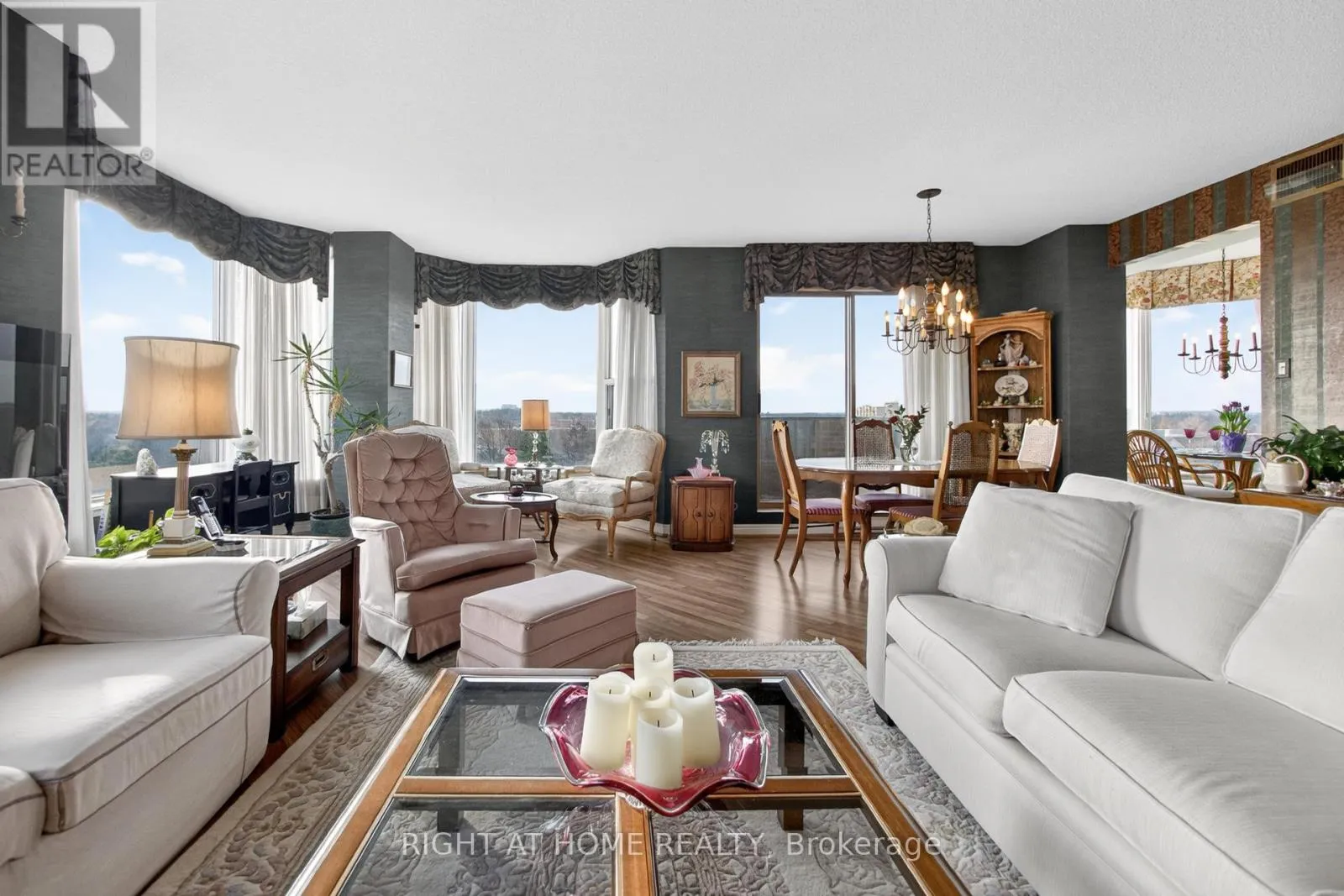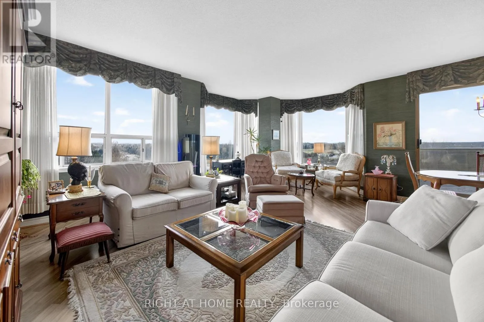 Cross Streets: Pilgrims Way. ** Directions: Nottinghill Gate/Pilgrims Way. Absolutely beautiful upscale living in this spacious 1,438 sq. ft. condo nestled in the sought-after Arboretum in Glen Abbey. This beautifully designed two-bedroom, two-bathroom corner suite features an open-concept layout that blends comfort and style. The bright living and dining area features bay windows with panoramic views! Laminate hardwood floors, newer broadloom in primary bedroom and a walk-out to a balcony. The updated kitchen boasts a custom backsplash, pot lights, under cabinet lights, pantry and cabinets feature pull out drawers, premium stainless steel appliances, and built-in dishwasher. Breakfast area with bay windows overlooking the beautifully maintained gardens, it's perfect for morning gatherings. The primary bedroom includes a walk-in closet and a luxurious 4-piece ensuite with extra linen closet, and freestanding shower and bath tub! A second bedroom with a double closet and a full 3-piece main bath complete the space. Enjoy the convenience of 2 underground parking spaces and locker in this beautiful gated complex, which offers extensive amenities such as an indoor pool, hot tub & sauna, party room, fitness area, billiards room, hobby room, tennis courts, and a patio area with BBQs. Additional perks include a lot of visitor parking and guest suites. Located within walking distance to shopping, trails and parks, easy access to major highways and transit, minutes to Bronte GO, and the prestigious Glen Abbey Golf Club. (id:27476)