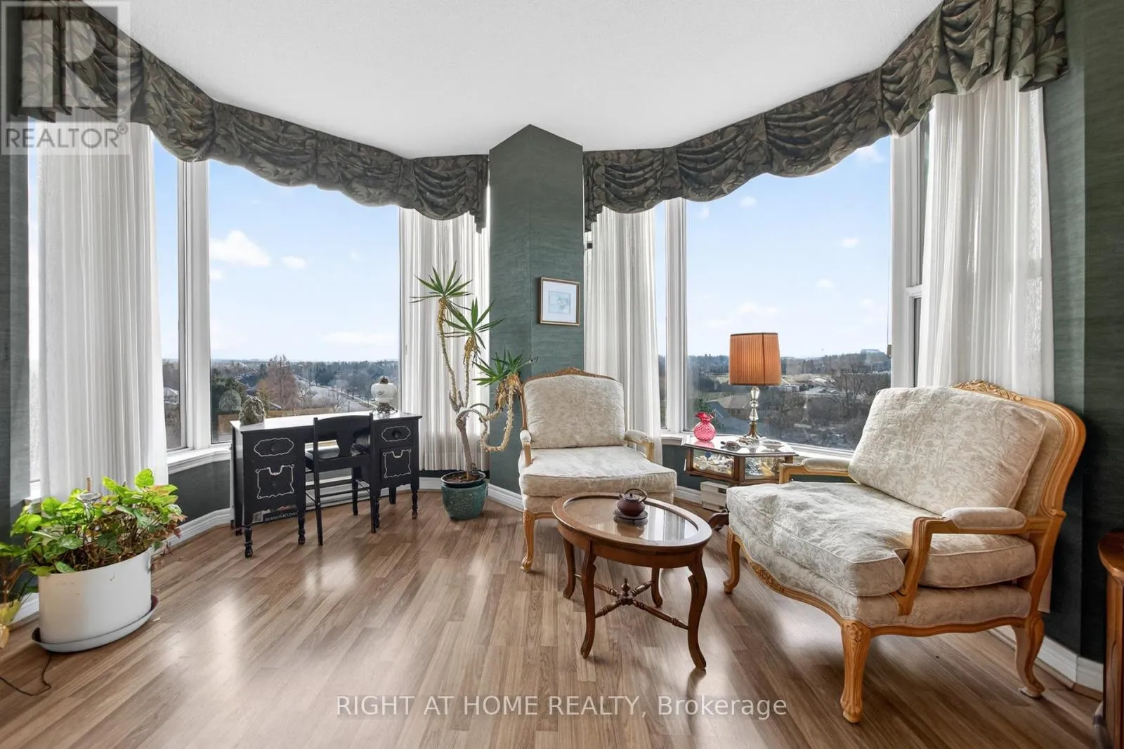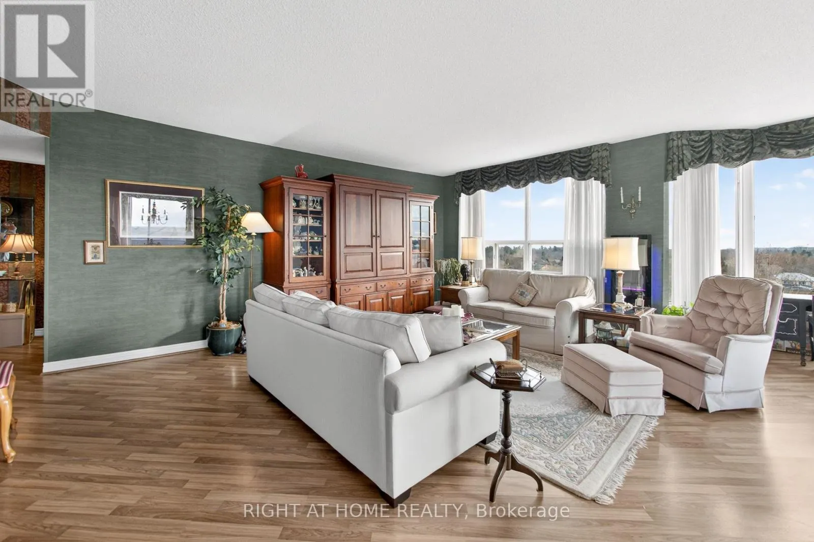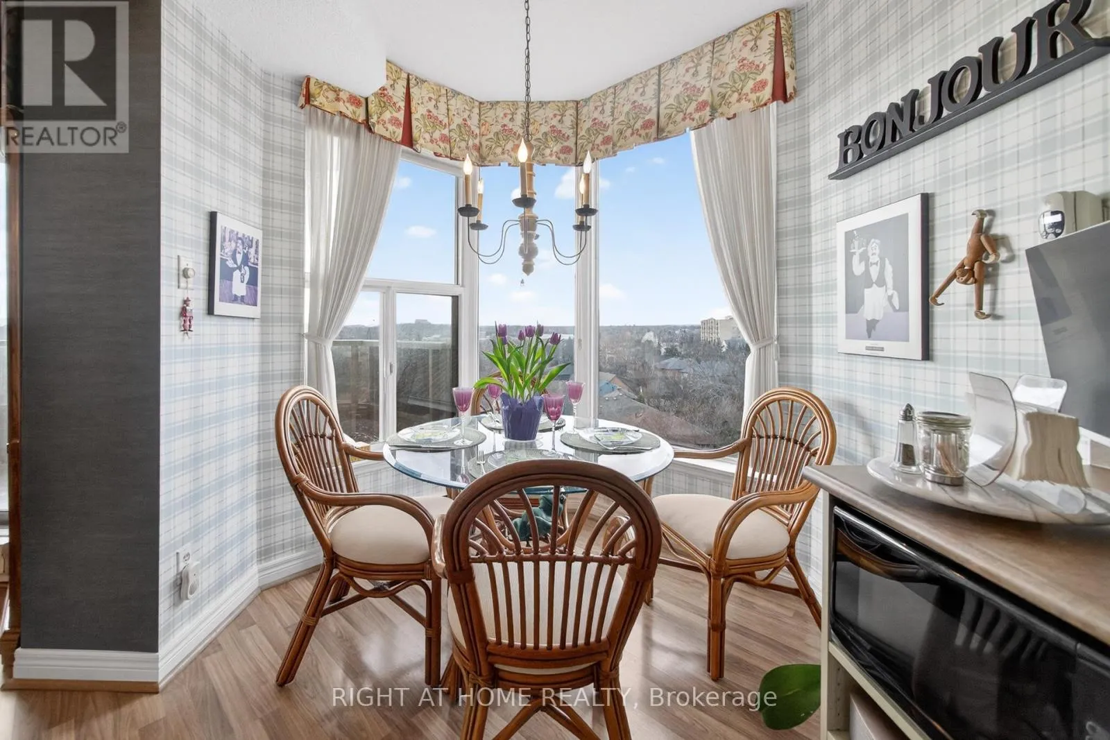 Cross Streets: Pilgrims Way. ** Directions: Nottinghill Gate/Pilgrims Way. Absolutely beautiful upscale living in this spacious 1,438 sq. ft. condo nestled in the sought-after Arboretum in Glen Abbey. This beautifully designed two-bedroom, two-bathroom corner suite features an open-concept layout that blends comfort and style. The bright living and dining area features bay windows with panoramic views! Laminate hardwood floors, newer broadloom in primary bedroom and a walk-out to a balcony. The updated kitchen boasts a custom backsplash, pot lights, under cabinet lights, pantry and cabinets feature pull out drawers, premium stainless steel appliances, and built-in dishwasher. Breakfast area with bay windows overlooking the beautifully maintained gardens, it's perfect for morning gatherings. The primary bedroom includes a walk-in closet and a luxurious 4-piece ensuite with extra linen closet, and freestanding shower and bath tub! A second bedroom with a double closet and a full 3-piece main bath complete the space. Enjoy the convenience of 2 underground parking spaces and locker in this beautiful gated complex, which offers extensive amenities such as an indoor pool, hot tub & sauna, party room, fitness area, billiards room, hobby room, tennis courts, and a patio area with BBQs. Additional perks include a lot of visitor parking and guest suites. Located within walking distance to shopping, trails and parks, easy access to major highways and transit, minutes to Bronte GO, and the prestigious Glen Abbey Golf Club. (id:27476)