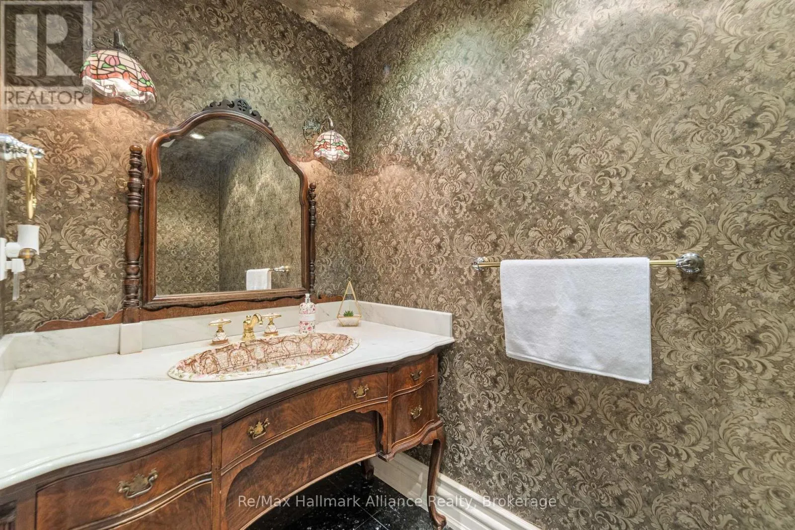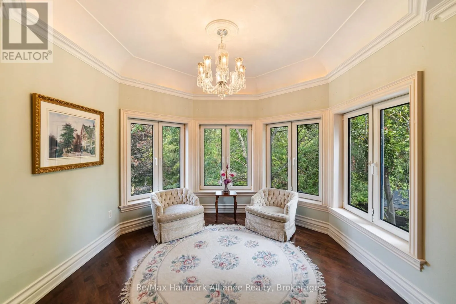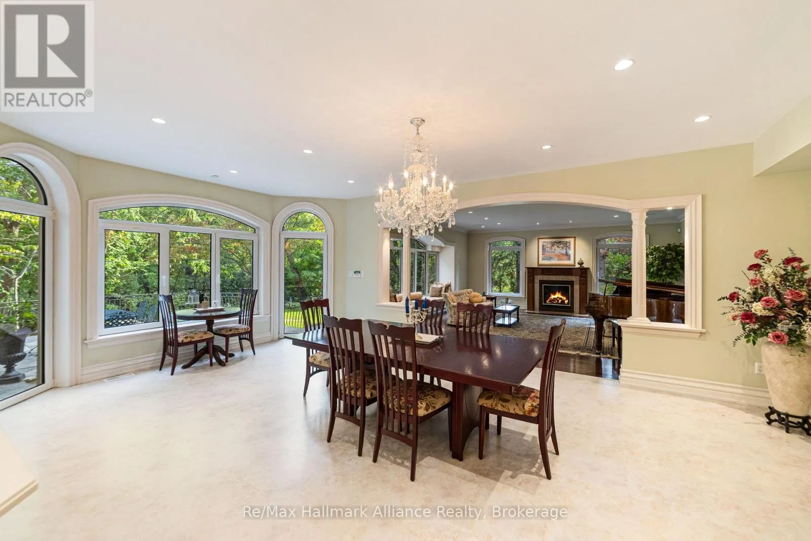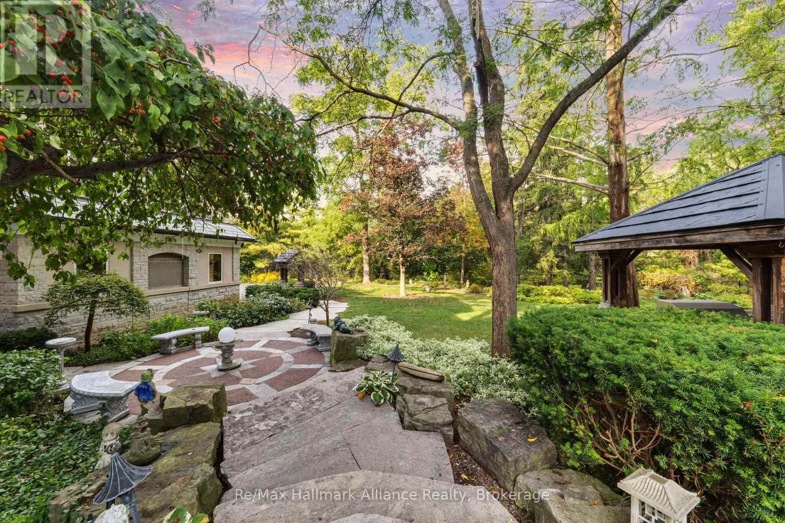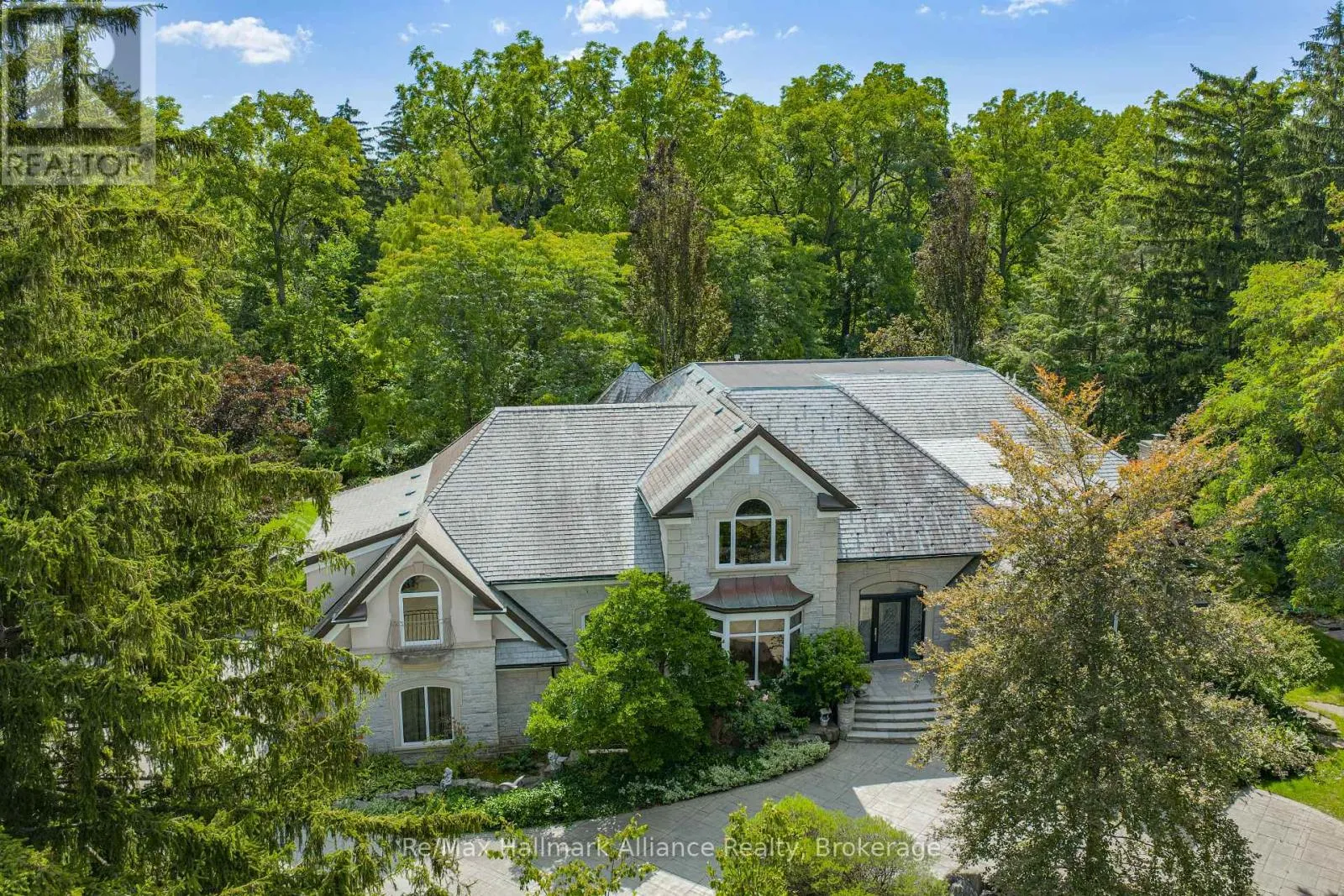 Cross Streets: Cornwall Rd & Chartwell Rd. ** Directions: Cornwall Rd South on Chartwell Rd to Linbrook Rd. A Rare Executive gated 1.39-acre ravine estate in Morrison sought after community timeless elegance meets modern luxury this residence provides unmatched privacy, lush landscaping, & refined outdoor living. Through the custom 8-foot beveled glass entry doors, the soaring foyer sets the tone with emerald pearl granite floors, a handcrafted Austrian crystal chandelier on motorized lift, & a sweeping French Provincial staircase with wool Victorian Tapestry runner. The main floor boasts elegant formal living & dining rooms with hand-carved marble fireplaces, cathedral ceilings, plaster mouldings, & Palladian windows framing ravine views. A richly appointed library & office feature maple plank flooring, crown moulding, & custom draperies. The family room offers panoramic vistas & a mahogany fireplace, while the chefs Hawthorne kitchen impresses with cherry cabinetry, granite surfaces, premium appliances, & a walkout to the terrace. Upstairs, the luxurious primary suite includes a two-way fireplace, custom lighting, & a walk-in closet with attic access. The spa-inspired ensuite offers heated floors, Jacuzzi air tub, granite shower, & Strass crystal lighting. Three additional bedrooms each enjoy private ensuites, cathedral ceilings, & custom finishes. A versatile great room with terrace access & a full laundry suite complete this level. The lower level is an entertainers dream with a billiards & games room, full walnut bar, gym, media lounge, & spa retreat with sauna & steam shower. Radiant heated floors, & abundant storage enhance the space. Outdoors, the property is equally breathtaking with two stone gazebos joined by a large pergola, extensive walking paths, & a serene koi pond and a Japanese-inspired garden creating a private resort-like escape. With 4+1 bedrooms, 7 bathrooms, elevator access to all levels, multiple terraces, & a gated circular driveway, this estate offers over 10,000 sq. ft. of refined living in one of Oakville's most coveted neighbourhoods. (id:27476)