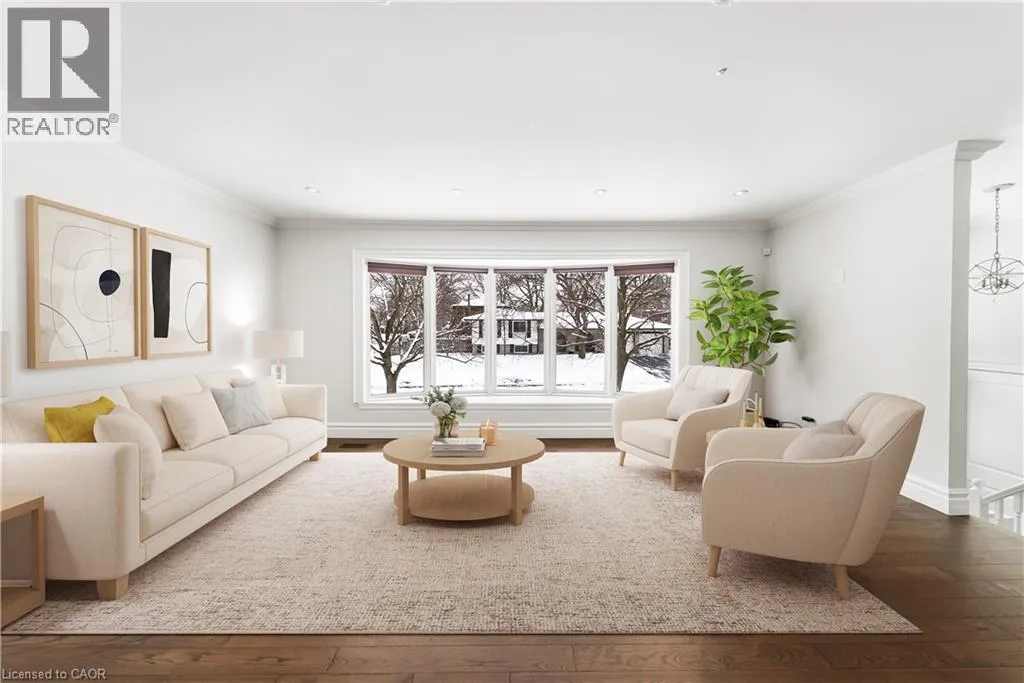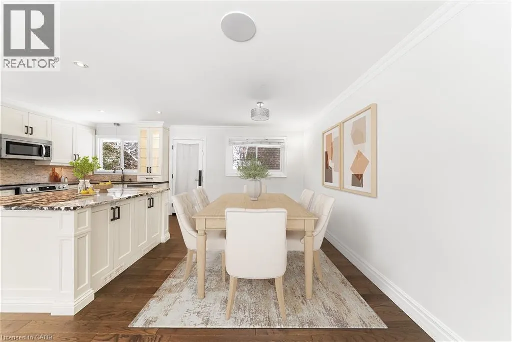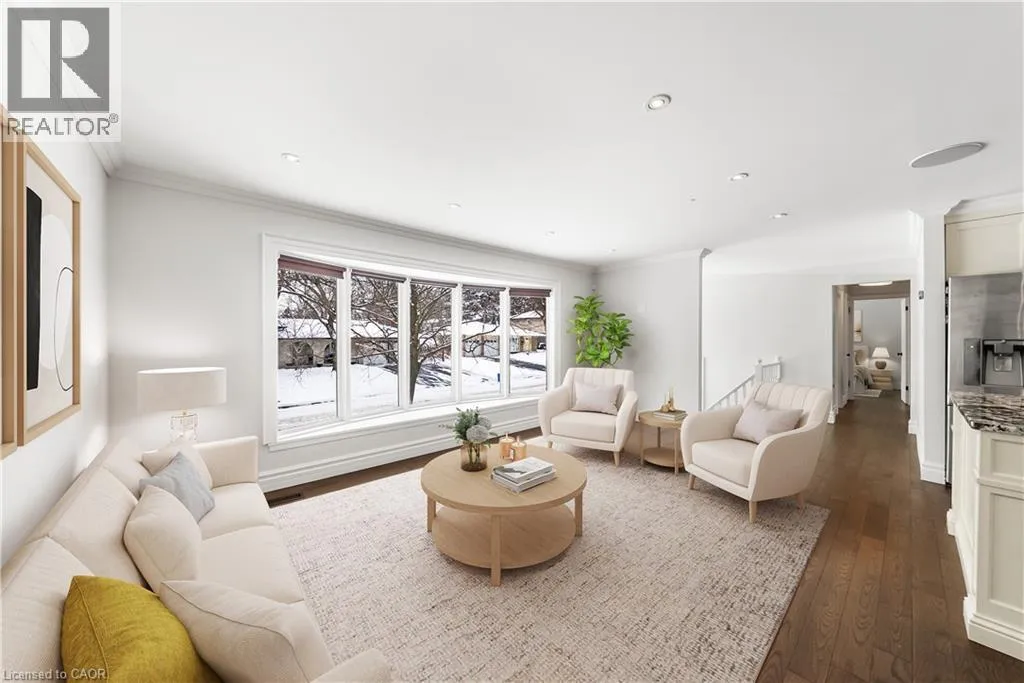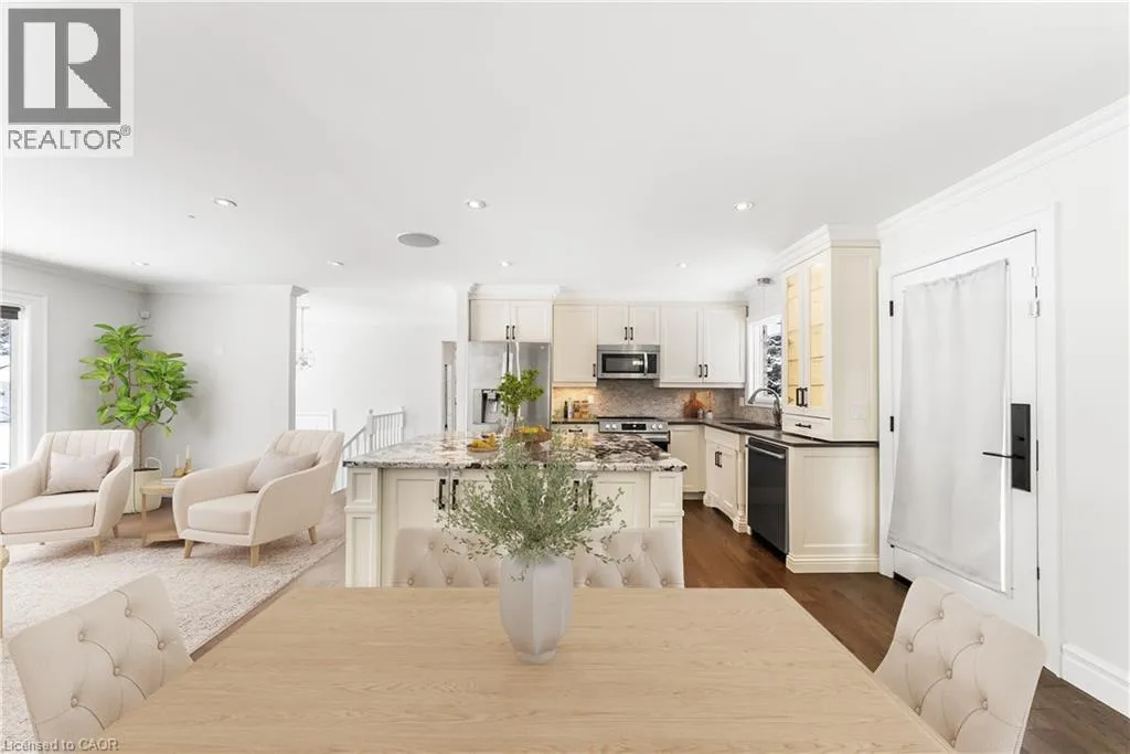 Constance Drive/Canterbury Crescent Located on a quiet, tree-lined crescent in highly sought-after South East Oakville, this beautifully renovated 3+1 bedroom raised bungalow offers bright, open-concept living . The main floor features a spacious living and dining area, a gourmet kitchen with stainless steel appliances and a large centre island, hardwood floors, and oversized windows. Walk out to a private, fully fenced backyard with a deck and inground pool. The main level offers three well-appointed bedrooms and a stylishly updated full bathroom. The finished lower level includes a large family/rec room with fireplace, an additional bedroom or home office, a renovated full bathroom, inside access from the garage, plus laundry and ample storage. Located in an excellent school catchment, with Maple Grove, E.J. James, and St. Vincent elementary schools and Oakville Trafalgar High School all nearby and within walking distance, plus close to parks, shopping, and transit. Some photos are virtually staged. (id:27476)