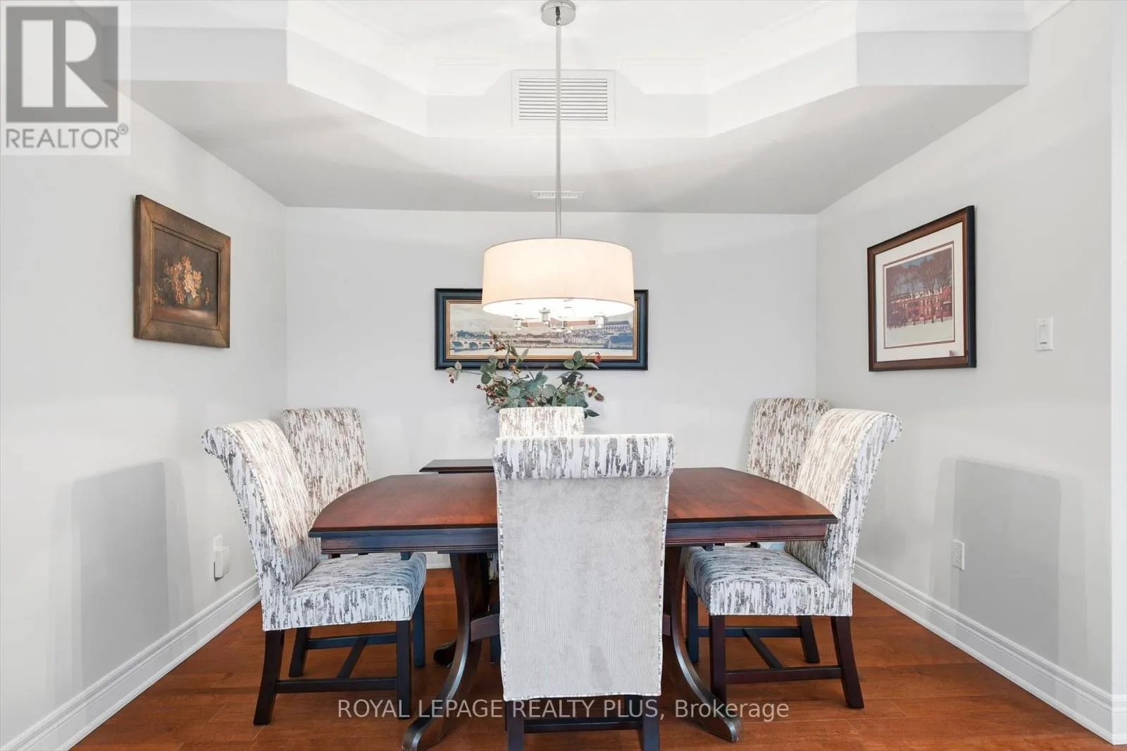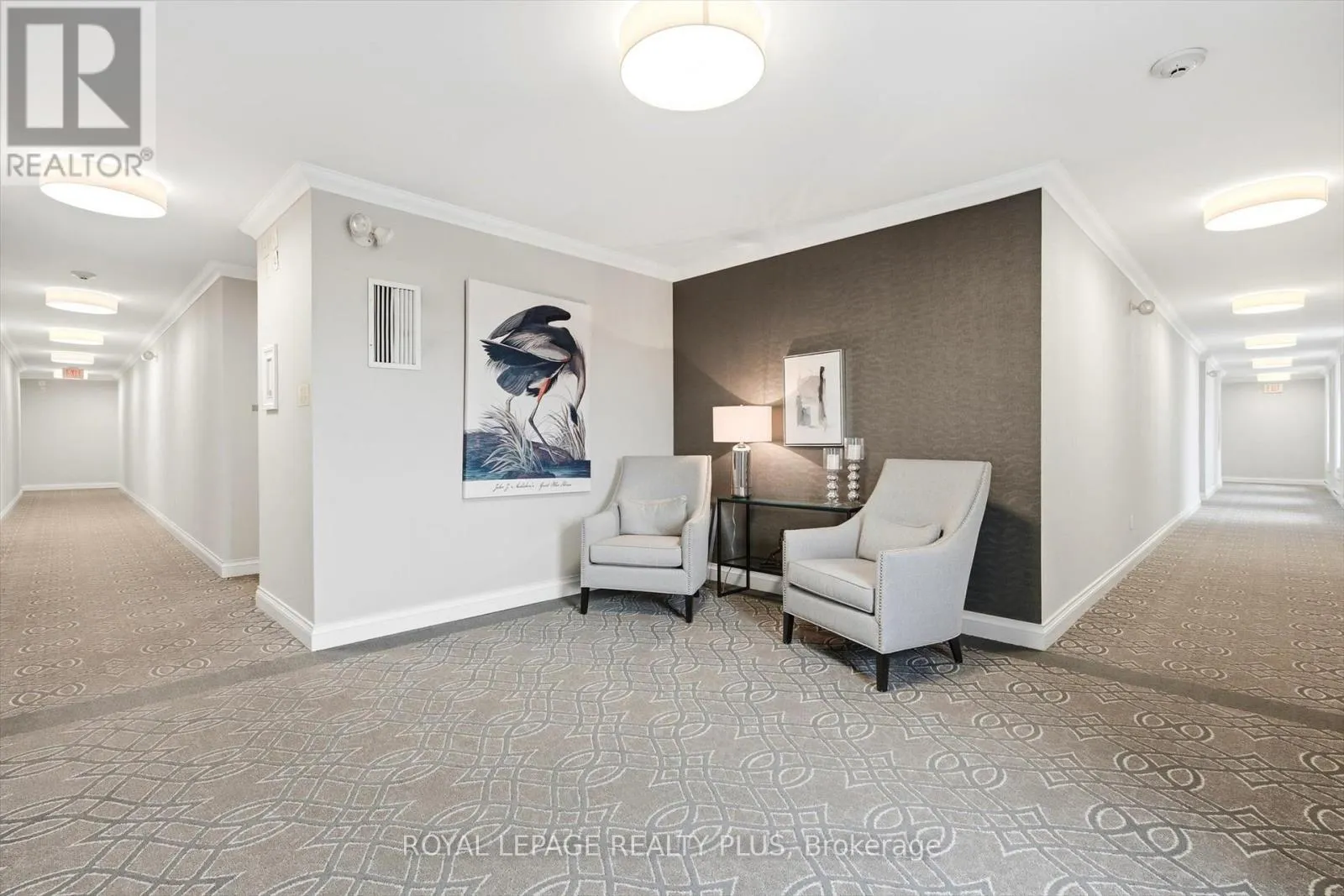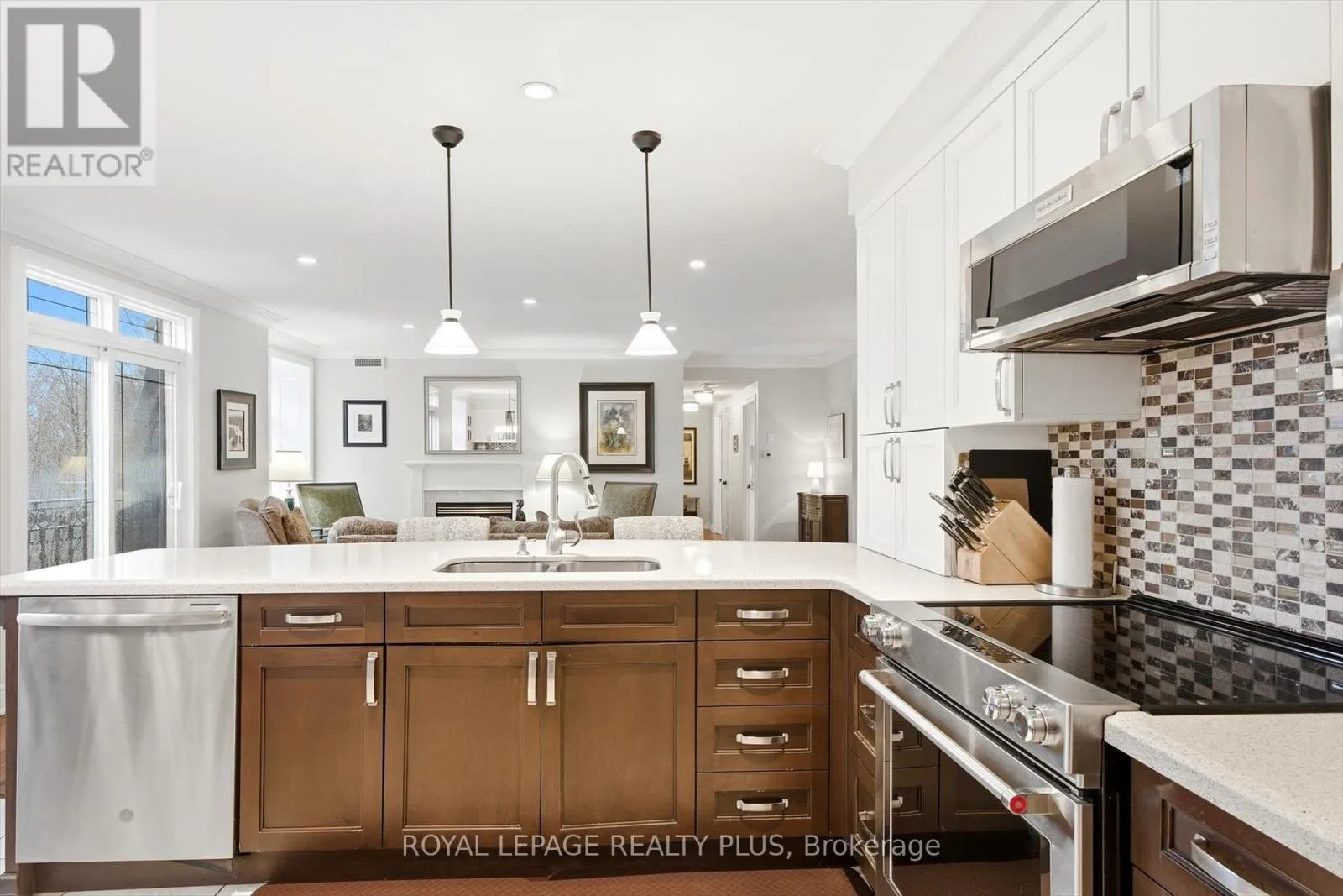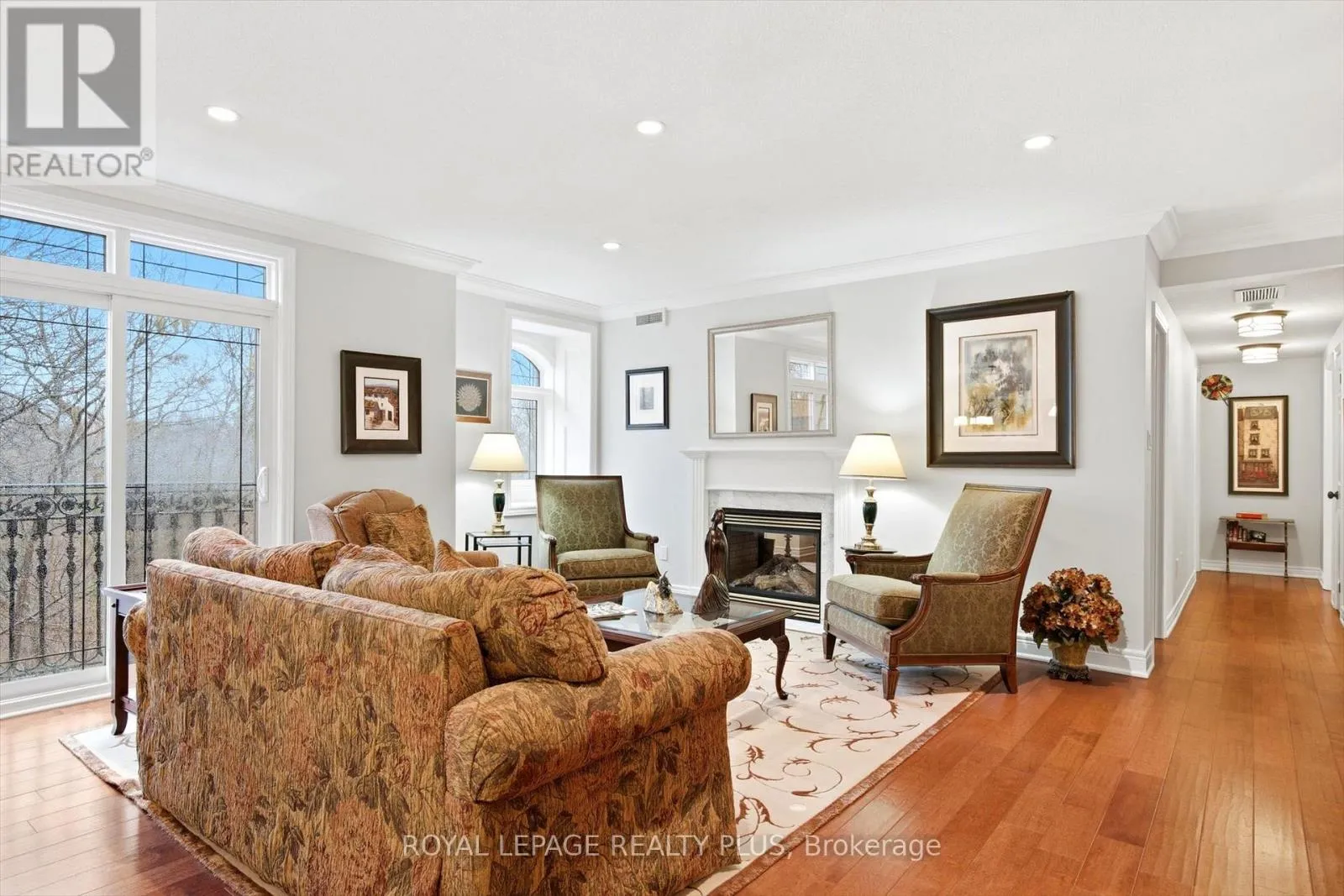 Trafalgar / Upper Middle Rd E An exceptional opportunity to own a luxurious one-floor condominium in the prestigious North Morrison House, an exclusive low-rise boutique building with only 15 units. Built by the renowned Dawn Victoria Homes, this three-story residence boasts impressive curb appeal and is nestled within a serene, protected forest and valley, offering unparalleled privacy and tranquility. This rare and highly sought-after unit spans 1,920 square feet and features a thoughtfully designed open-concept layout ideal for both family living and entertaining. The suite includes two bedrooms, a versatile den (easily convertible to a third bedroom), and high-end finishes throughout. Key features include: Elegant interiors: coffered ceilings, 9-foot ceilings, and 6-inch baseboards in the living/dining room and front hall. Luxurious amenities: A double-sided gas fireplace (shared between the living room and den), extensive pot lighting, and crown molding in the living and dining areas. Gourmet kitchen: Equipped with stainless steel appliances and designed for the discerning chef. Quality craftsmanship: Hardwood flooring in the living, dining, bedroom, and den areas, along with custom closet organizers in both bedrooms. Spacious bathrooms: Designed with both functionality and luxury in mind. The pride of ownership is evident in every detail, making this move-in-ready condominium a true gem. Don't miss this rare opportunity to experience refined living in one of the most exclusive settings. (id:27476)