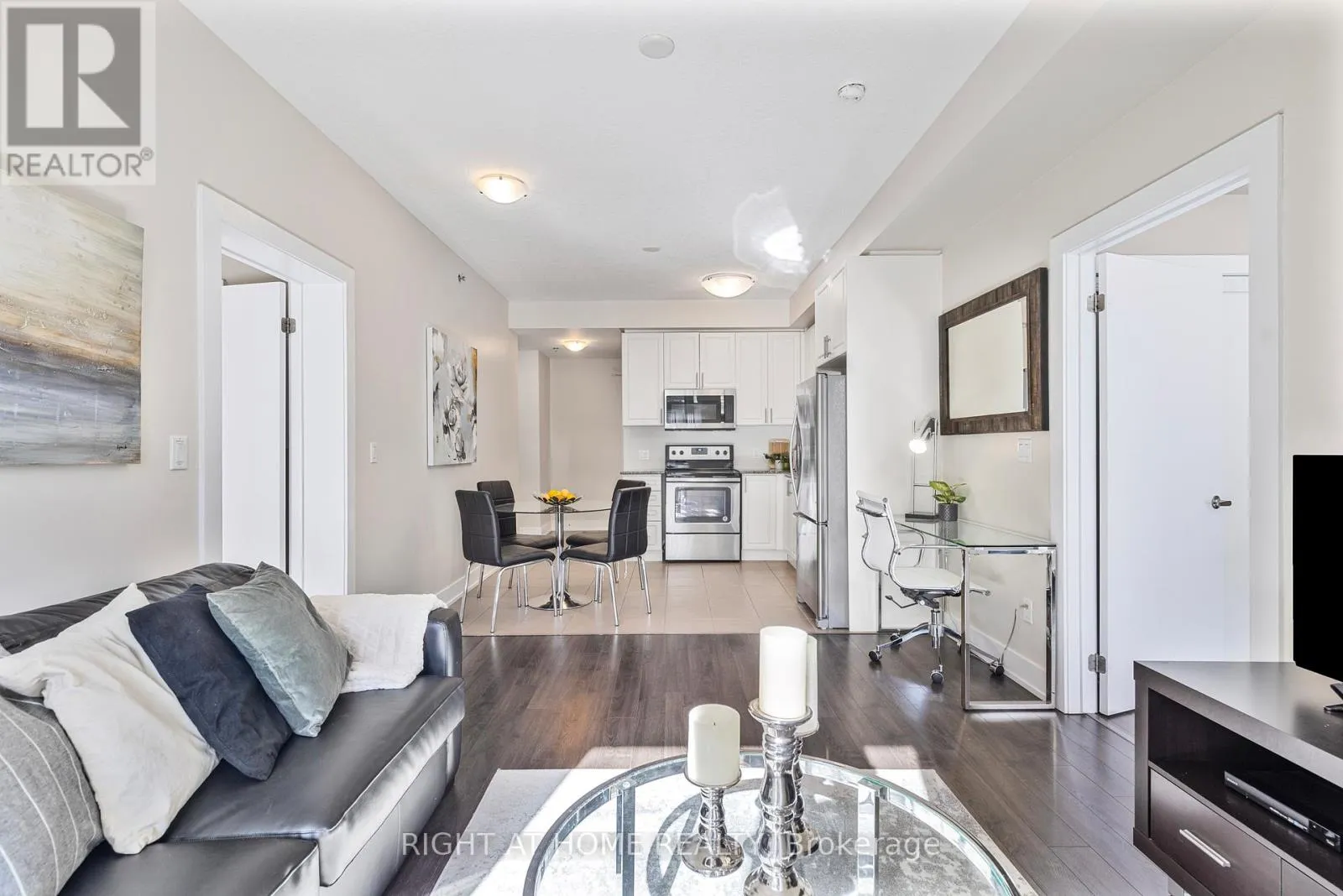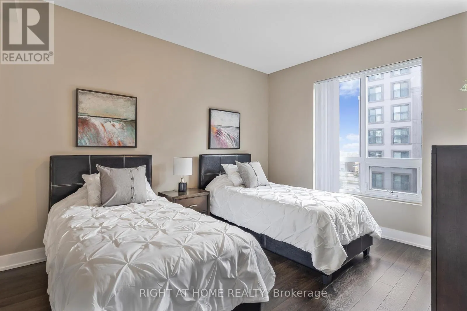 Old Bronte & Dundas This is a must see! Finally, a spacious, livable condo that actually feels like home. Welcome to this 956 sq. ft. (+50 sq. ft. balcony) stylish 2 bed, 2 bath corner unit at MINT Condos. Stylish open concept kitchen with dining area, and bright living room with walk-out to a west-facing covered balcony, overlooking the quiet interior courtyard - sunsets included. Work-from-home? You've got a smart office nook. Need space? Both bedrooms fit king-sized beds, PLUS have space for big dressers, a desk, or a play area! The primary retreat features a walk-in closet, cozy broadloom (2024), and en suite with an upgraded glass walk-in shower. Timeless granite countertops throughout! Separate laundry closet with storage space. Perks? Oh yes. Gym, party room, rooftop deck, on-site retail. One owned parking spot right next to the elevator (VIP status), plus a private locker lined with tarp for discretion. Energy efficient geothermal heating, water included, and no HVAC rentals. And the location? Minutes to Bronte GO, Bronte Park, Oakville Hospital, QEW, 407, and steps to parks, cafes, restaurants, clinics, and shops. Non-smoking building with lots of visitor parking. (id:27476)