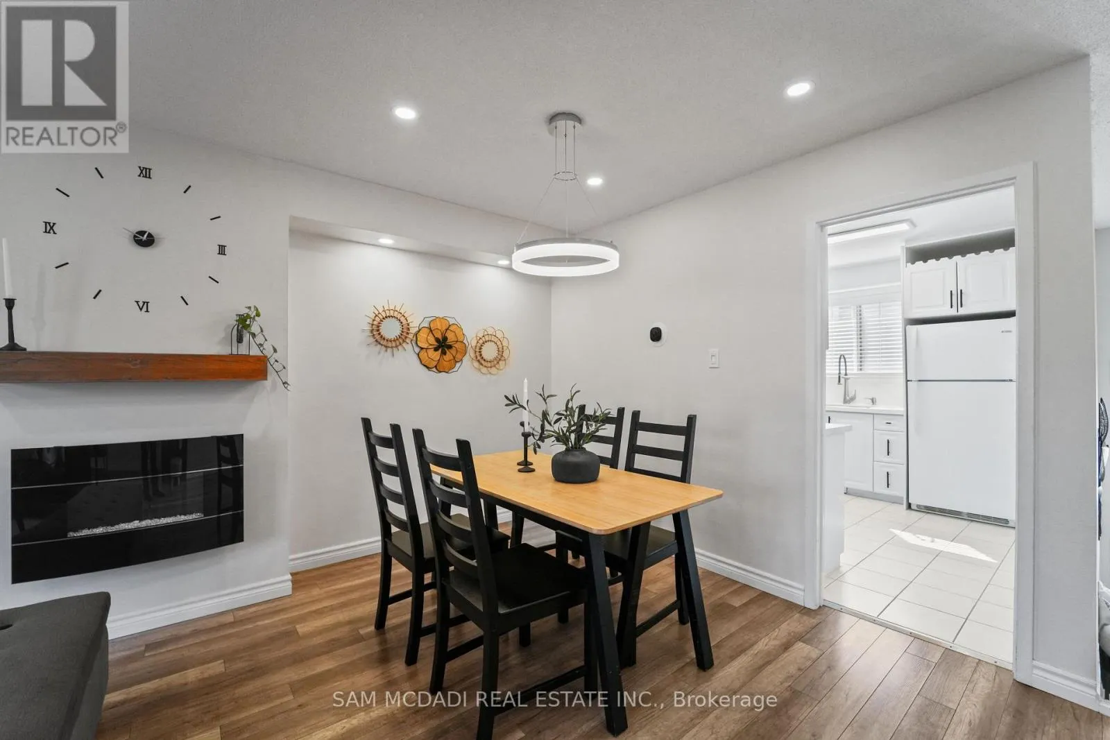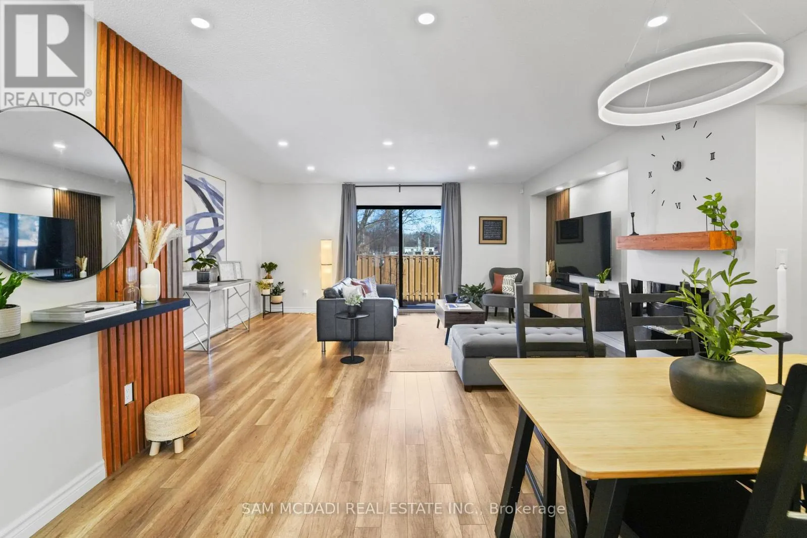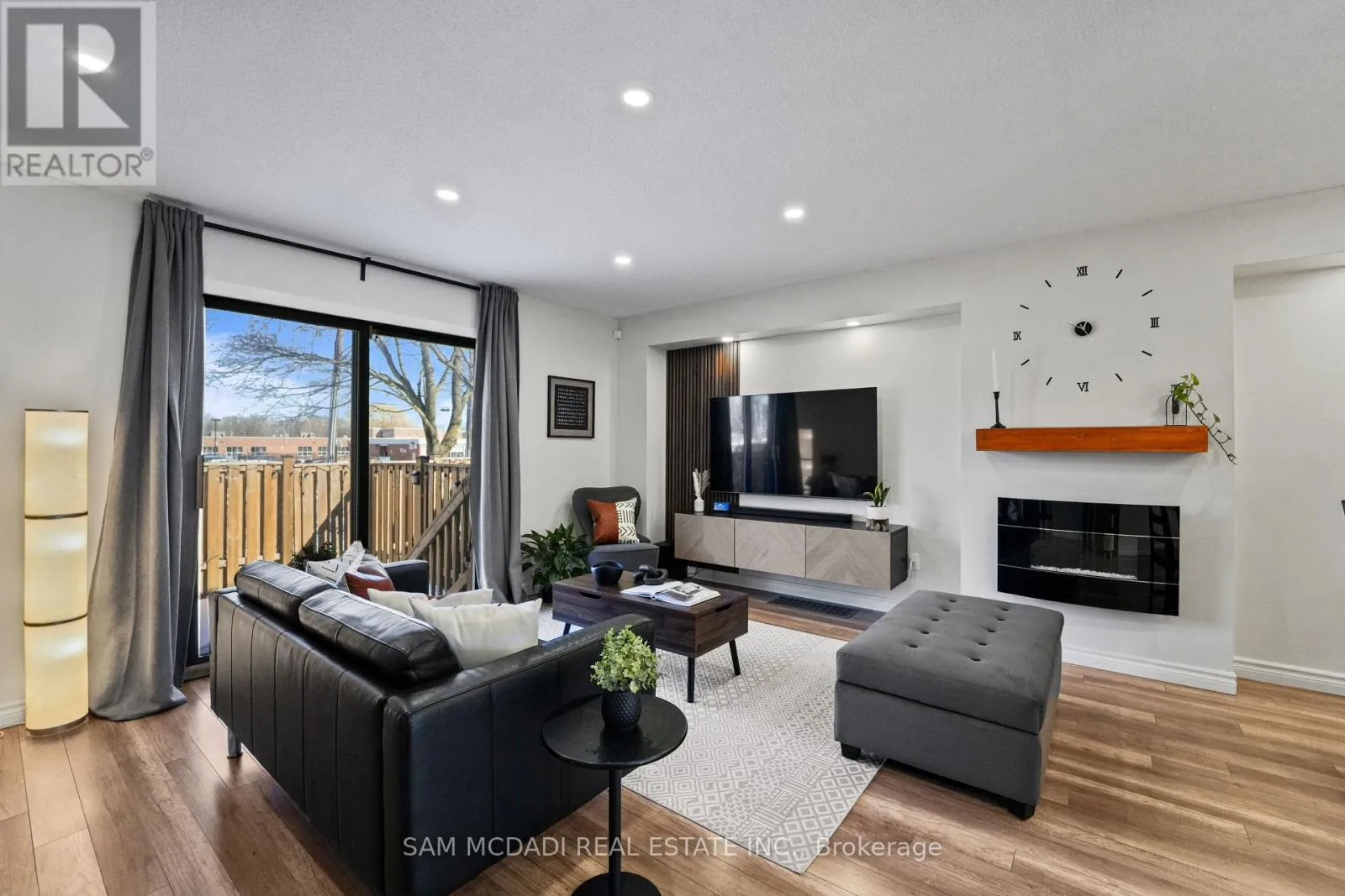Cross Streets: Upper Middle Rd E & Sixth Line. ** Directions: Follow Upper Middle Rd E/Halton Regional Rd 38 & Turn left onto Sixth Line. Welcome home! This beautifully updated, two-story condo townhouse nestled in Oakville's desirable College Park community offers nearly 1,200 square feet above grade with a bright, open-concept layout for owners to enjoy. Make your way inside and be mesmerized by the combined living and dining areas elevated with LED pot lights, luxury vinyl hardwood floors, and seamless entry to the backyard stone patio completed in 2025 - a perfect space for al-fresco dining with loved ones. The kitchen is a cook's dream with quartz countertops and ample upper and lower cabinetry space for all of your culinary essentials. Ascend to where you'll find 3 generously sized bedrooms, including the primary retreat with mirrored closets. The redesigned 4-pc bathroom features modern touches including sleek quartz countertops, a built-in linen closet, and a combined shower/tub with rainfall shower. The completed basement adds valuable space to this home with a convenient powder room and a dedicated laundry area. Immaculately kept and thoughtfully updated throughout, featuring a new furnace installed in 2021, a heat pump installed in 2023, and attic insulation updated in 2023. Superb location, minutes from great schools, grocery stores, Oakville Public Library, Oakville Place mall, Sheridan college, and major highways like hwy 403 and QEW. A move-in ready must see for young families, first-time buyers, or investors alike! (id:27476)