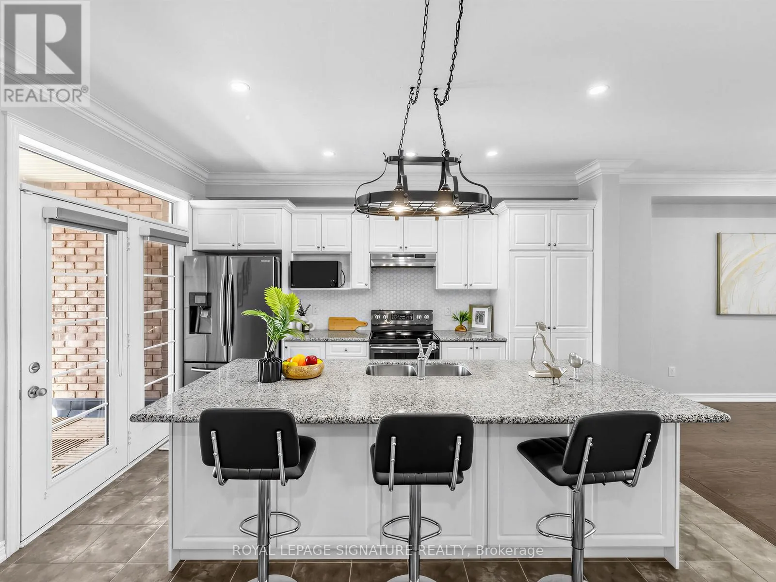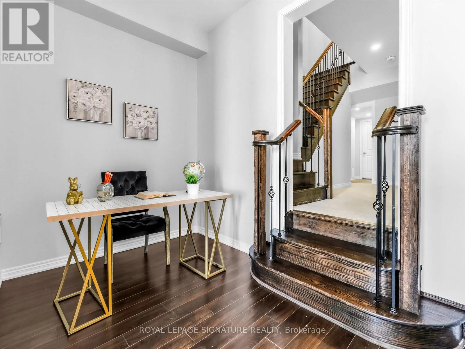 Neyagawa/Settlers Welcome To This Beautifully Maintained 3+1 Bedroom, 4-Bathroom, 2-Storey Freehold Townhome In The Highly Desirable Woodland Trails Community Of North Oakville - A Perfect Opportunity For First-Time Buyers And Growing Families. Offering Approximately 2,700 Sq Ft Of Bright And Functional Living Space, This Home Features An Inviting Open-Concept Layout With Peaceful Green Space Views, Creating A Warm And Welcoming Atmosphere For Everyday Living And Entertaining. The Spacious Upgraded Kitchen Is Truly The Heart Of The Home, Offering Abundant Cabinetry, Generous Counter Space, And A Grand Breakfast Bar With Storage On Both Sides - Ideal For Busy Mornings, Casual Dining, Or Extra Organization. A Walk-Out To The Covered Terrace Extends Your Living Space Outdoors, Perfect For Summer Gatherings And Family Time. Hardwood Floors, A Cozy Gas Fireplace, Pot Lights, And A Solid Wood Staircase With Wrought Iron Spindles Add Elegance And Warmth Throughout. The Main Level Family Room Features Very High Ceilings And Is Above Grade, Filling The Space With Natural Light And An Open Feel. This Versatile Area Can Serve As A Fourth Bedroom, Home Office, Or Private Suite, And Presents Excellent Income-Generating Potential - A Valuable Asset For First-Time Buyers Looking To Offset Mortgage Costs. With Ample Storage, An Extra-Deep And Wide Garage, And Proximity To Top-Rated Schools, Parks, And Trails, This Move-In-Ready Home Offers Space To Grow And The Flexibility Today's Families Need. A Wonderful Place To Begin Your Homeownership Journey. (id:27476)