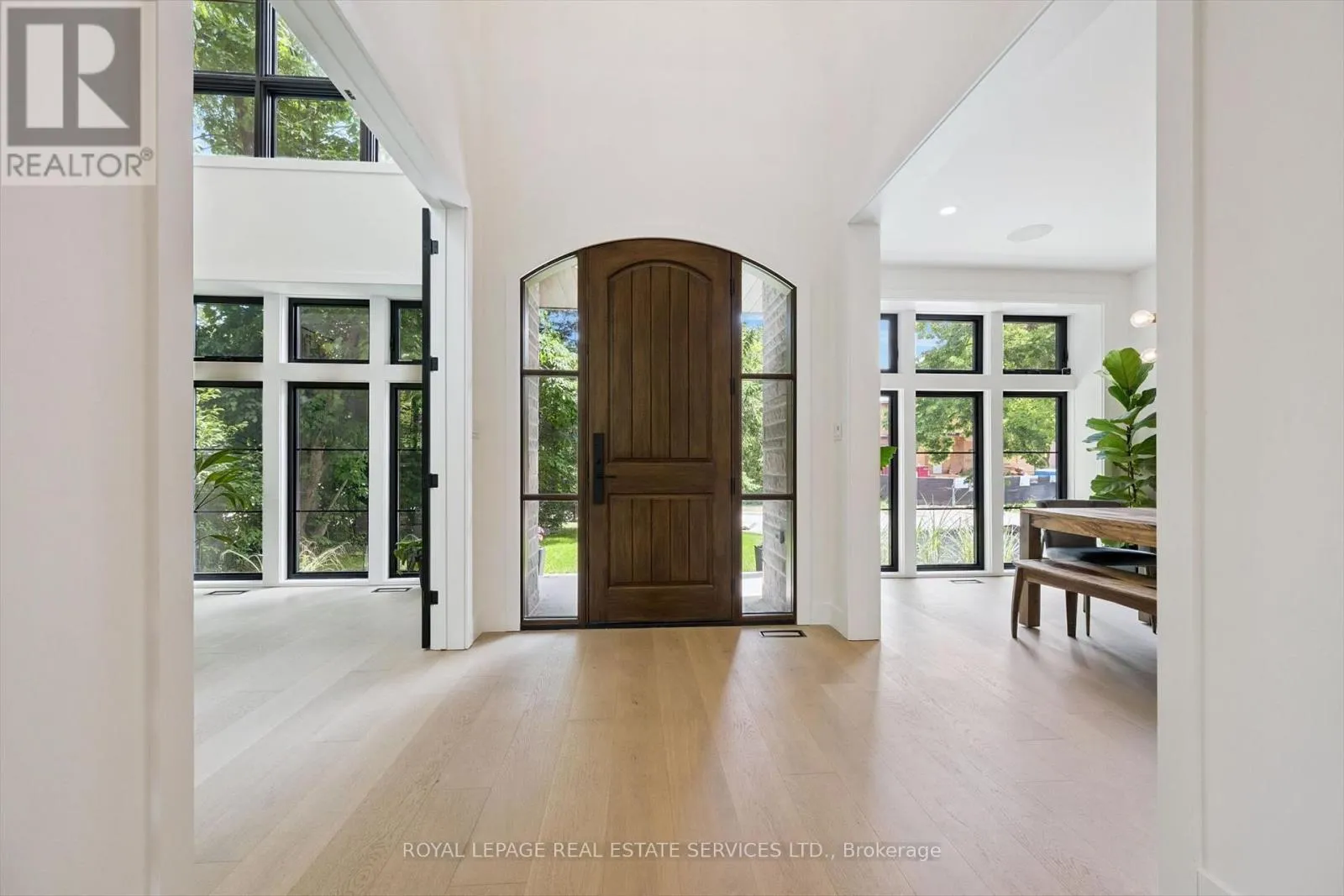 Cross Streets: Fourth Line and Pinegrove Road. ** Directions: Fourth Line / Pinegrove Road / Burton Road / Pineland Avenue. INSPIRED ENTERTAINING! A custom modern residence by acclaimed architect Jeff Cogliati (Bloom Architects), with striking architectural lines, large-scale windows, and a design tailored for everyday living and entertaining. Situated on a sprawling 0.22 acre lot, the home makes a striking first impression with its sculptural stone façade, dramatic sloped roofline, and cedar-clad insulated garage doors with EV charging outlet. Inside, expansive double-height slot windows flood the interior with natural light and frame a tranquil Zen Garden courtyard - the focal point of the main level. A floating mono-beam staircase with solid white oak treads anchors the space, leading to a stunning two-storey living room, dining area, and a chef-inspired kitchen designed for entertaining. Highlights include a large island, Sub-Zero fridge, Wolf six-burner gas cooktop, pot filler, double wall ovens, beverage fridge, and a prep kitchen with second dishwasher, instant hot water faucet, and additional beverage fridge. Custom millwork throughout the kitchen, vanities, and mudroom built-ins ensures exceptional craftsmanship and cohesive design. Accordion glass doors open to a covered terrace with built-in speakers, pot lights, and BBQ gas hookup for seamless indoor-outdoor living. Upstairs, the luxurious primary retreat features dual walk-in closets and a spa-inspired five-piece ensuite with heated floor. A junior primary suite offers heated flooring in the bedroom, dressing area, and ensuite, while two additional bedrooms share a beautifully appointed five-piece bath. Additional features include 7.5" engineered white oak floors, a private two-storey office overlooking the Zen Garden, an oversized mudroom with second powder room and backyard access, 4-zone in-ceiling speakers, and dual high-efficiency HVAC systems for optimal climate control. Ideally located near top-rated schools, shopping, dining, highways, and the GO Train. An architecturally distinct home in sought-after West Oakville (id:27476)