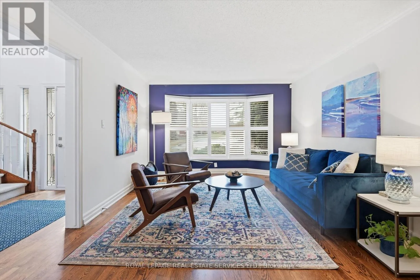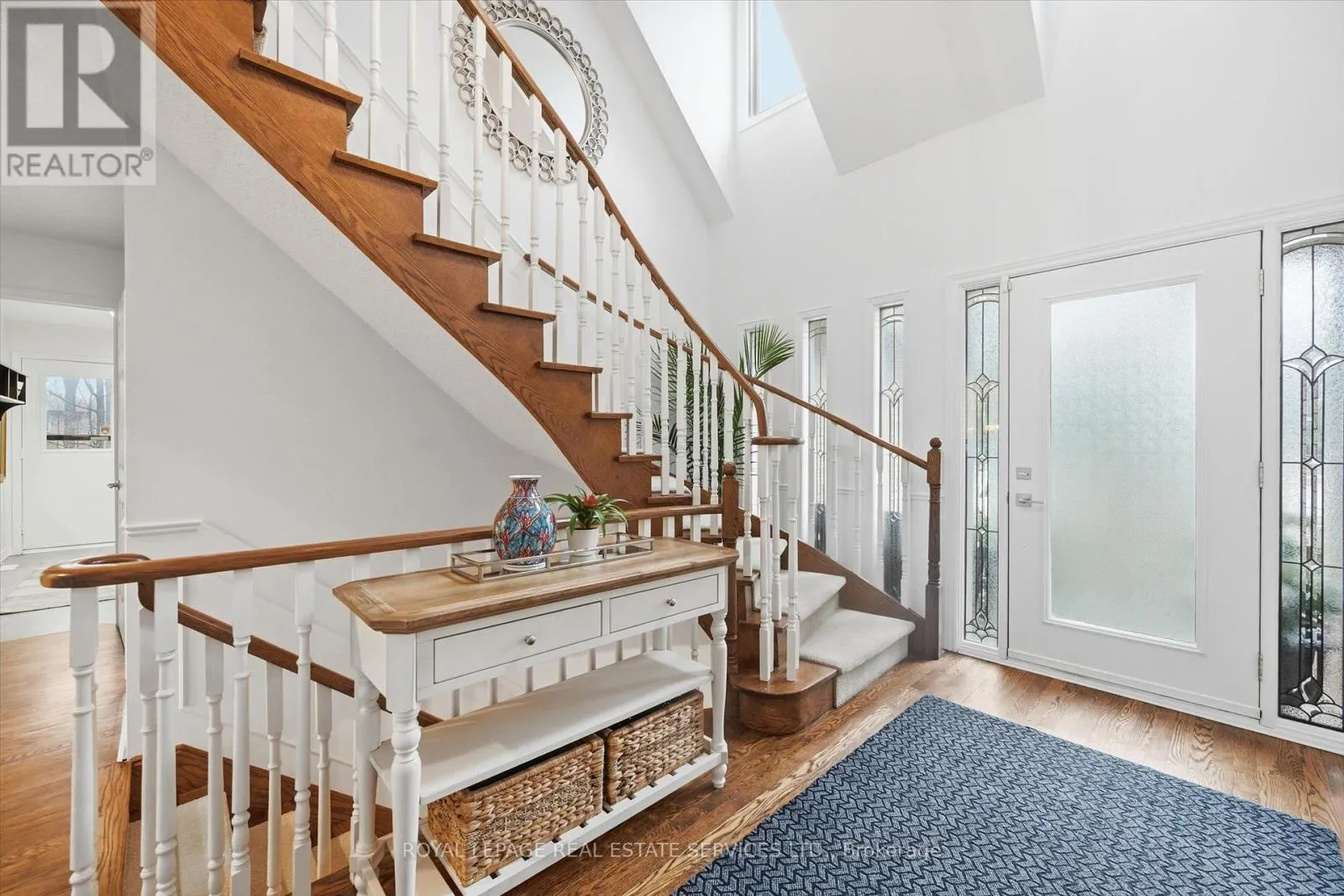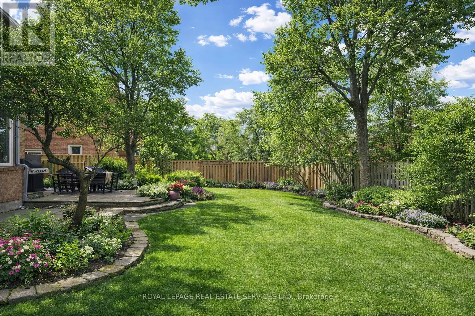 Cross Streets: Upper Middle Road West AND Nottinghill Gate. ** Directions: Upper Middle Road West / Nottinghill Gate / Oakery Woods Place. THE HEART OF GLEN ABBEY! OVERSIZED PIE-SHAPED LOT! QUIET CUL-DE-SAC OF ONLY 15 HOMES! Nestled on a quiet cul-de-sac of just 15 homes, this beautifully updated four-bedroom residence sits on an oversized pie-shaped lot siding onto a walking trail offering an unbeatable setting. Built by Arthur Blakely and designed for modern family living, the main level features rich hardwood flooring, elegant formal living and dining rooms, and a cozy family room with a woodburning fireplace and custom built-in cabinetry. The updated chef's kitchen is both stylish and functional, complete with granite countertops, designer backsplash, built-in appliances, a large pantry, and a bright breakfast area with walkout to the patio. Engineered hardwood flooring flows seamlessly throughout the upper level. The primary bedroom offers a walk-in closet and a spa-inspired five-piece ensuite with double sinks and a skylight. Three additional bedrooms and a well-appointed five-piece bath complete the upper level. The finished basement adds exceptional living space with new laminate flooring, large recreation/games area with custom bar, an office with custom cabinetry and bookshelves, three-piece bath, and ample storage. Additional highlights include a grand two-storey foyer, updated kitchen and bathrooms, California shutters, wainscoting, convenient main floor laundry room with side yard access, hardwood staircase with carpet runner, and replaced garage doors. Step outside to a private backyard featuring a stunning stone patio, mature trees, and professionally landscaped gardens - a perfect setting for relaxing or entertaining. Ideally located within walking distance of parks, trails, and Monastery Bakery, and close to top-rated schools including Abbey Park High School, shopping, dining, hospital, major highways, and GO Train. A perfect family home in one of Glen Abbey's most sought-after locations! (certain exterior images have been digitally enhanced) (id:27476)
