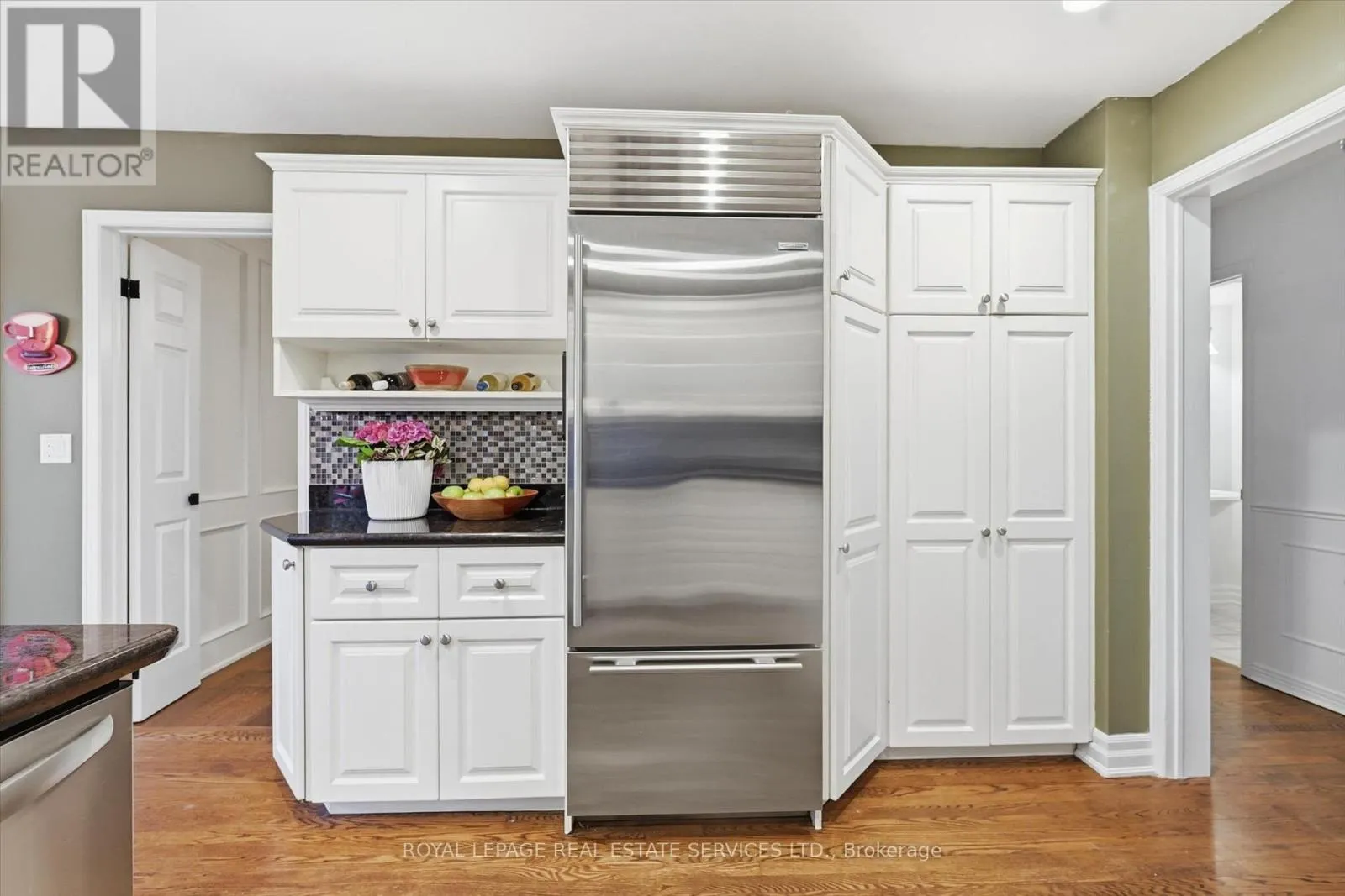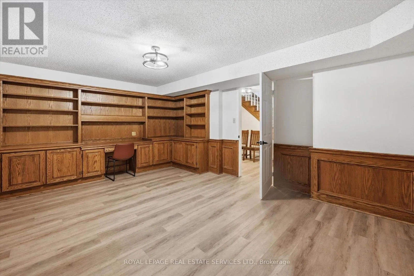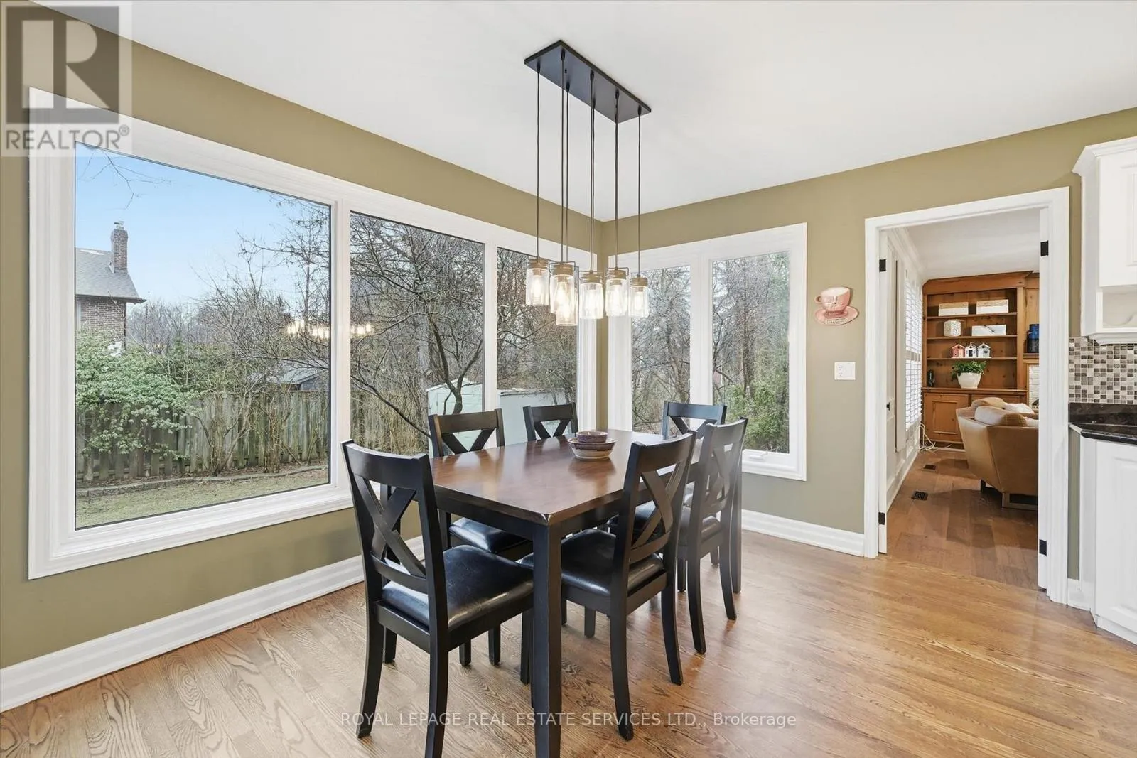 Cross Streets: Upper Middle Road West AND Nottinghill Gate. ** Directions: Upper Middle Road West / Nottinghill Gate / Oakery Woods Place. THE HEART OF GLEN ABBEY! OVERSIZED PIE-SHAPED LOT! QUIET CUL-DE-SAC OF ONLY 15 HOMES! Nestled on a quiet cul-de-sac of just 15 homes, this beautifully updated four-bedroom residence sits on an oversized pie-shaped lot siding onto a walking trail offering an unbeatable setting. Built by Arthur Blakely and designed for modern family living, the main level features rich hardwood flooring, elegant formal living and dining rooms, and a cozy family room with a woodburning fireplace and custom built-in cabinetry. The updated chef's kitchen is both stylish and functional, complete with granite countertops, designer backsplash, built-in appliances, a large pantry, and a bright breakfast area with walkout to the patio. Engineered hardwood flooring flows seamlessly throughout the upper level. The primary bedroom offers a walk-in closet and a spa-inspired five-piece ensuite with double sinks and a skylight. Three additional bedrooms and a well-appointed five-piece bath complete the upper level. The finished basement adds exceptional living space with new laminate flooring, large recreation/games area with custom bar, an office with custom cabinetry and bookshelves, three-piece bath, and ample storage. Additional highlights include a grand two-storey foyer, updated kitchen and bathrooms, California shutters, wainscoting, convenient main floor laundry room with side yard access, hardwood staircase with carpet runner, and replaced garage doors. Step outside to a private backyard featuring a stunning stone patio, mature trees, and professionally landscaped gardens - a perfect setting for relaxing or entertaining. Ideally located within walking distance of parks, trails, and Monastery Bakery, and close to top-rated schools including Abbey Park High School, shopping, dining, hospital, major highways, and GO Train. A perfect family home in one of Glen Abbey's most sought-after locations! (certain exterior images have been digitally enhanced) (id:27476)