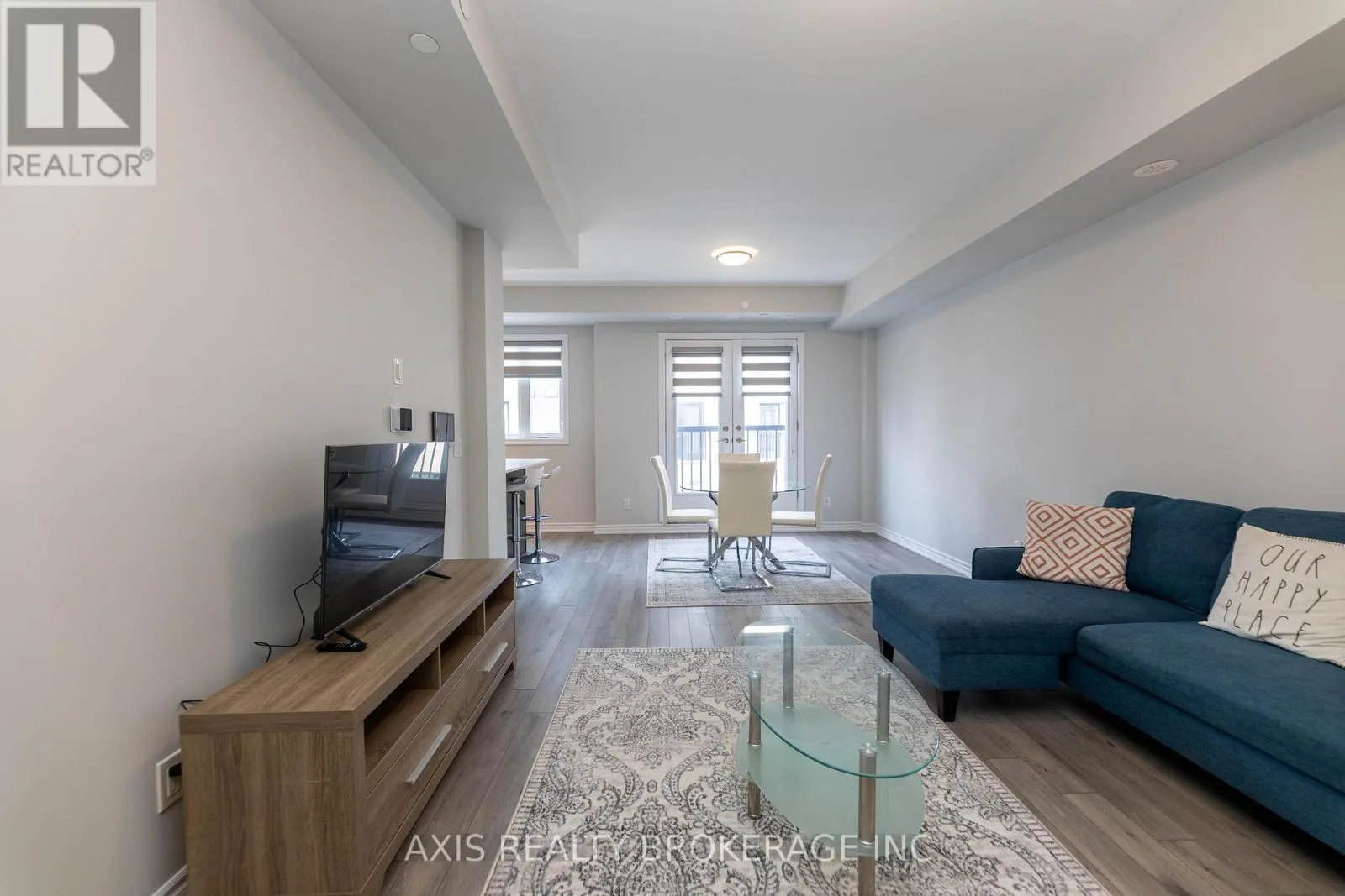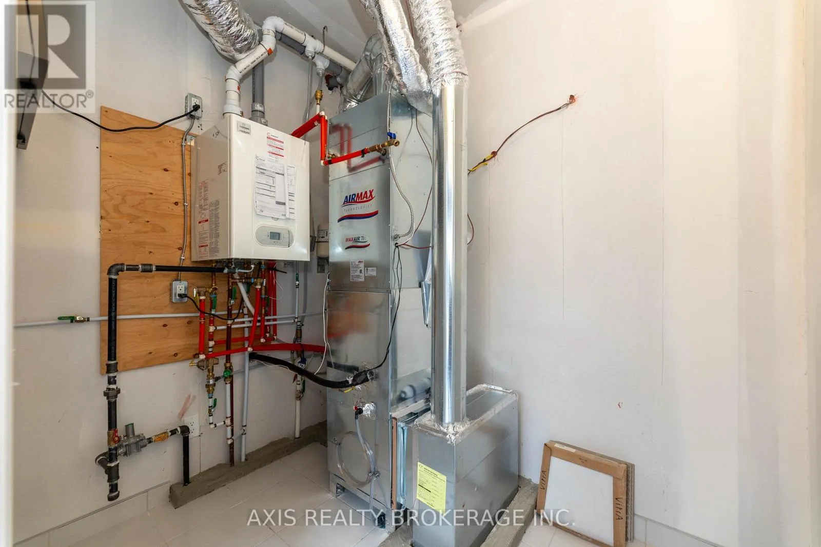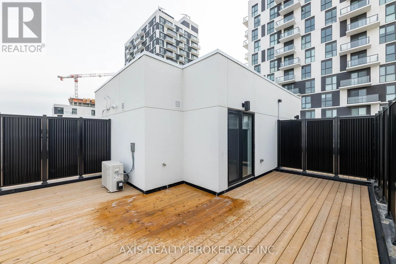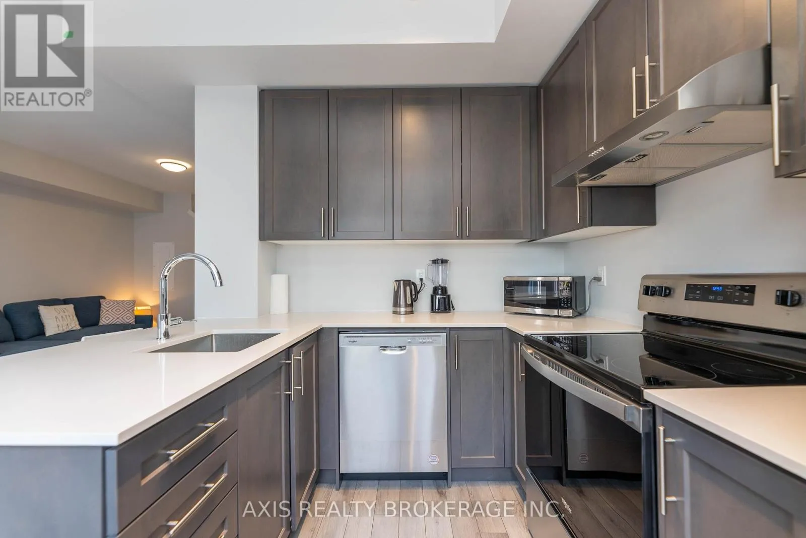 Trafalgar Rd & Dundas St Welcome to this stunning 2-bedroom, 3-bath condo townhome featuring an impressive 300+ square foot terrace, perfect for entertaining, lounging, and enjoying BBQ dinners. Located in the vibrant Oakvillage community in north-central Oakville, this home combines modern design with smart home integration. Control everything from the intercom and doorbell camera to the thermostat, HVAC, and lighting using the in-home control pad or smartphone app. Ideal for entertaining, the open-concept main floor boasts a kitchen, living, and dining area with 9-foot ceilings and luxury vinyl plank flooring. The sleek kitchen is equipped with quartz countertops, stainless steel appliances, a cyclone ventilation hood, and a breakfast bar island for quick meals. Step out onto the balcony to savor your morning coffee or catch the evening breeze. The spacious primary bedroom features a walk-in closet and an upgraded 3-piece ensuite. Additional upgrades include quartz countertops in both full baths, hardwood stairs, and vinyl plank flooring in the hallways and bedrooms. An upper loft area offers the perfect space for an office, leading to the private rooftop terrace. This modern property promotes a healthy and welcoming environment, complete with courtyard planters, a social seating area, walkways, and ample underground visitor parking (id:27476)