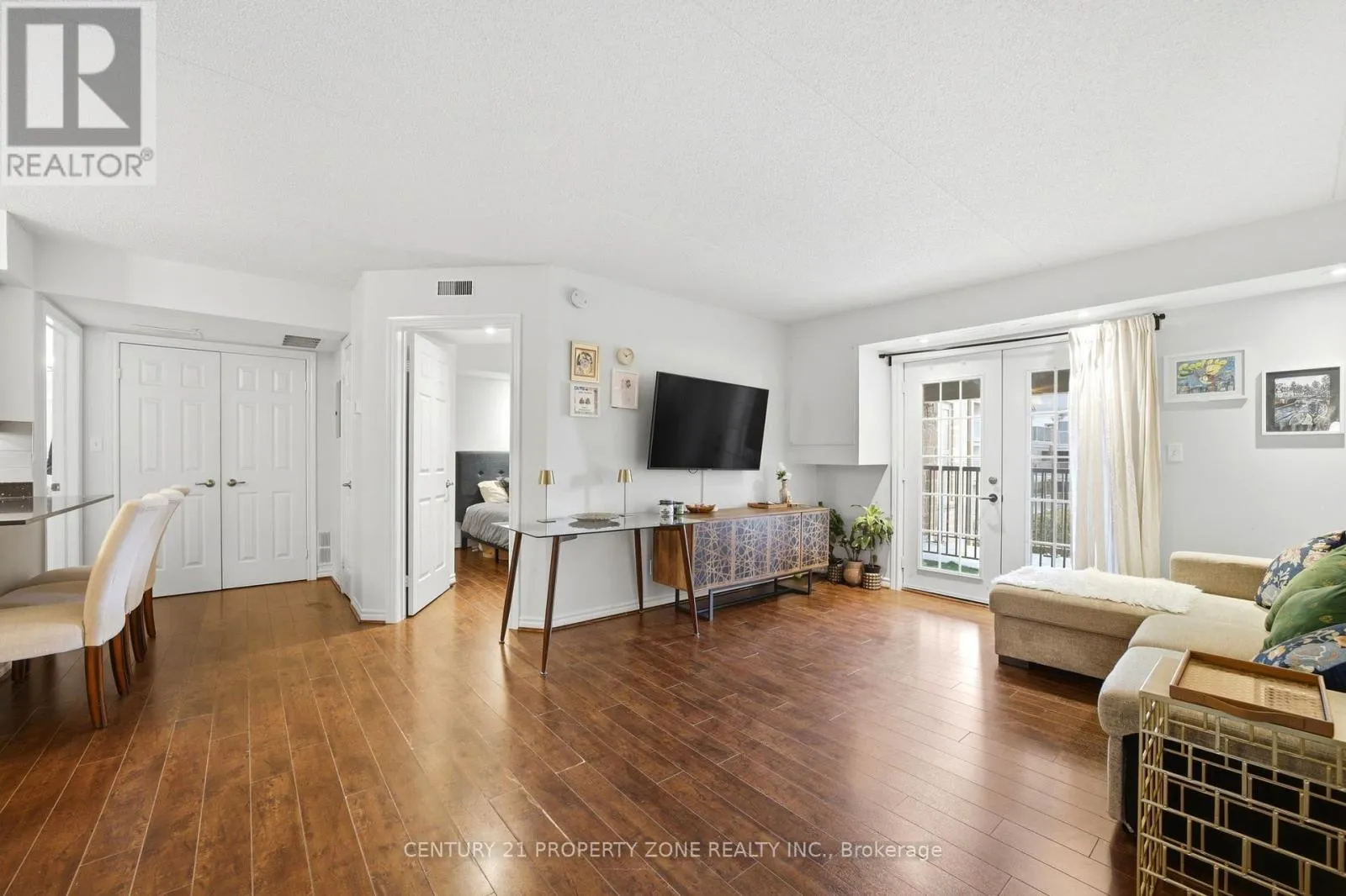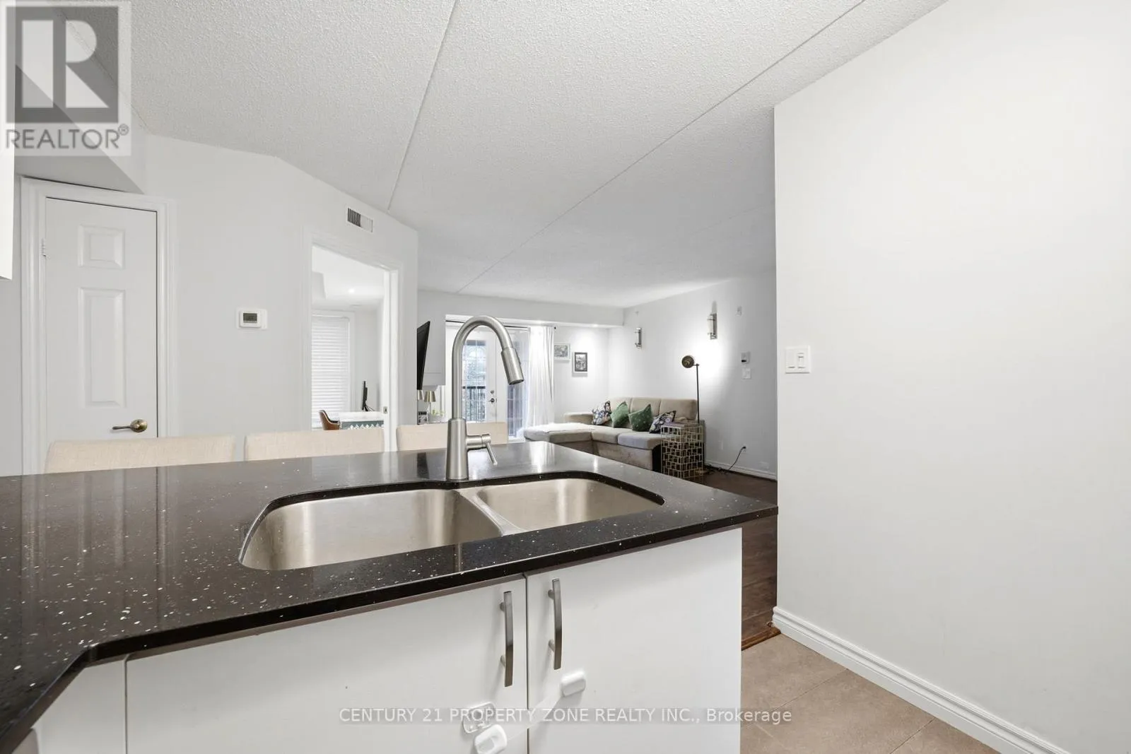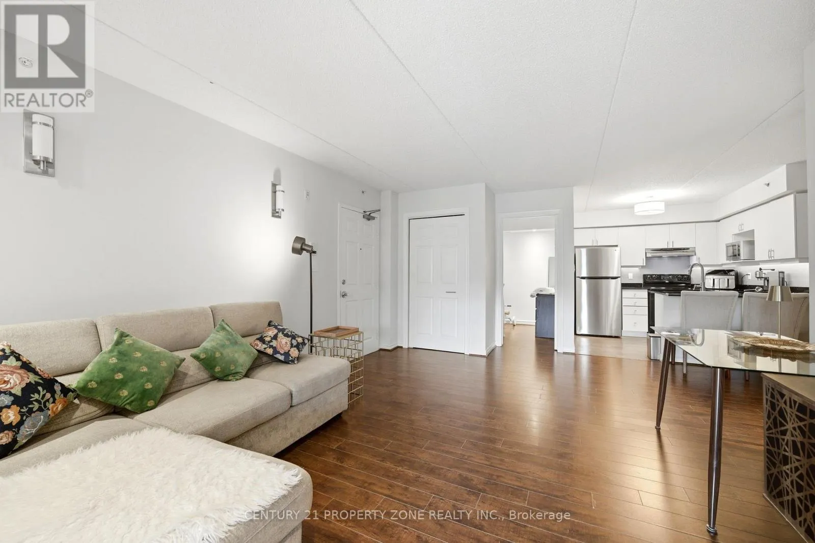 Upper Middle Rd / Third Line Welcome to this beautiful condo in Glen Abbey, Oakville's prestigious community, featuring modern laminate flooring throughout, a spacious bedroom, a versatile den ideal as a second bedroom or office, and a 4-piece bathroom. The contemporary kitchen offers a breakfast bar, backsplash, quartz countertops, ample cabinetry, and LED pot lights, while the unit also includes ensuite laundry, one parking space, and a storage locker conveniently located near the balcony. Step out through elegant French doors to your private balcony-perfect for relaxing or outdoor dining. Enjoy access to premium amenities including a gym, sauna, BBQ area, party room, and outdoor patio, all just minutes from schools, parks, transit, highways, shopping, and restaurants-because living in Glen Abbey isn't just convenient, it's a quiet flex.Adding to its exceptional appeal, the property falls within the catchment of Abbey Park High School, one of Ontario's top-performing schools, ranked 8th out of 747 schools in the 2025 Fraser Institute report, with an outstanding score of 9.3/10-because great homes are nice, but top-tier schools? That's the real power move. (id:27476)