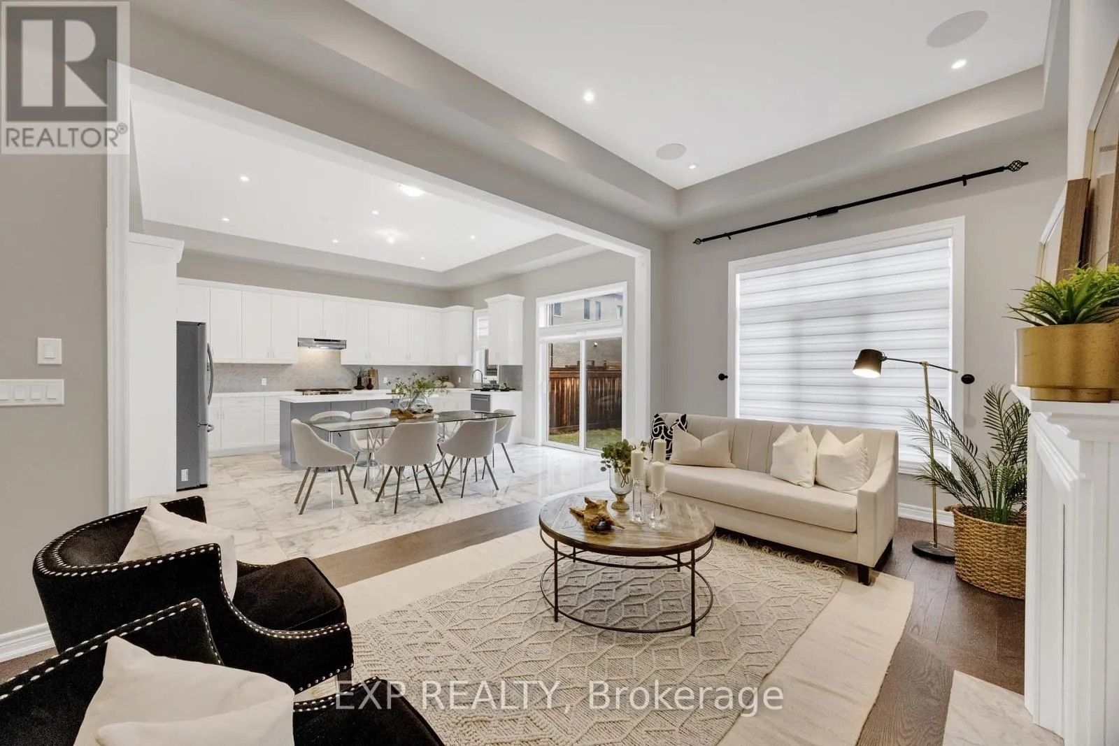 Cross Streets: SIXTH LINE AND DUNDAS ST WEST. ** Directions: FROM SIXTH LINE, TURN LEFT ON CARNEGIE DR, PROPERTY IS ON YOUR RIGHT SIDE. Welcome to an exceptional residence in the prestigious Seven Oaks enclave of the highly sought-after GO Glenorchy community, known for scenic parks, top-rated schools, and easy access to highways and amenities. This elegant home features 11-foot ceilings, 8-foot doors, and rich oak hardwood flooring, creating a bright, sophisticated feel. The open-concept main floor includes a cozy gas fireplace and a stylish kitchen with a large island, ideal for everyday living and entertaining. Thoughtful upgrades include automated window coverings, rough-in ceiling speakers, and a custom staircase with black birds nest style steel spindles. The primary suite offers dual walk-in closets and a spa-like ensuite with double sinks, marble tile, a Moen spa system, and frameless glass shower. Spacious bedrooms provide flexibility for family or work-from-home needs. The fully fenced backyard offers privacy for relaxation or entertaining. Built in 2022 by Fernbrook Homes and covered by Tarion Warranty, this home blends modern design with lasting quality. Book your private showing today! (id:27476)