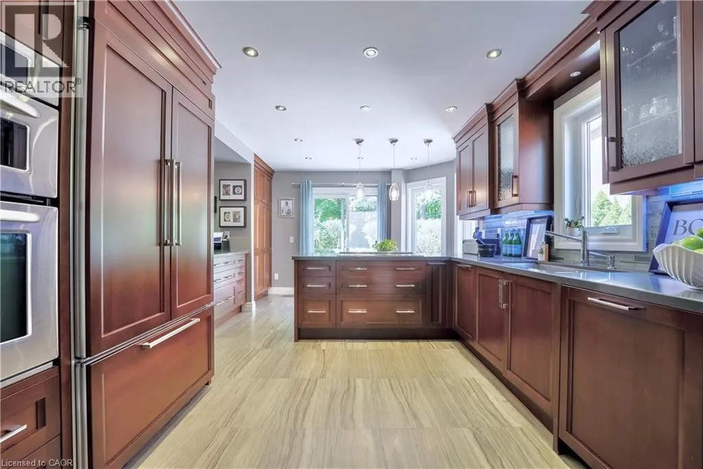 Upper Middle Road, Left on Sixth Line, Right on River Oaks Blvd East Look no further! Welcome to 11 Morrison Creek Crescent, an elegant four-bedroom residence located on one of the most sought-after streets in the family-friendly River Oaks neighborhood. Following a classic center hall plan, this home offers 4,048 square feet of total living space, including four spacious bedrooms and a fully finished basement. The interior is thoughtfully designed with attractive crown moldings throughout, a main floor den/library, and a kitchen equipped with new appliances that overlooks a sunken family room. The house is Nest-friendly and is equipped with an AV system throughout, including the courtyard patio. The large master retreat features ample closet space and a walk-out to a private rooftop balcony. The property is situated on a quiet crescent and features an oversized, pie-shaped lot backing onto a lush ravine, providing a perfect setting for a pool. The outdoor space also includes a charming, private courtyard patio with tumbled stone and a large double-car garage with new doors. Ideally located close to Highways 403 and 407, as well as highly rated schools, this is an exceptional family home in a beautiful ravine setting. (id:27476)