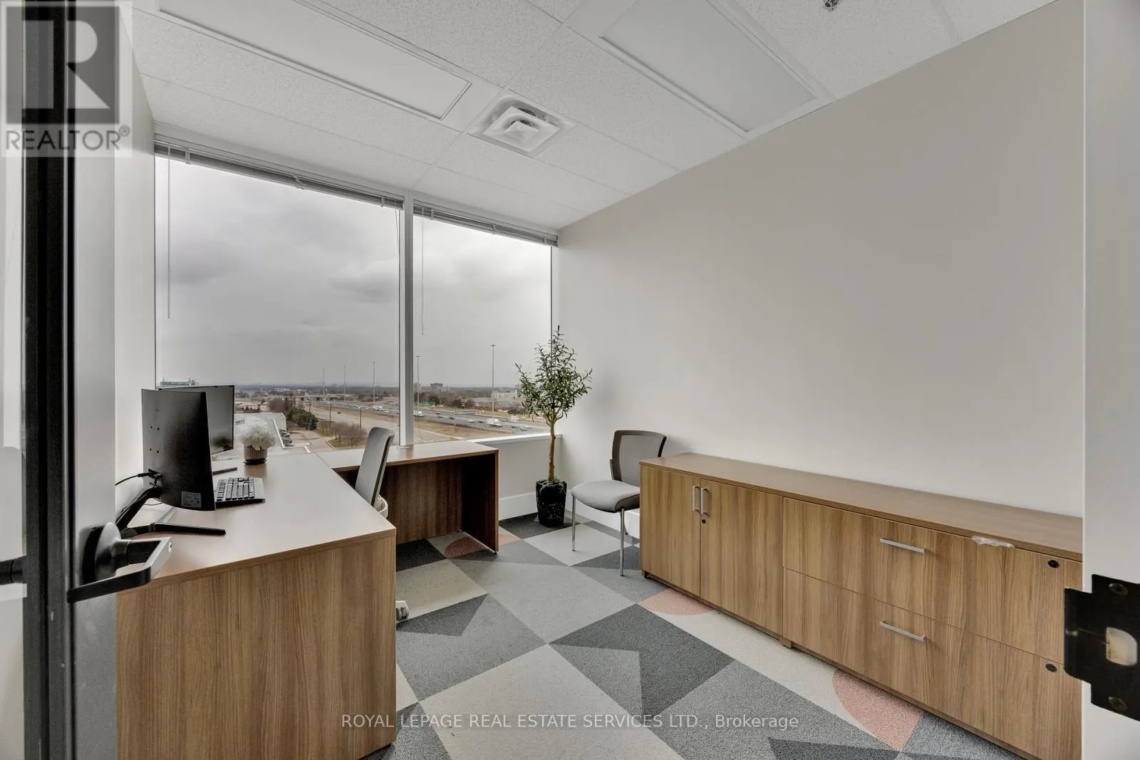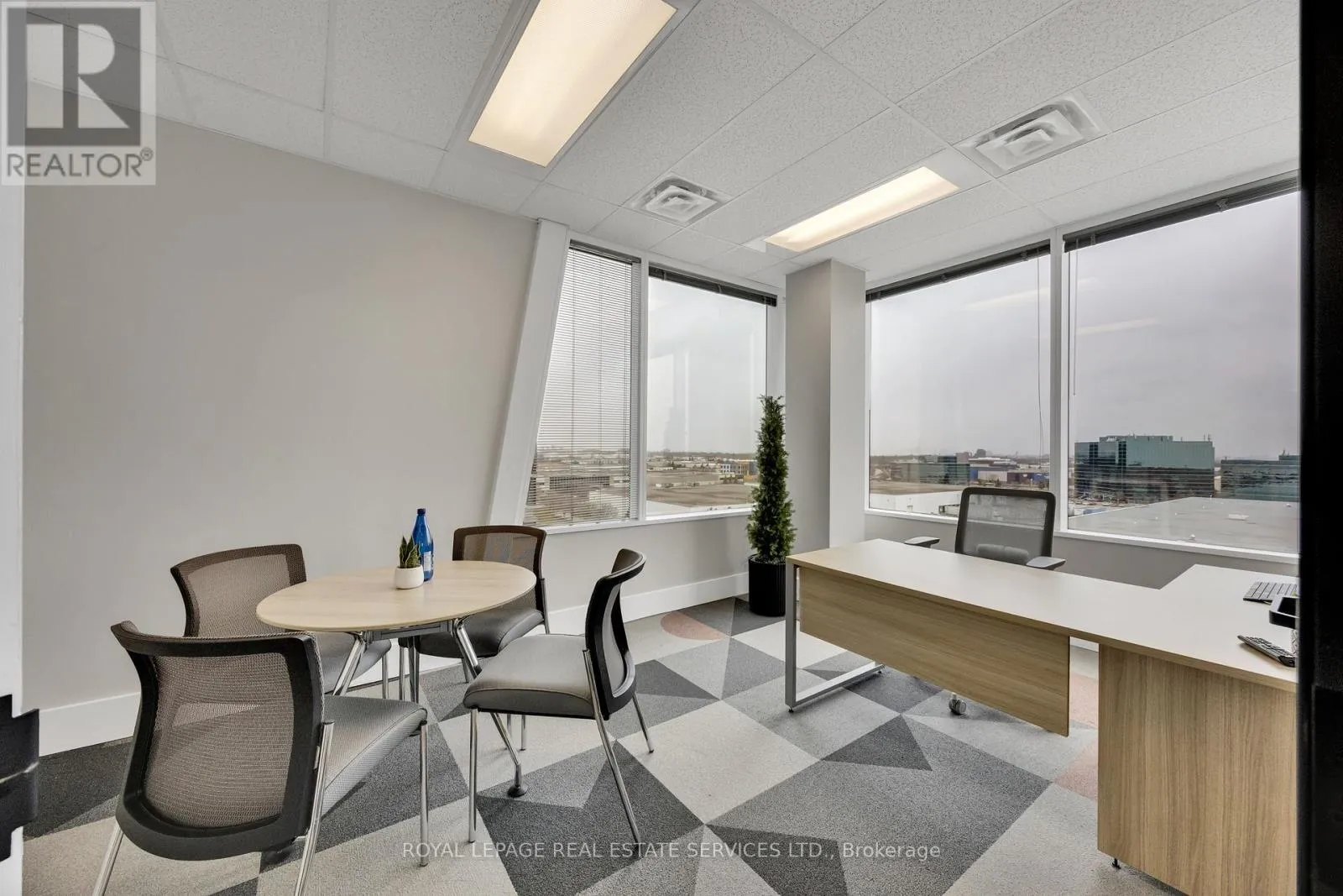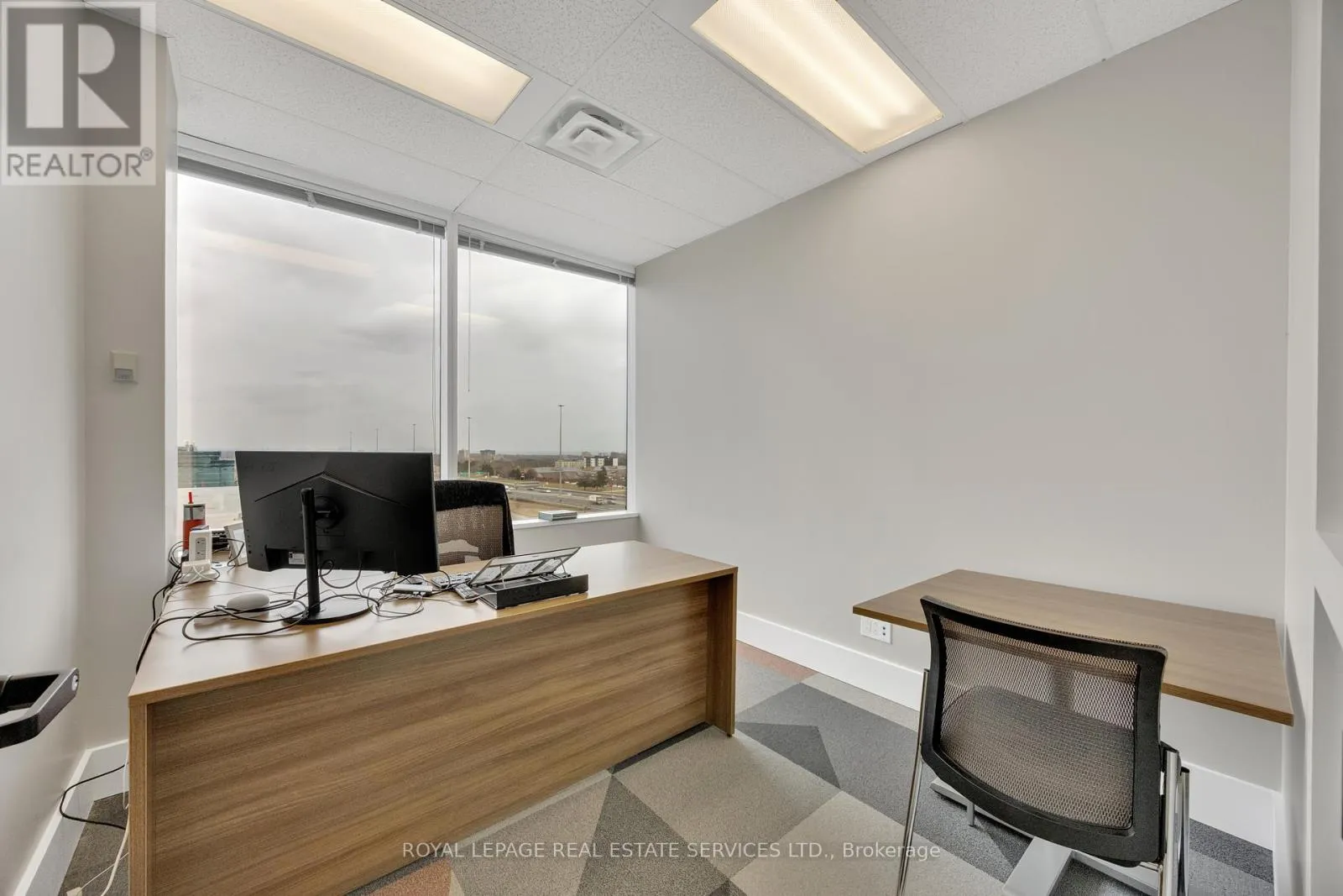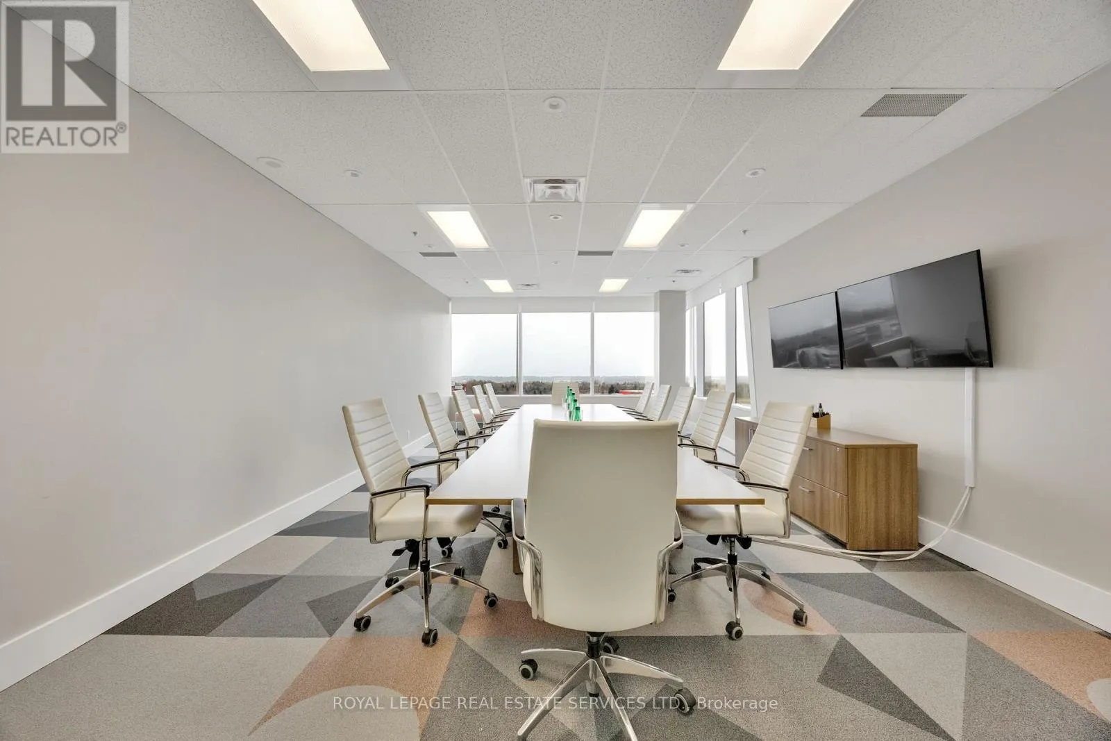 Cross Streets: QEW/Winston Churchill Blvd. ** Directions: Ford Drive to Upper Middle East, Left in Buckingham Rd to enter the parking lot. Exceptional opportunity to lease a fully built-out, professional corporate office space designed to impress. Featuring a stylish and welcoming reception area, the layout includes a spacious boardroom with seating for 12 and integrated audio/video conferencing capabilities-ideal for client presentations and team collaboration. The premises offer two executive corner offices with expansive lake and city views overlooking Toronto and Mississauga, complemented by five bright south- and east-facing perimeter offices and three additional interior offices. The space is thoughtfully designed with functionality in mind, including a dedicated IT/HR office, ample storage and filing areas, a coat closet, and a well-appointed lunchroom with kitchen facilities. A separate staff entrance provides convenient access for employees. Additional features include unlimited surface parking, designated guest parking, and electric vehicle charging stations. This is a turnkey solution for businesses seeking a polished, efficient workspace in a premium setting. The building is both BOMA BEST and WELL certified, reflecting a strong commitment to sustainability, energy efficiency, and occupant health and wellness. Recent capital improvements include newly activated, modernized lobby spaces that create a strong first impression, along with upgraded washroom facilities and access to a professionally designed on-site tenant lounge. The property offers direct access to public transit and is surrounded by a wide range of nearby amenities, including dining, retail, and services. Ideally situated with convenient access to the QEW, Highway 403, and Highway 407, the location provides excellent connectivity for both employees and clients. (id:27476)