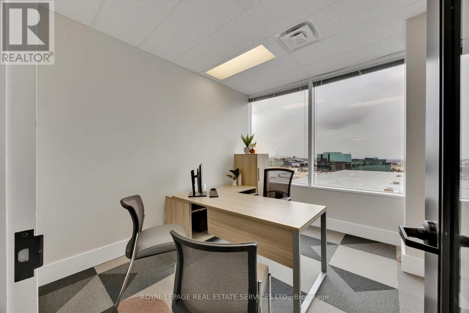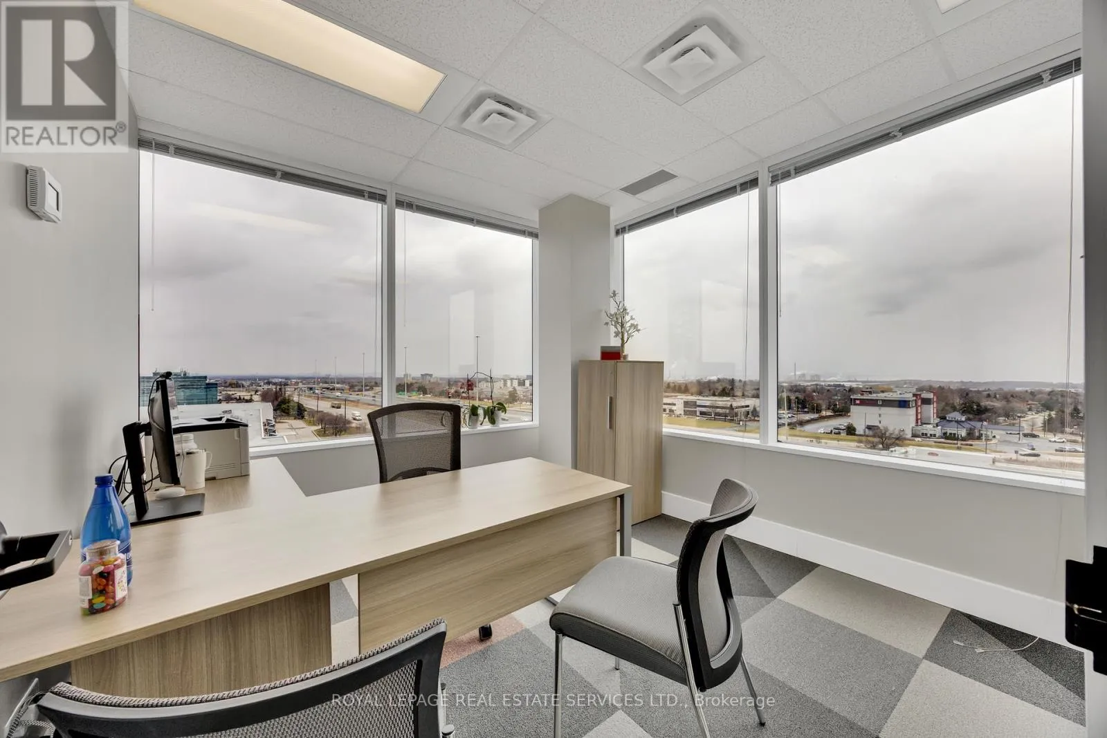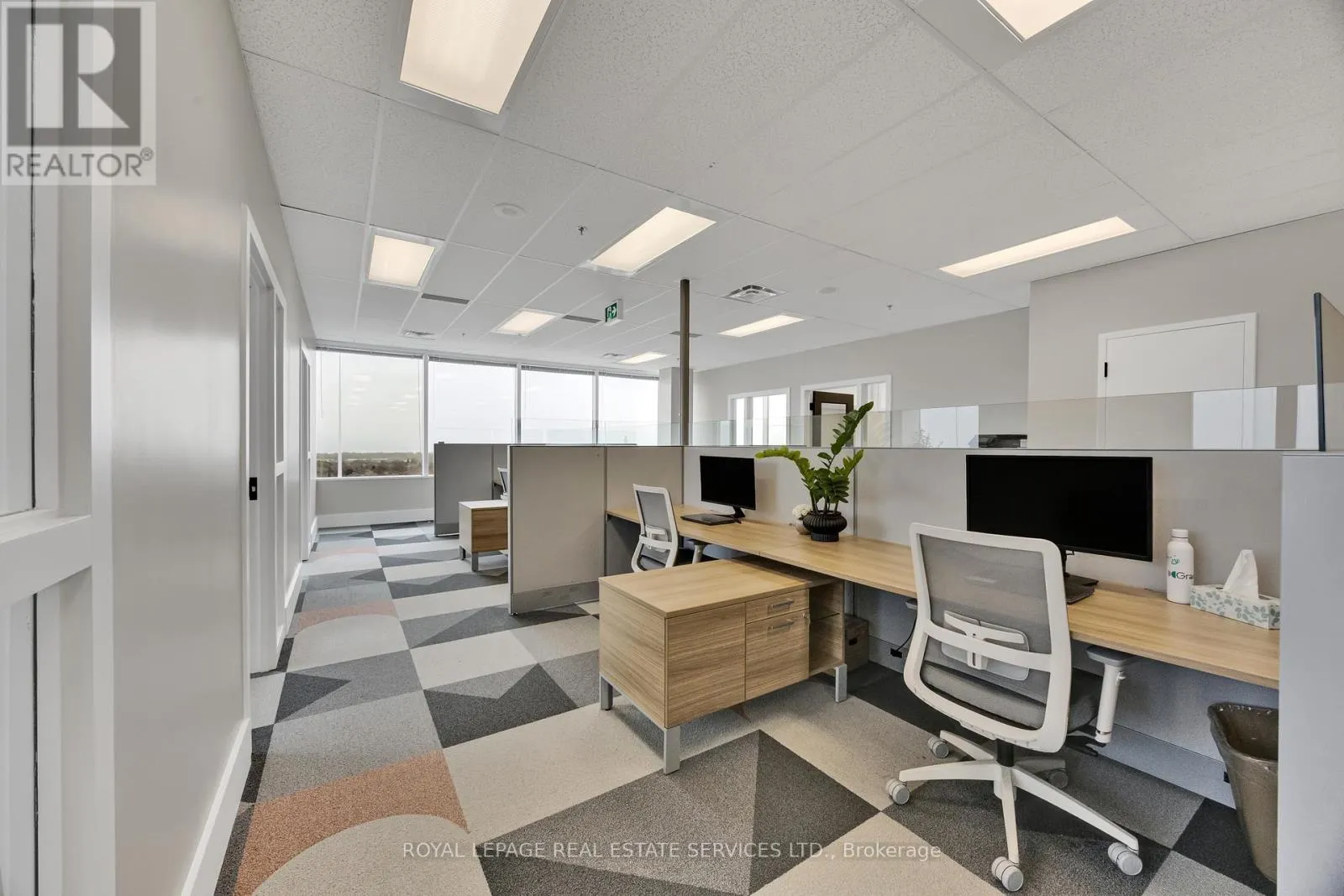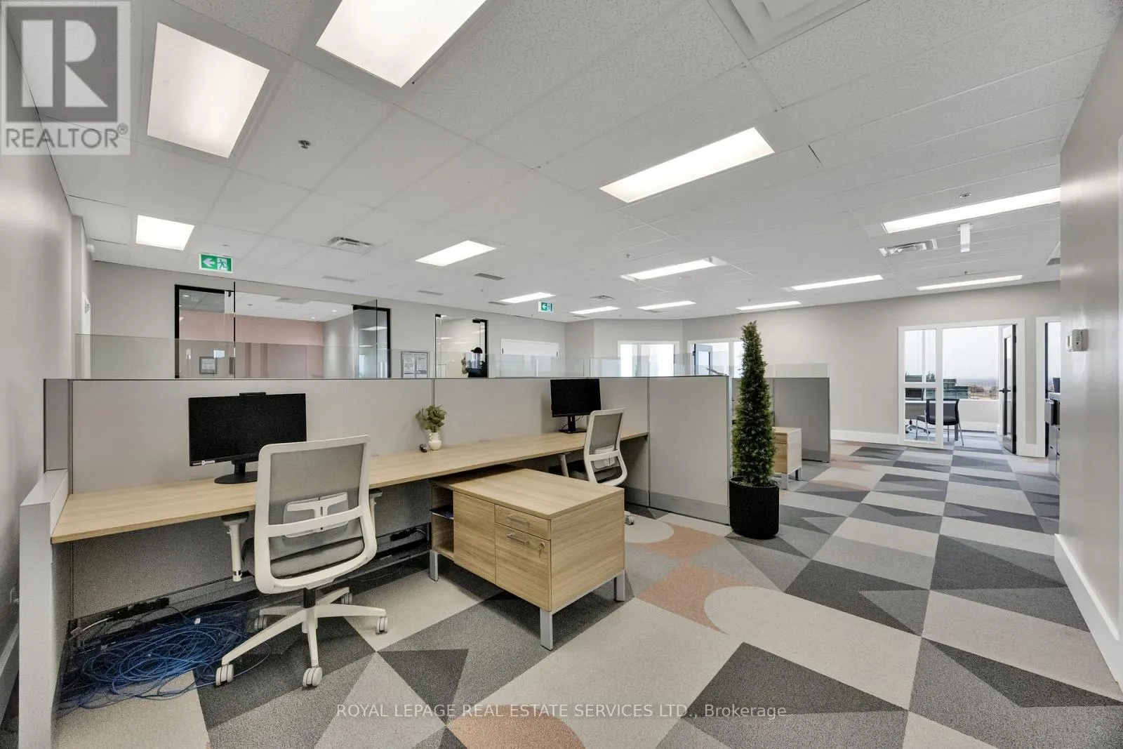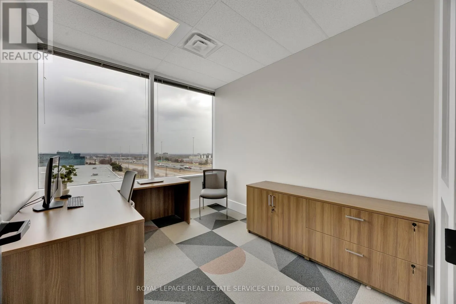 Cross Streets: QEW/Winston Churchill Blvd. ** Directions: Ford Drive to Upper Middle East, Left in Buckingham Rd to enter the parking lot. Exceptional opportunity to lease a fully built-out, professional corporate office space designed to impress. Featuring a stylish and welcoming reception area, the layout includes a spacious boardroom with seating for 12 and integrated audio/video conferencing capabilities-ideal for client presentations and team collaboration. The premises offer two executive corner offices with expansive lake and city views overlooking Toronto and Mississauga, complemented by five bright south- and east-facing perimeter offices and three additional interior offices. The space is thoughtfully designed with functionality in mind, including a dedicated IT/HR office, ample storage and filing areas, a coat closet, and a well-appointed lunchroom with kitchen facilities. A separate staff entrance provides convenient access for employees. Additional features include unlimited surface parking, designated guest parking, and electric vehicle charging stations. This is a turnkey solution for businesses seeking a polished, efficient workspace in a premium setting. The building is both BOMA BEST and WELL certified, reflecting a strong commitment to sustainability, energy efficiency, and occupant health and wellness. Recent capital improvements include newly activated, modernized lobby spaces that create a strong first impression, along with upgraded washroom facilities and access to a professionally designed on-site tenant lounge. The property offers direct access to public transit and is surrounded by a wide range of nearby amenities, including dining, retail, and services. Ideally situated with convenient access to the QEW, Highway 403, and Highway 407, the location provides excellent connectivity for both employees and clients. (id:27476)