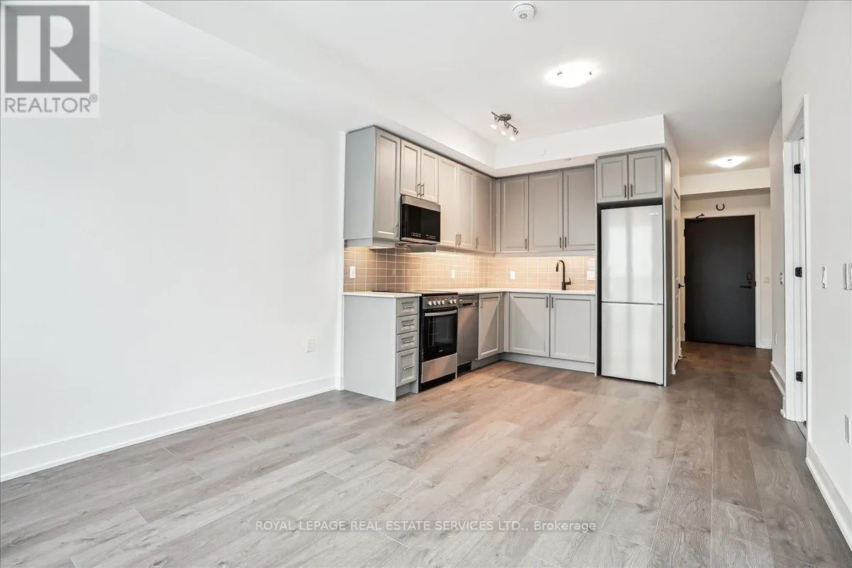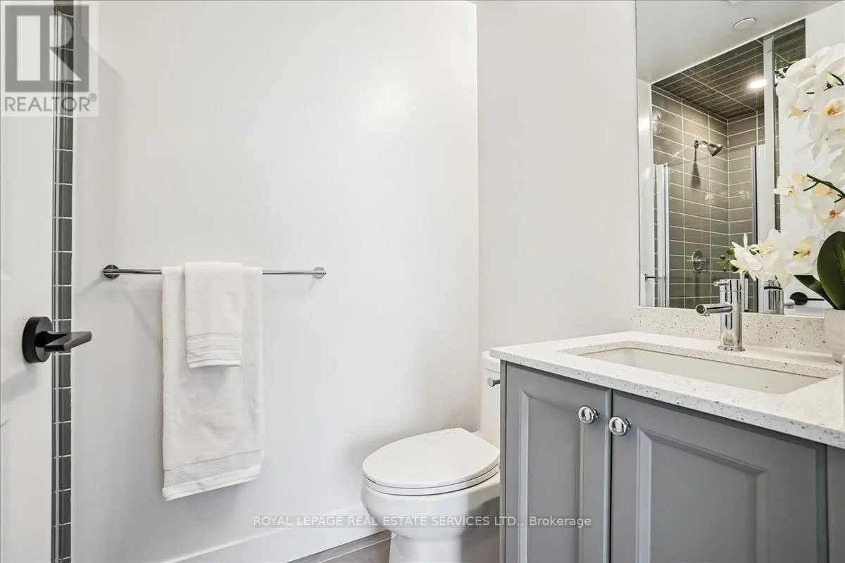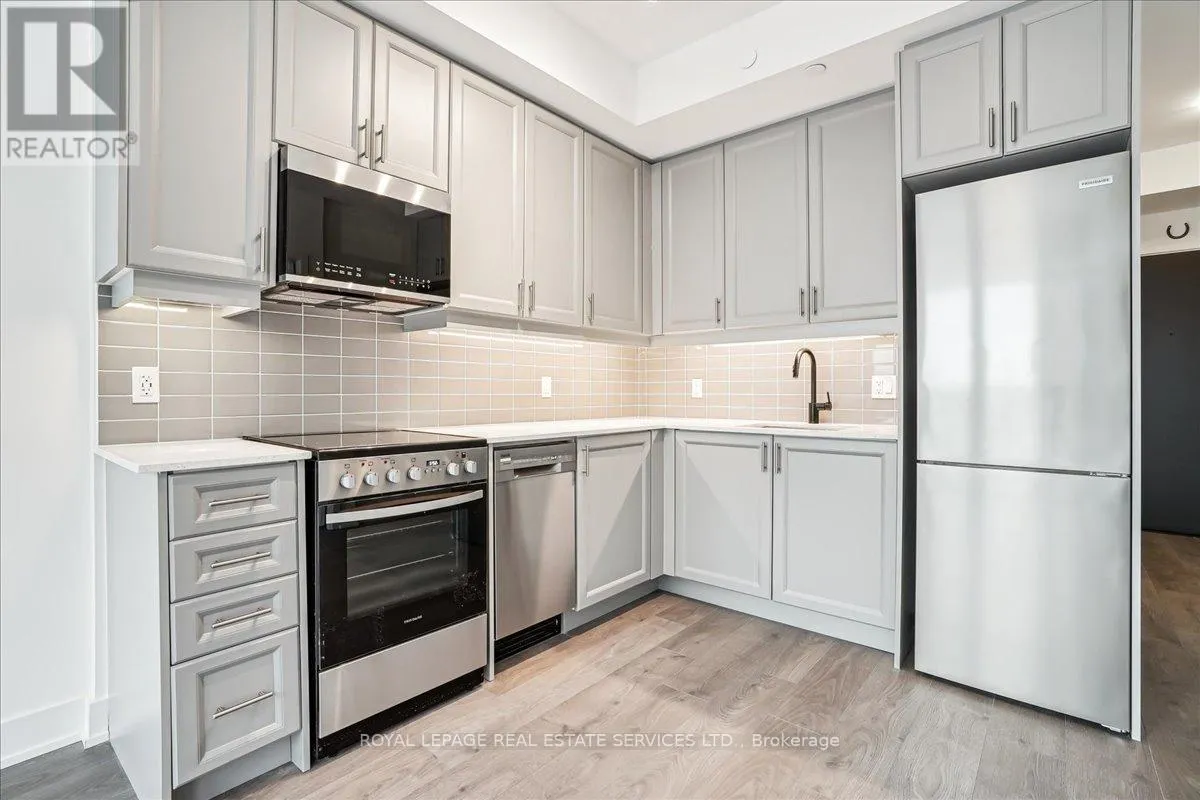 Cross Streets: Bronte/Pine Glen. ** Directions: Bronte/Pine Glen/Khalsa. Welcome to Fernbrook Resort-Style NUVO Condo with a superior balcony view! Step into luxury w this extensively updated, 1-bedroom + DEN, 2-bathroom condo! Approx. 600 sq. ft., this stunning unit features high-end finishes, incl 9' smooth ceilings, wide plank laminate flooring, matte black hardware, & 5" baseboards. The open-concept great room & kitchen offer a perfect space for both relaxing & entertaining. Step out onto your private west-facing balcony overlooking the beautifully landscaped condo greenery. An ideal spot to enjoy your morning coffee or the sunset views. Chef's Kitchen boasts grey-toned cabinetry w extended uppers, Under valance lighting, Gorgeous stone countertops & subway tile backsplash, 4 high-end stainless steel appliances incl fridge, stove, dishwasher, microwave. Bedroom w/ large windows for natural light & Private 3-pc ensuite featuring stone countertops & a sleek glass shower. Large versatile den w frosted glass sliding doors, perfect as an office/additional bedroom. 4-pc main bathroom w stone countertops, tile floors, & in-suite washer/dryer. Smart home technology w keyless entry, Ecobee Smart Thermostat w built-in Alexa. 1 parking spot & 1 locker. Resort-Style Amenities incl Rooftop social lounge w stunning views, Resistance pool for a relaxing swim, Party & media room, ideal for gatherings & events, Fully-equipped fitness center w Peloton bikes, Putting green, basketball, & pickleball courts, Community gardens, bike, & pet washing stations & a Car wash station for your convenience. Prime location close to top-rated schools, shopping, dining, Oakville Hospital, Sixteen Mile Complex, & public transit. Easy access to major highways & scenic hiking trails. AAA tenants. Tenant Requirements incl Credit check, Proof of income (pay stubs, T4, letter of employment, etc.), Rental application, References required. Non-smokers (id:27476)