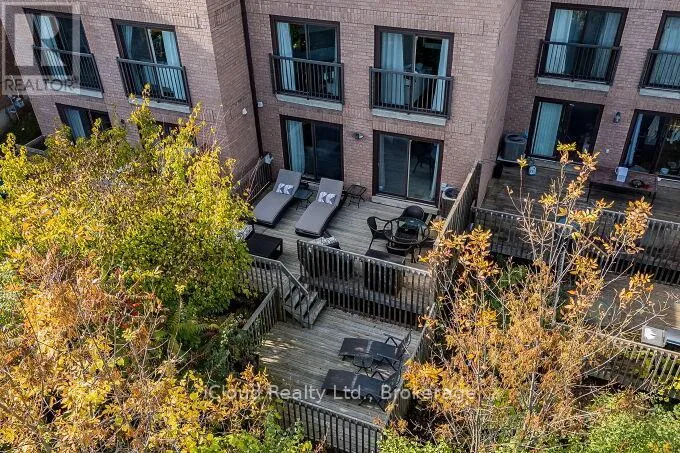 Cross Streets: Trafalgar/McCraney. ** Directions: Exit QEW Going North On Trafalgar Shortly After Make A Left At The Top Of The Hill On McCraney Right After That Turn Immediately On Sewell Left And Second Street Is Queens Ave., Make A Left There And Follow To The middle of the crescent. Welcome To Refined Luxury In The Heart Of Oakville Discover This Bright, Spacious, And Distinctive Three-Bedroom, Three-Bath Executive Townhome, Ideally Tucked Away On A Quiet Cul-De-Sac In One Of Oakville's Most Prestigious Enclaves. Backing Onto Serene Green Space With No Rear Neighbours, This Home Offers Over 2,400 Sq. Ft. Of Living Space As Per Seller Of Refined Multi-Level Living, Blending Sophistication, Comfort, And Tranquility. Enter Through A Grand Foyer With 12-Foot Ceilings And Polished Italian Marble Floors Flowing Seamlessly Into Rich Hardwood Throughout. The Sun- Filled Living Room Features Dual Juliette Balconies, A Striking Marble Fireplace, Custom Accent Wall, And Pot Lighting, Creating A Luxurious Yet Inviting Atmosphere. The Gourmet Eat-In Kitchen Boasts Granite Countertops, Premium Stainless-Steel Appliances, Designer Backsplash, And Ample Cabinetry, Adjoining A Formal Dining Room Perfect For Entertaining. The Primary Suite Offers Lake Views, A Large Walk-In Closet, And A Spa-Inspired Ensuite With Jacuzzi Tub And Skylight. Two Additional Bedrooms Share A Beautiful Skylit Bath, Each With Generous Closet Space. The Lower Level Features A Spacious Family Room With Walk-Out To A Private Two-Tier Deck, A Custom Laundry Room, Powder Room, And A Versatile Recreation Area Ideal For A Gym Or Media Space. You Will Be Shocked At The EXTRA 2 LEVELS Below The Family Room With More Room To Build On And Extra Storage Crawl Space. Notable Updates Include Driveway 2025, Roof 2020, Deck 2017, Windows & Sliding Doors 2016, Eavestroughs 2015, And Furnace/AC 2013.Located In Sought-After College Park, Minutes To Top Schools, Parks, Trails, GO Train, Highways, And Shopping. A Well-Managed Condominium Corporation Provides Peace Of Mind. A Rare Opportunity To Own An Executive Residence That Defines Refined Oakville Living. CHECK REALTOR NOTES FOR CONDO FINANCIALS (id:27476)