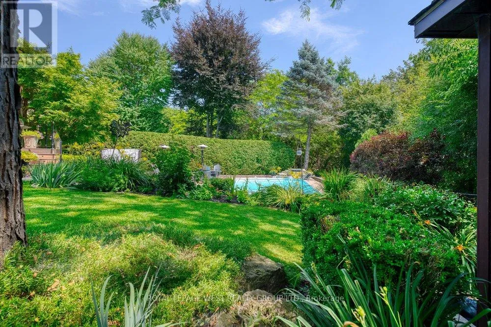 Cross Streets: Third Line/Kings College. ** Directions: Third Line/QEW. Nestled on one of Glen Abbey's most coveted streets, this exceptional Greenpark-built family home offers the perfect blend of luxury, privacy, and natural beauty-backing directly onto the scenic Fourteen Mile Creek /Glen Abbey trail system. Beautifully renovated and meticulously maintained, this 5-bedroom, 4-bathroom residence delivers refined living across all levels. The grand foyer opens to a striking living space with soaring ceilings and oversized windows, filling the home with natural light. Rich, luxury vinyl floors flow throughout the main level, leading into a designer-renovated kitchen (2021) featuring premium Miele and JennAir appliances, custom cabinetry, and an expansive quartz island-seamlessly connected to the family room for effortless everyday living and entertaining. Upstairs, generous bedrooms provide comfort and functionality for growing families, including a spacious primary retreat. Renovated bathrooms offer a spa-like experience with high-end finishes and timeless design. The fully finished lower level expands your living space with a vast recreation area, ideal for media, games, or extended family living. Step outside to your private backyard oasis-complete with Trex decking, glass railing for a seamless view, a resort-style in ground pool, hot tub, mature landscaping, and breathtaking ravine views. With no back neighbours, this is a rare offering of true tranquility in one of Oakville's most established communities. Extensive updates include kitchen, bathrooms, windows, flooring, furnace, and more-see full feature sheet for details.A rare opportunity to own a turn-key ravine property in prestigious Glen Abbey-where lifestyle, nature, and location come together. Top rated schools and close to GO station (id:27476)