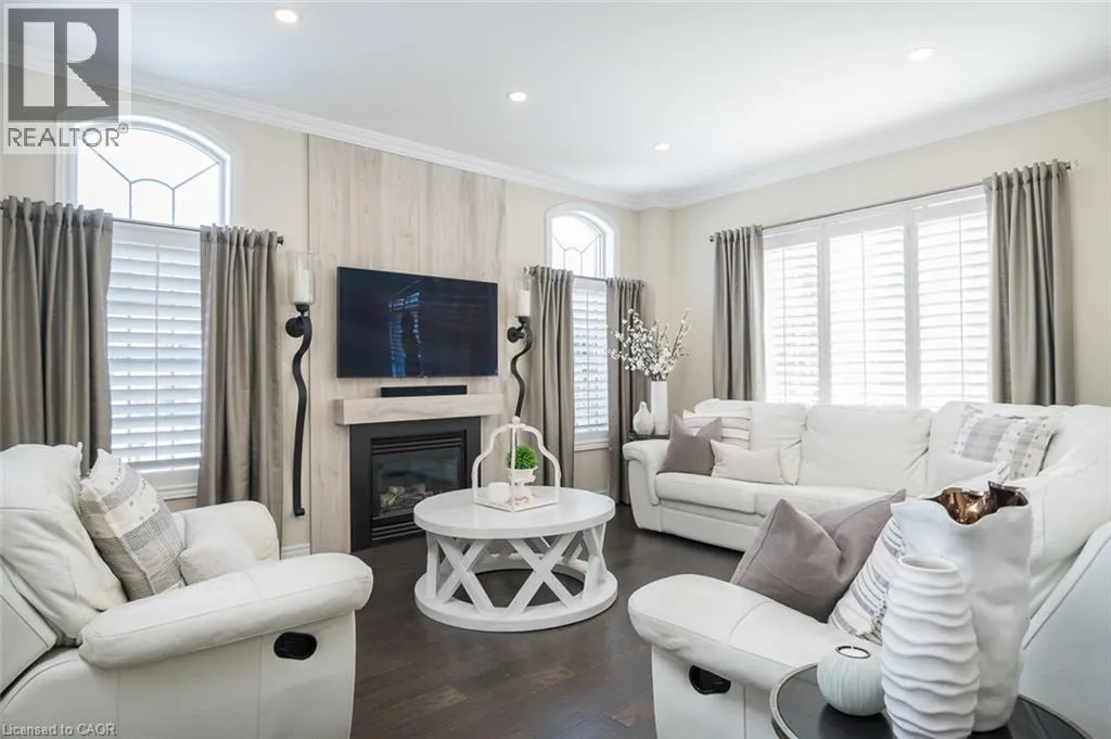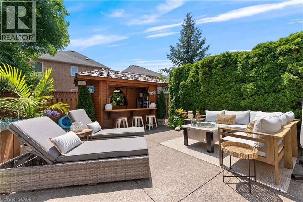 DUNDAS TO TOWNE, TOWNE TO GROVEHILL, GREVEHILL TO LONGRIDGE Exquisitely designed with a true model-home feel, this four-bedroom River Oaks home showcases elevated finishes and stunning upgrades that extend from its refined interior to the beautifully designed backyard retreat. A grand double-door entrance opens to an impressive foyer with open-to-above ceilings. Hardwood flooring runs throughout the main level, complemented by crown moulding, pot lights, and a hardwood staircase with wrought iron spindles. Arched windows with transoms and impressive ceiling height define the formal living room, finished with California shutters. A tray ceiling enhances the formal dining space, while the family room is anchored by a gas fireplace. The upgraded kitchen features white custom cabinetry, quartz countertops, a full slab backsplash, stainless steel appliances, and a generous island with breakfast bar seating. A bright eat-in area with sliding doors connects seamlessly to the rear yard. Upstairs, a spacious hallway leads to a generously sized primary retreat with ample closet space and a well-appointed five-piece ensuite. A second bedroom offers five-piece ensuite privilege, and two additional well-proportioned bedrooms provide flexibility for family, guests, or office space. The fully finished lower level adds valuable living space with a recreation area and built-in bar. Pot lighting and crown moulding enhance the ceiling detail, while a three-piece bathroom and multiple storage areas add everyday functionality. The backyard is designed for entertaining, featuring an expansive exposed aggregate patio, , hot tub, and custom cedar cabana bar, all surrounded by mature hedging for privacy. Located in the heart of River Oaks, close to top-rated schools, Oakville Hospital, parks, trails, shopping, and commuter routes, this home delivers elevated living in one of Oakvilleâs most established neighbourhoods. (id:27476)