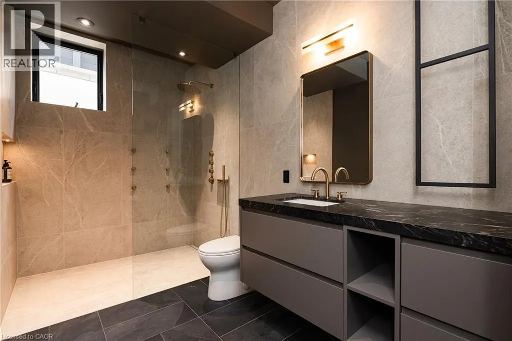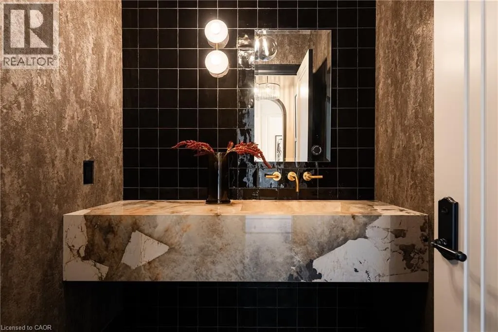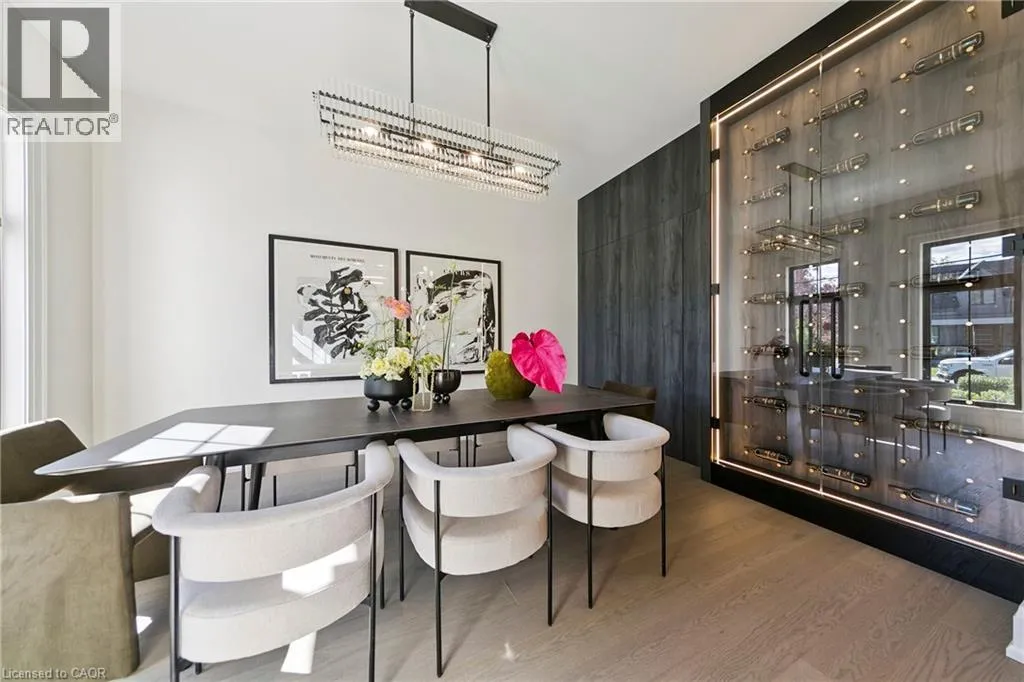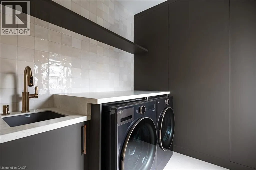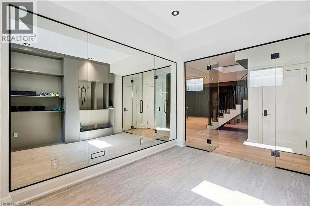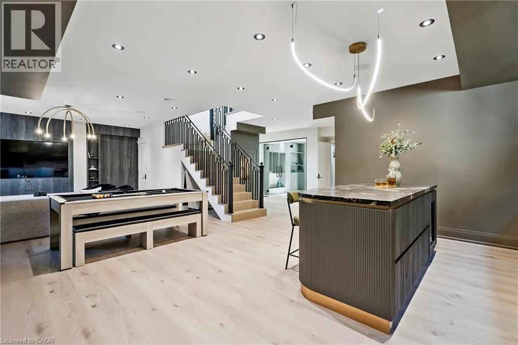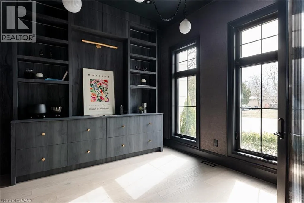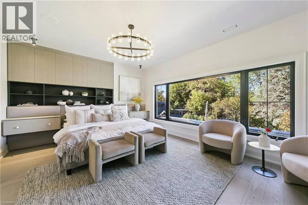 Stunning home upgraded and finished to the highest level, with French Chateauâinspired curb appeal and landscaped grounds. Luxurious finishes and attention to detail throughout. Big, bright windows, custom cabinetry, wall paneling and mouldings, curated stone and tile selections, hardwood herringbone flooring, integrated vents, and a skylight over the central staircase. Interior design by Mia Coroza. Landscaping by Kanawi Landscaping, with top trades from across the GTA. Mirage engineered oak flooring in herringbone. Red oak stairs with wrought iron railings by Deluxe Stairs. A beautifully appointed kitchen features leathered Taj Mahal natural stone quartzite countertops and island. Walk through the servery with walk-in pantry to the dining room with a built-in wine rack. The two-storey great room offers massive windows, a matte porcelain fireplace surround, and a custom ethanol fireplace. A stylish office includes French door entry, built-in wall unit, and sconces. All four bedrooms feature private ensuites. The primary suite includes a fireplace, walk-in closet with custom organizers, and an ensuite with heated floors, designer plumbing fixtures, stand-alone tub, and dual sinks. A laundry room is equipped with LG front-load washer and dryer. Each additional bedroom offers its own design, with closets featuring sensor lighting. Nine-foot ceilings and large window wells enhance the lower level. A bar area features leathered Titanium Gold natural stone quartzite countertops. The home theatre is positioned beneath the garage. Additional spaces include a home gym with custom mats, fifth bedroom, three-piece bath with curbless shower, and rec room. White cedar sauna completes the level. Walk out from the kitchen to a covered porch overlooking grounds inspired by a European garden, with fountains finished in exterior porcelain, landscape lighting, and a cabana with water and gas roughed-in. Aluminum composite fencing and a walk-up from the basement complete this setting. (id:27476)