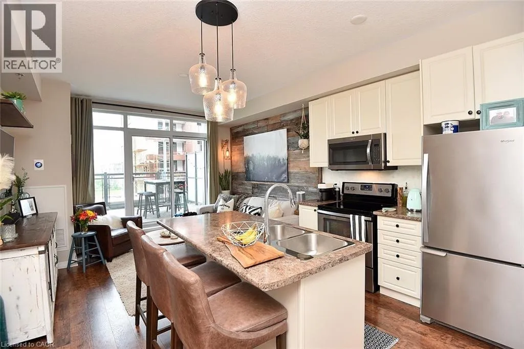 Bronte Road -- Khalsa Gate -- Old Bronte Road Welcome to this 1 bedroom, 1 bathroom condo that perfectly blends comfort, convenience and outdoor living. Step inside to discover a cozy open concept condo. Complemented by a large patio door that allows natural light to flow into the space. The professionally designed kitchen features ample cabinet space, a custom backsplash, stainless appliances, and an island. The great room boasts a custom wood wall, lending a cozy feel to the space. It has everything you need for everyday living or entertaining. The bedroom is a generous size with a dedicated closet. The 4 piece bathroom is both stylish and functional. What sets this condo apart is the incredible 200 sq ft terrace - your own outdoor oasis. Whether you are enjoying your morning coffee, hosting friends, or unwinding after a long day, this bonus space offers endless possibilities for relaxation and entertainment. Located in a highly desirable area, you'll appreciate the close proximity to Oakville hospital, a variety of shopping/dining destinations, major highway for easy commuting and nearby places of worship. Everything you need is just minutes away. Don't miss this opportunity to own a cozy condo with exceptional indoor and outdoor living! (id:27476)