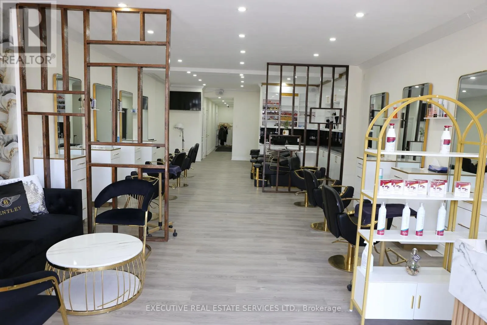 Cross Streets: Kerr and Herald. ** Directions: South. Positioned in the highly sought-after Old Oakville district, this fully renovated, turnkey salon presents an exceptional opportunity for entrepreneurs and investors alike. Completely upgraded top-to-bottom in 2024 with modern finishes and premium design, this space is ready for immediate operation. Featuring 7 cutting stations with LED mirrors, a marvelous waiting area, and a stylish reception desk, the salon is designed to deliver a high-end client experience. The layout also includes 3 hair wash stations, a foot pedicure station, and 2 private treatment rooms ideal for laser, tattoo, or waxing services - offering multiple revenue streams under one roof. A separate kitchen, full basement with side entrance, and additional space provide flexibility for expansion, storage, or added services. Surrounded by affluent clientele and benefiting from strong pedestrian traffic, this prime location offers outstanding exposure and long-term growth potential. All equipment and chattels included (unless otherwise specified). A rare opportunity to own a premium, fully equipped salon in one of Oakville's most prestigious areas. (id:27476)