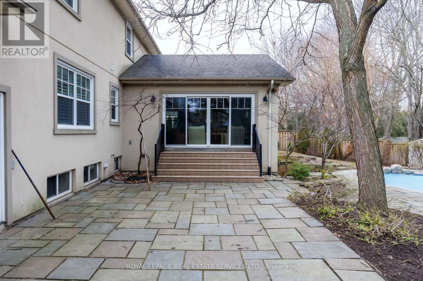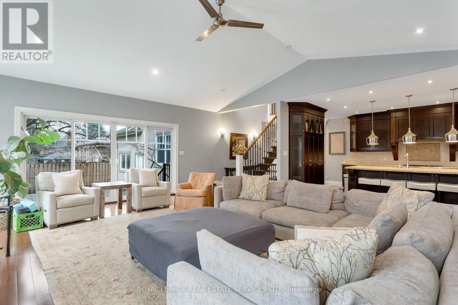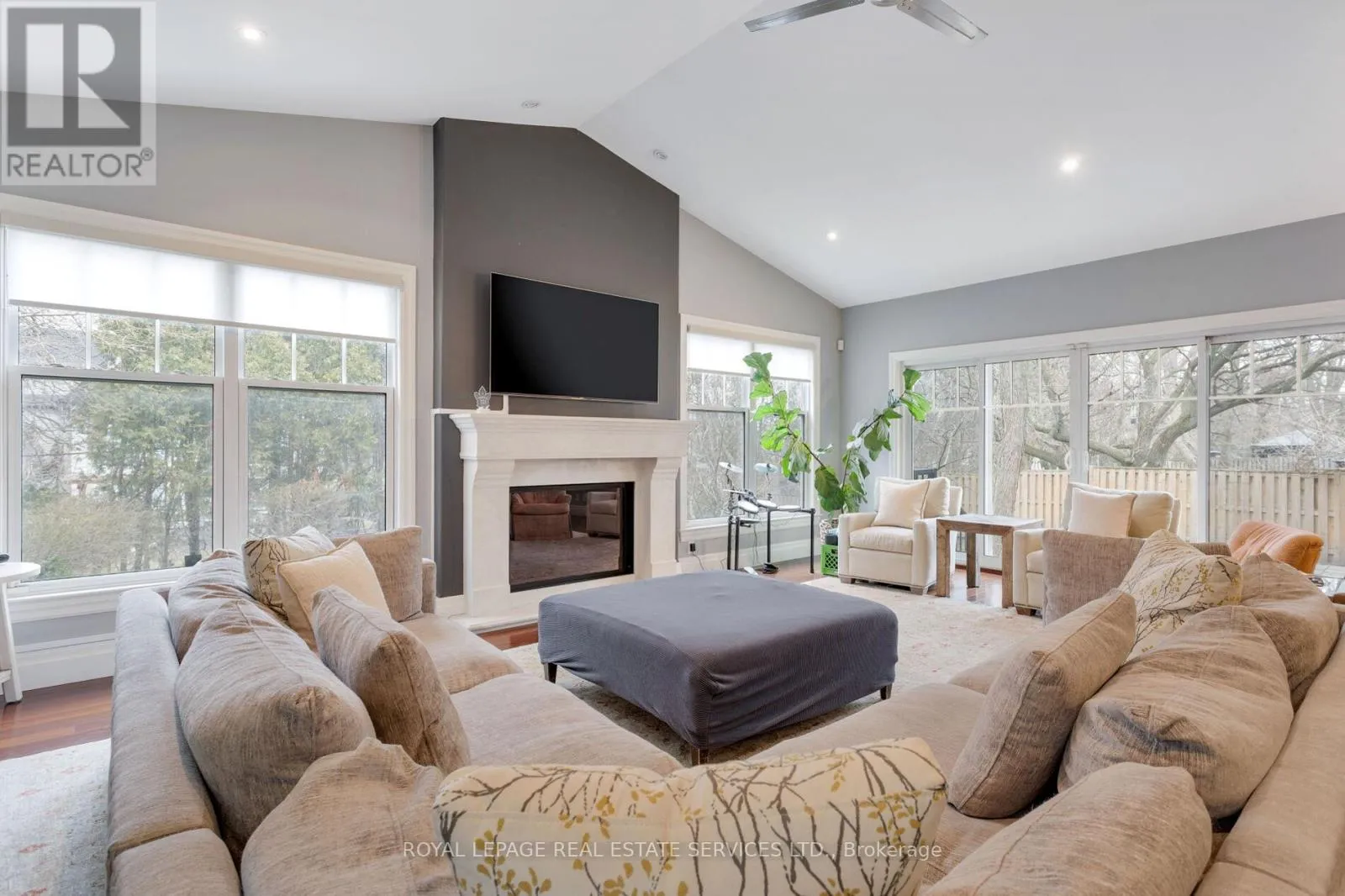 Cross Streets: Willowdown & Hixon. ** Directions: Rebecca- Savannah- Willowdown. Welcome to this exceptional upscale residence set on a sprawling 75 x 150 ft lot in prestigious Coronation Park. A 10-minute walk to Coronation Park on Lake Ontario and minutes to Bronte Harbour and Village, Oakville Harbour and downtown Oakville, for upscale shopping and restaurants. A 5-minute drive to the QEW and Bronte GO Station for commuters. Showcasing outstanding curb appeal with a stucco and stone façade, deluxe mouldings, professional landscaping, a stone walkway, covered flagstone porch and an extra-long driveway to a triple (tandem) garage, the home transitions seamlessly to a private backyard oasis-an entertainer's dream with upgraded stone patios, a custom saltwater pool with armour stone waterfall, lush gardens, multiple seating areas and ultimate privacy with mature trees. Offering 4 spacious bedrooms, 3.5 bathrooms and a professionally finished walk-up basement, the interior exudes refined craftsmanship with exotic hardwood floors, smooth ceilings, rounded drywall corners, crown mouldings, custom cabinetry, an impressive floating staircase, and abundant natural light. Highlights include a grand dining room, a dramatic family room with a cathedral ceiling, a gas fireplace and walkout, a private office, and a chef's kitchen with custom cabinetry, granite counters, an oversized island and premium Viking appliances. Upstairs features four generous bedrooms and two lavish bathrooms, including the primary retreat with a spa-inspired ensuite offering a jetted tub and a glass shower. The walk-up basement impresses with a large recreation room, a games room with a fireplace, a media lounge, and a 3-piece bath-perfect for family living and entertaining. (id:27476)