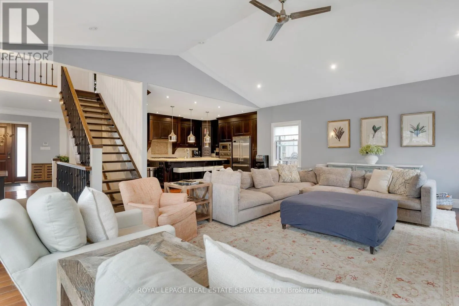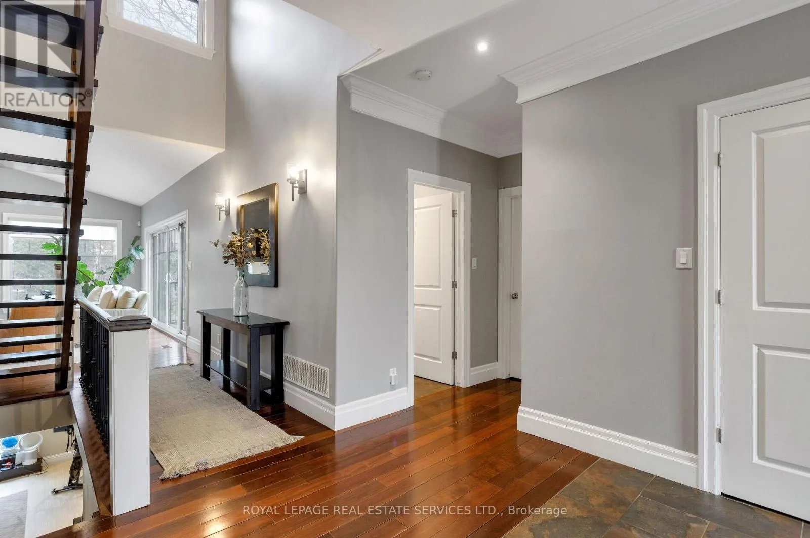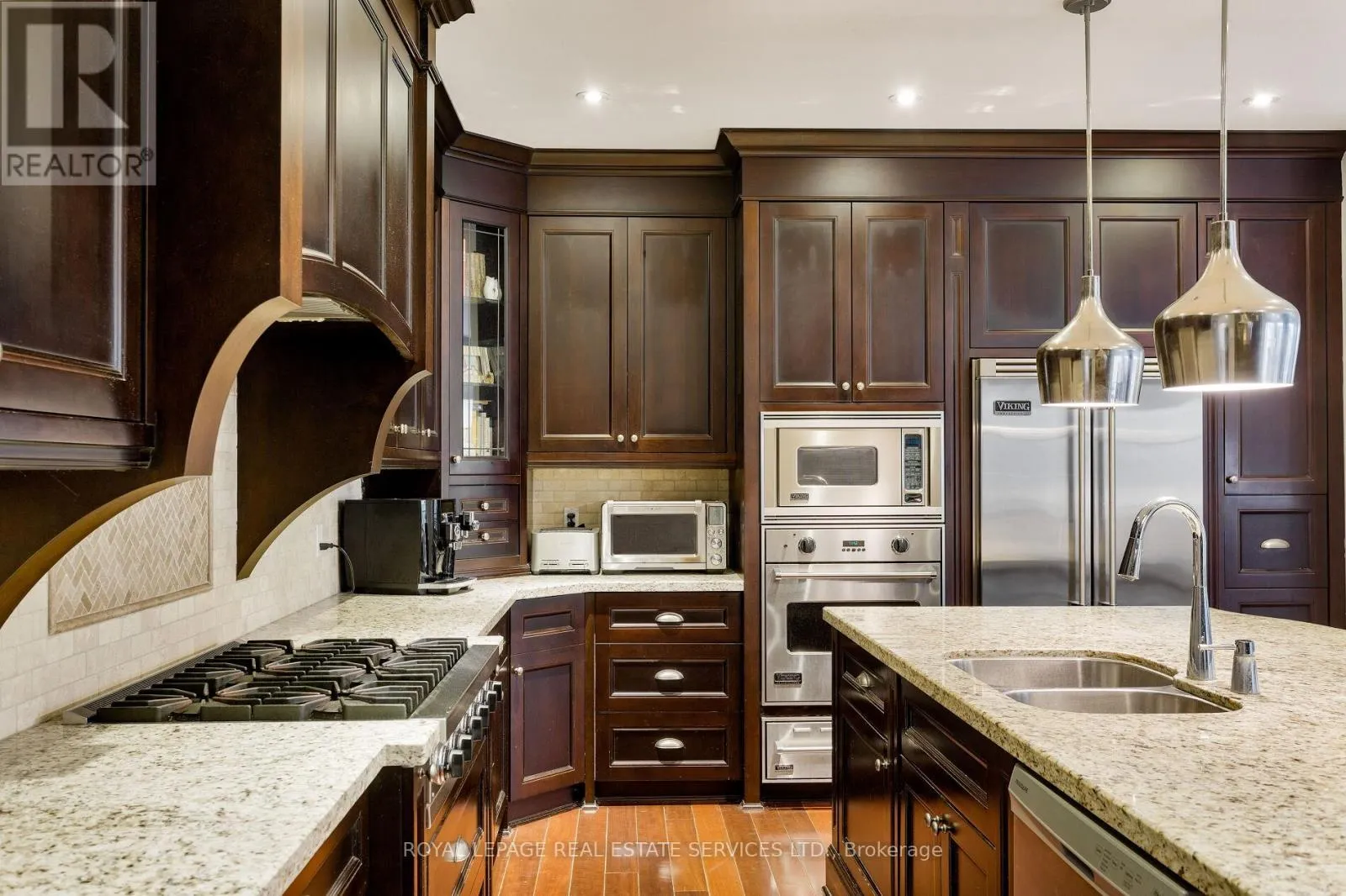Cross Streets: Willowdown & Hixon. ** Directions: Rebecca- Savannah- Willowdown. Welcome to this exceptional upscale residence set on a sprawling 75 x 150 ft lot in prestigious Coronation Park. A 10-minute walk to Coronation Park on Lake Ontario and minutes to Bronte Harbour and Village, Oakville Harbour and downtown Oakville, for upscale shopping and restaurants. A 5-minute drive to the QEW and Bronte GO Station for commuters. Showcasing outstanding curb appeal with a stucco and stone façade, deluxe mouldings, professional landscaping, a stone walkway, covered flagstone porch and an extra-long driveway to a triple (tandem) garage, the home transitions seamlessly to a private backyard oasis-an entertainer's dream with upgraded stone patios, a custom saltwater pool with armour stone waterfall, lush gardens, multiple seating areas and ultimate privacy with mature trees. Offering 4 spacious bedrooms, 3.5 bathrooms and a professionally finished walk-up basement, the interior exudes refined craftsmanship with exotic hardwood floors, smooth ceilings, rounded drywall corners, crown mouldings, custom cabinetry, an impressive floating staircase, and abundant natural light. Highlights include a grand dining room, a dramatic family room with a cathedral ceiling, a gas fireplace and walkout, a private office, and a chef's kitchen with custom cabinetry, granite counters, an oversized island and premium Viking appliances. Upstairs features four generous bedrooms and two lavish bathrooms, including the primary retreat with a spa-inspired ensuite offering a jetted tub and a glass shower. The walk-up basement impresses with a large recreation room, a games room with a fireplace, a media lounge, and a 3-piece bath-perfect for family living and entertaining. (id:27476)
