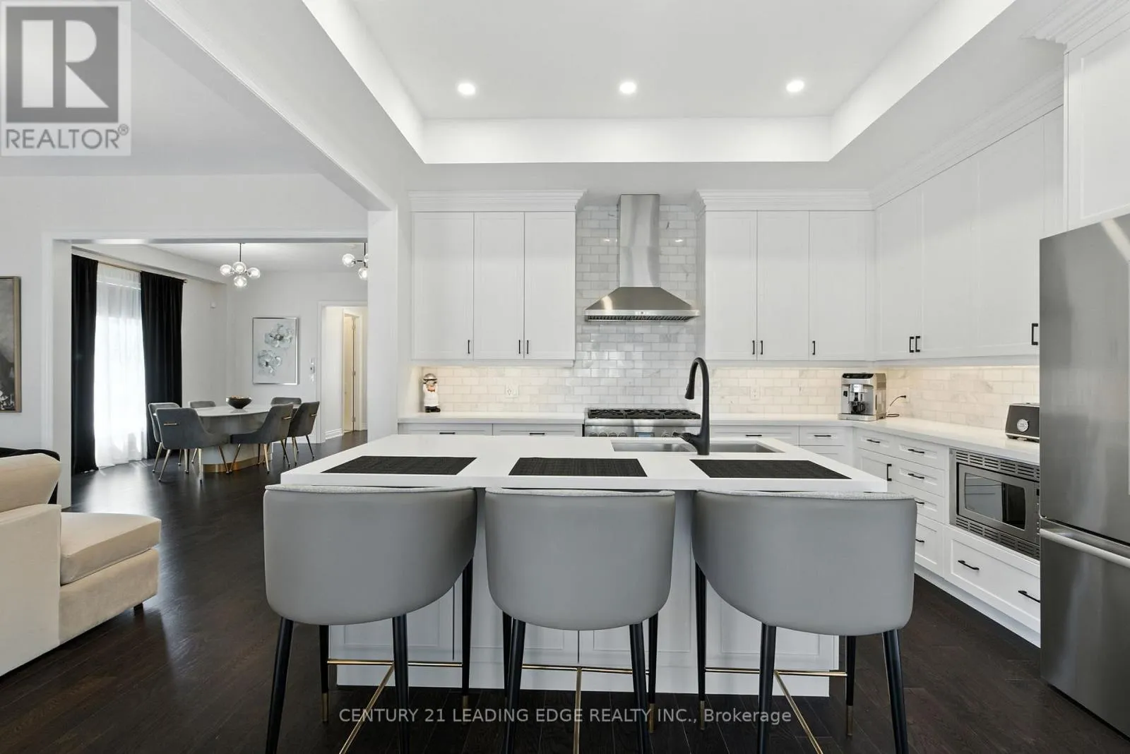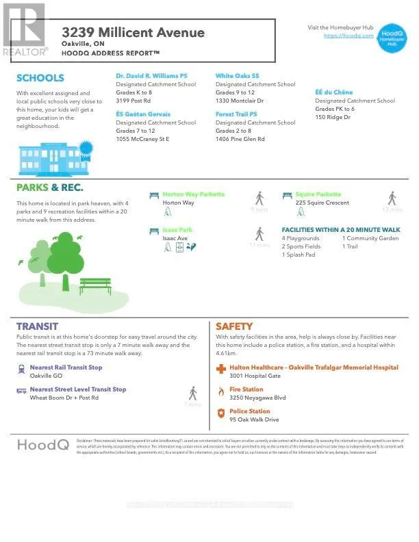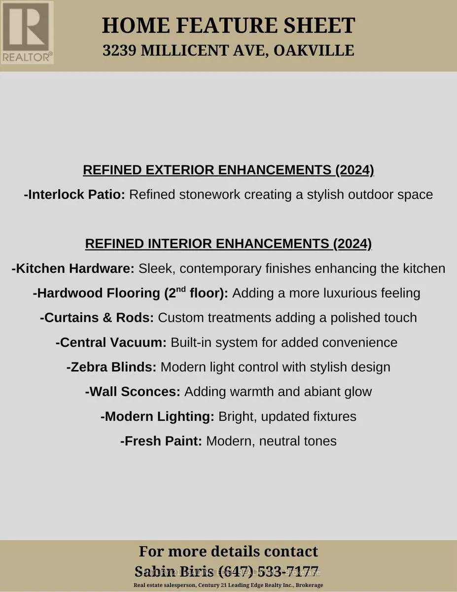 Dundas St E / Sixth Line Timeless architecture meets modern comfort. Welcome to 3239 Millicent Ave, a luxury home built in 2021 by Fernbrook Homes in one of Oakville's most sought-after neighbourhoods, offering over 3,700 sq. ft. of total refined living space, from rich hardwood floors, 10-ft ceilings, designer custom features, expansive windows, and a flowing open-concept design ideal for entertaining with a bright and warm living room featuring a gas fireplace. The custom kitchen by AYA Kitchens is a showpiece, featuring stainless steel appliances including a 6-burner gas stove, abundant storage, soft-close cabinetry, and bold black accents. The adjoining breakfast area opens to a newly upgraded, maintenance-free backyard with interlock landscaping. Upstairs, four spacious bedrooms boast new hardwood floors and custom finishes, each with direct access to a bathroom. The primary suite is a serene retreat offering a large walk-in closet and spa-inspired 5-piece ensuite. The finished basement impresses with 9-ft ceilings, wainscoting details, a wet bar, fireplace, and a versatile room for entertainment with access to a 3-piece bathroom. You will love this area and proximity to top-rated schools, transit, shopping, highways, and parks. Recent upgrades include; backyard interlocking, 2nd floor hardwood flooring, modern lighting, custom blinds, central vacuum, and fresh paint on main and 2nd floor. (id:27476)