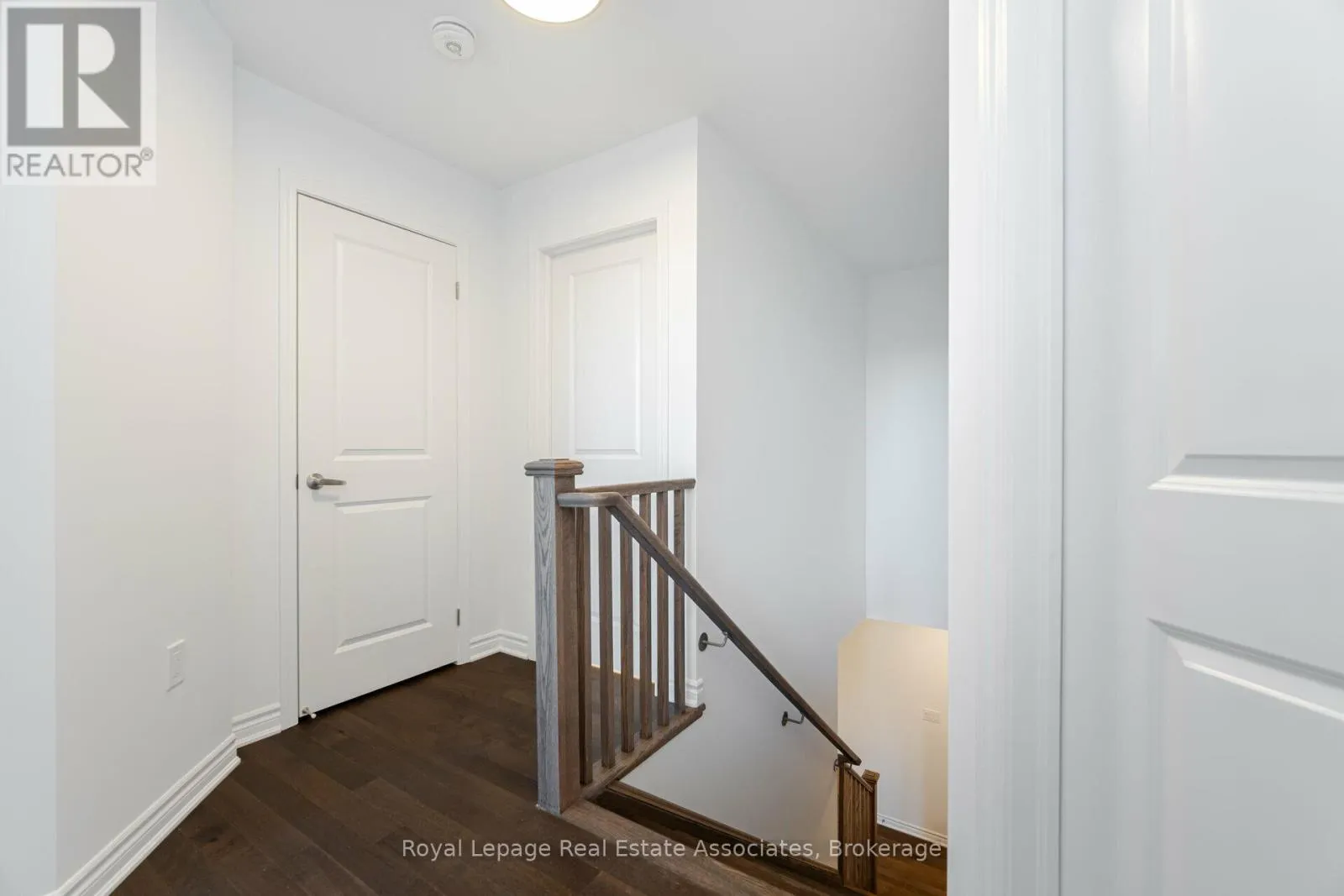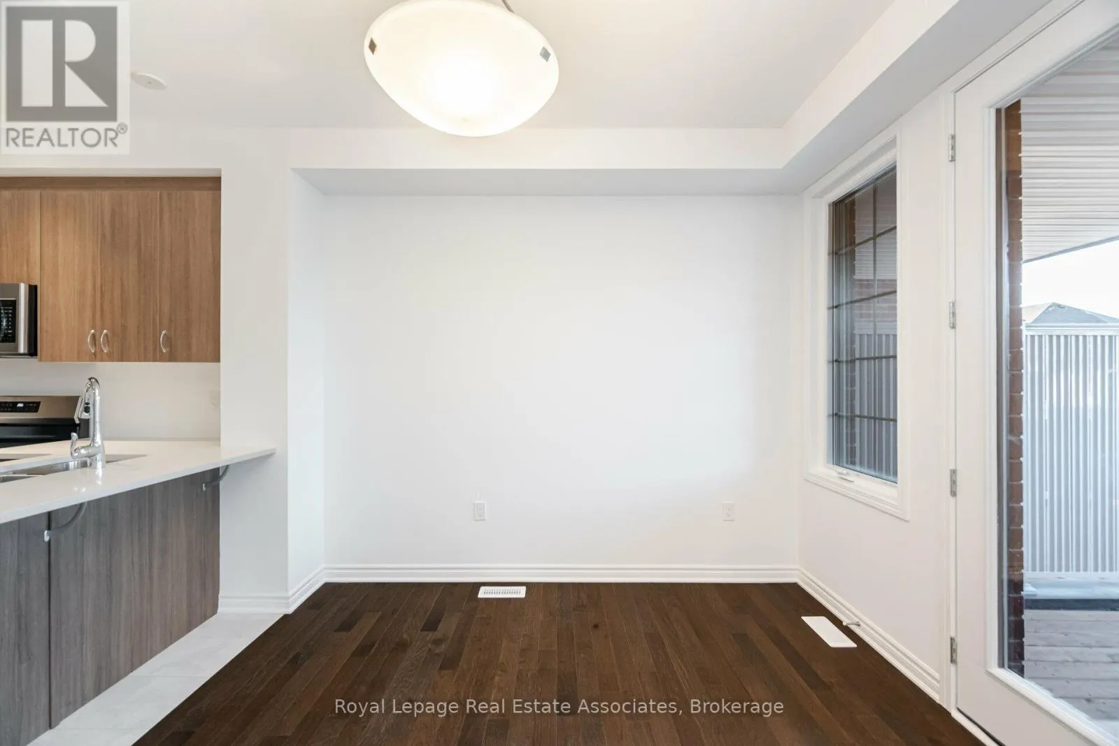 Cross Streets: Dundas St / John Mckay Blvd. ** Directions: Dundas St- John Mckay Blvd - Wheat Boom Dr - Langdon Rd - Granary St. Discover a well-designed executive townhome offering comfort and style in Upper Joshua Creek. This immaculate home features a spacious entry with a mirrored closet, custom built-in shelving, and direct access to the garage. Hardwood stairs lead you to the open-concept main floor, where you'll find beautiful hardwood flooring throughout. The gourmet kitchen boasts stainless steel appliances, quartz countertops, ample cabinet space, and a breakfast bar, all overlooking the bright dining area with a walkout to the private balcony. Conveniently located on the main level, the laundry room adds to the home's functional design. The third floor offers a spacious main bathroom, a large linen closet, and three bedrooms, including a luxurious primary suite with a 3-piece ensuite featuring an oversized glass shower, double closets, and a private balcony. Additional storage space is available in the basement crawl space. This home is ideally located near shops, restaurants, schools, and parks, with easy access to major highways (403/QEW/407) for a quick commute. Don't miss the opportunity to enjoy this exceptional home! (id:27476)