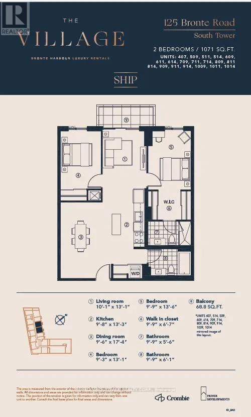 Cross Streets: Lakeshore & Bronte Rd. ** Directions: Lakeshore W to Bronte Rd. *BONUS*1 MONTH FREE* Extremely Spacious "the SHIP Model" is 2 Bedroom, with a Large Dining room and Kitchen Design Floor Plan. Master with very large Walk-in Closet (9.9x6.7ft) and overall spacious 1071SqFt of Luxury Living. Gorgeous Suite in a Wonderful Location - Steps to Lake & Marina! This PET FRIENDLY, Unique Luxury Rental, with 5-star Hotel Inspired amenities is nestled in Oakville's most vibrant and sought after neighbourhood, Bronte Harbour! This suite Is Open Concept and Features a Large Dining room , Glass Walk in Shower, Over-sized Walk-in Closet, and a Private Balcony! It is Bright, Modern & Sleek in Design. Features an Upscale Modern Kitchen with Island, Contemporary Cabinets & Gorgeous Counters, Plus Stainless Steel Appliances. Gorgeous Wide-Plank flooring throughout & Convenient Full Size -In-suite Laundry. Note: Some Model Suite photos attached to aid in visualization of Finishes which are THE SAME for ALL UNITS. Room Size and floor plans vary with individual unit.* DOGS WELCOME* (id:27476)